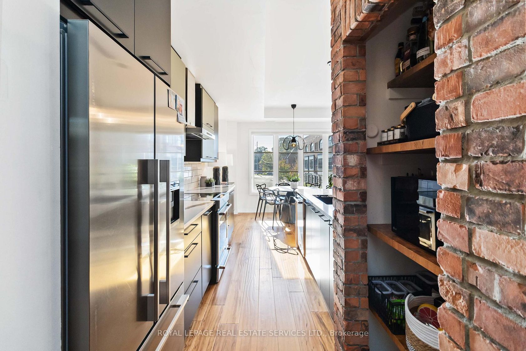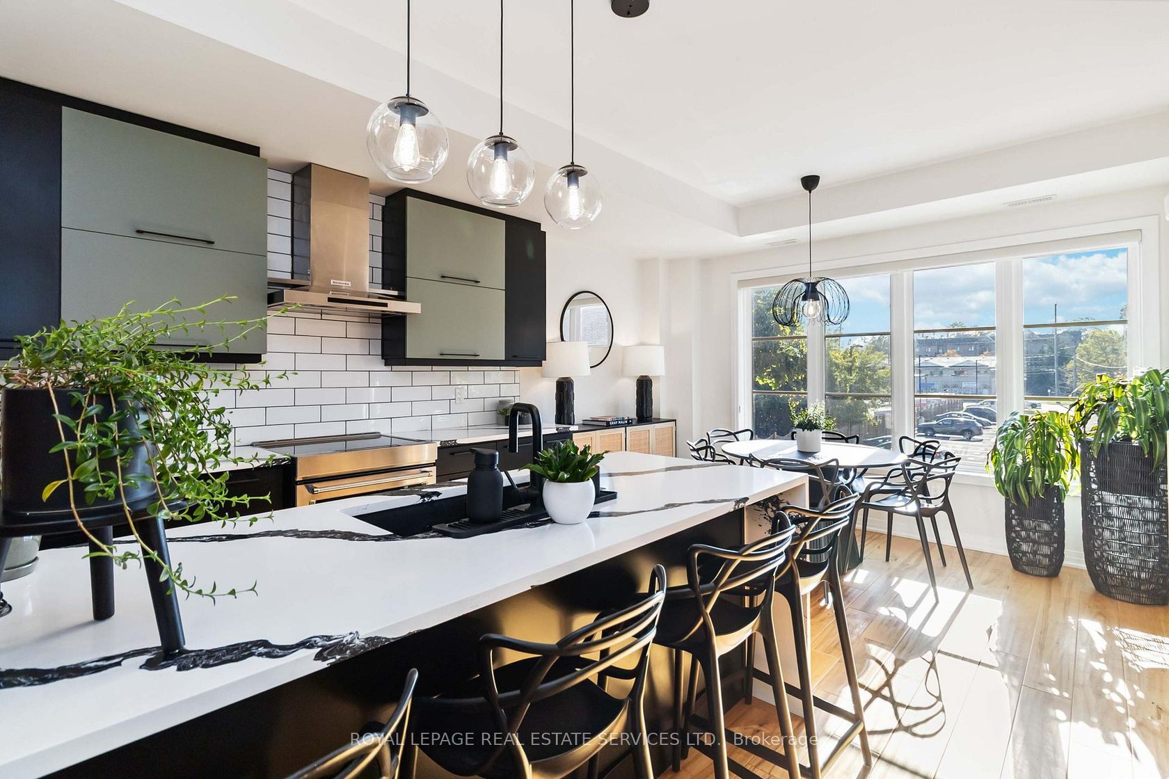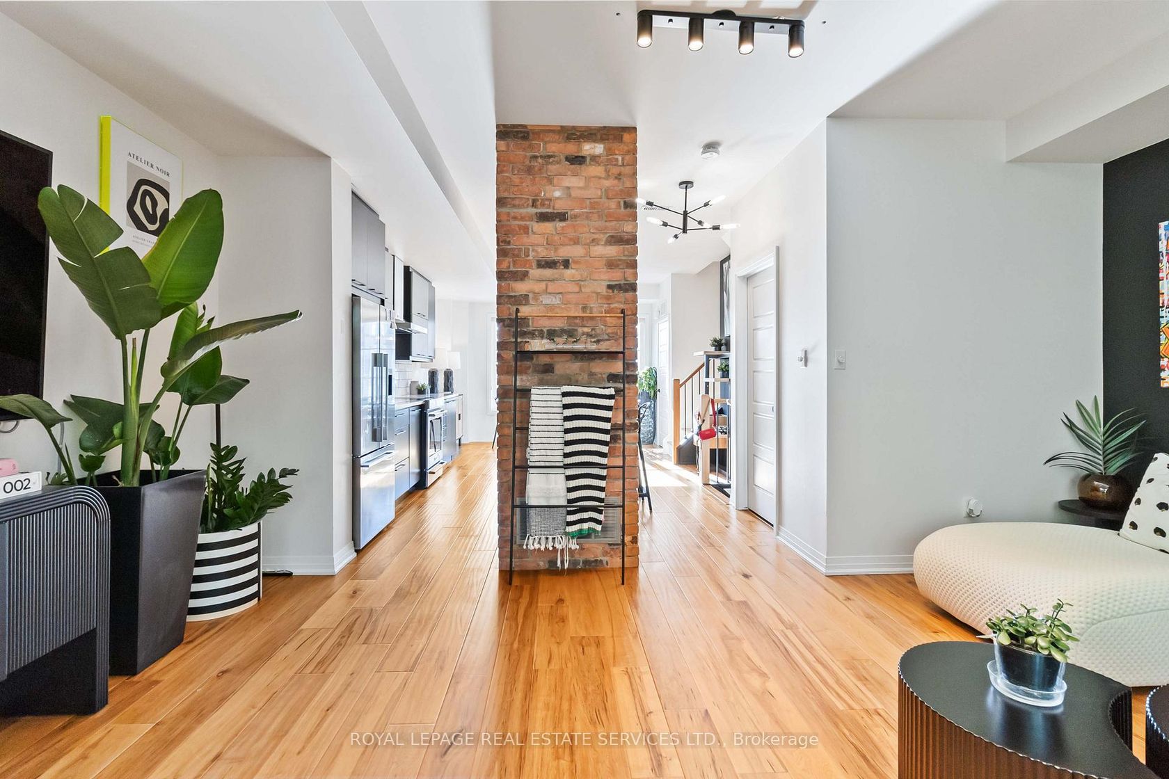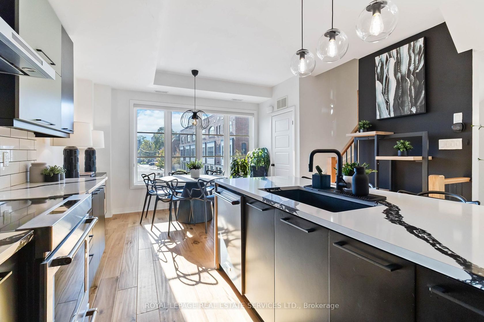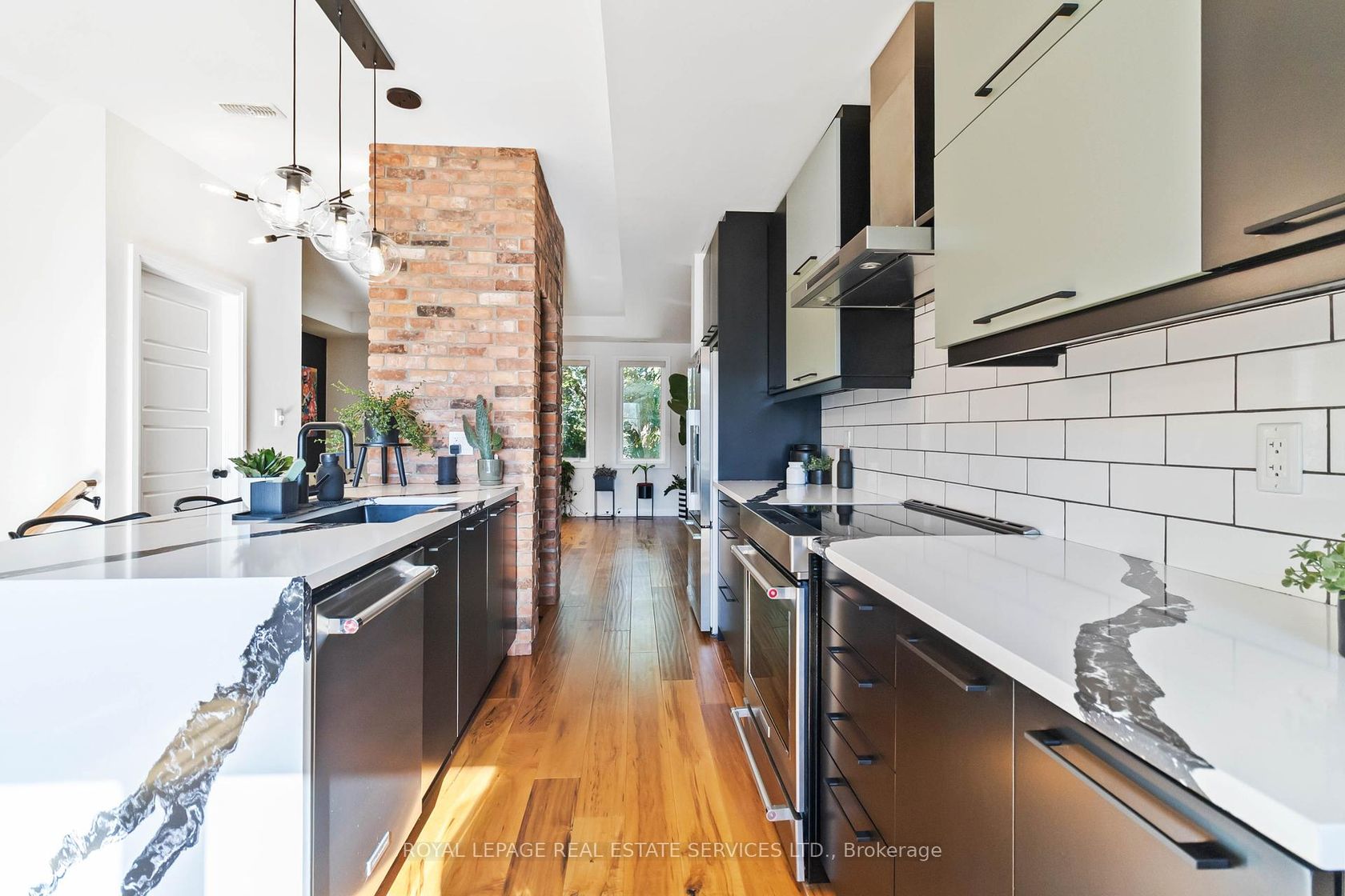 Welcome to this beautifully upgraded end-unit townhome located in the sought-after community of Aldershot. Offering over 1500 square feet of meticulously designed living space, this three-bedroom, two-and-a-half-bathroom residence boasts two parking spots and is fully equipped as a connected smart home with digital keyless entry, an ecobee thermostat, camera, and security system. Inside, the home is bathed in natural light and features elegant, high-end finishes throughout. The heart of the home is the inviting kitchen, which is a chef's dream, featuring sleek new Caesarstone countertops with a striking custom waterfall island, new cabinet doors and hardware, and a brand-new sink and tap. High-end appliances, including an induction range and a stainless hood vent, complete the space. The main living area exudes warmth and modern style, anchored by beautiful engineered hardwood floors and a chic Chicago brick feature wall, creating an ideal setting for entertaining. A convenient two-piece powder room completes this level. The upper floor holds the sleeping quarters, including a spacious primary bedroom featuring a walk-in closet and a lovely three-piece ensuite with glass shower doors and all-new hardware. A charming third bedroom offers sliding glass doors leading to a juliette balcony. This level also includes a four-piece main bathroom with a high-end vanity and practical bedroom-level laundry. The property is crowned by an amazing rooftop terrace, providing the perfect space for outdoor entertaining or simply enjoying the views. The location is unbeatable for commuters, offering easy access to major highways and the GO Station. Enjoy a balanced lifestyle with nearby amenities, including the RBG, shopping, and scenic trails.