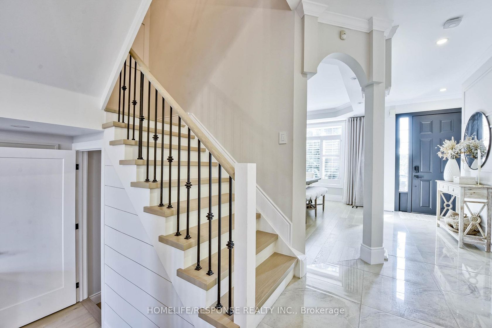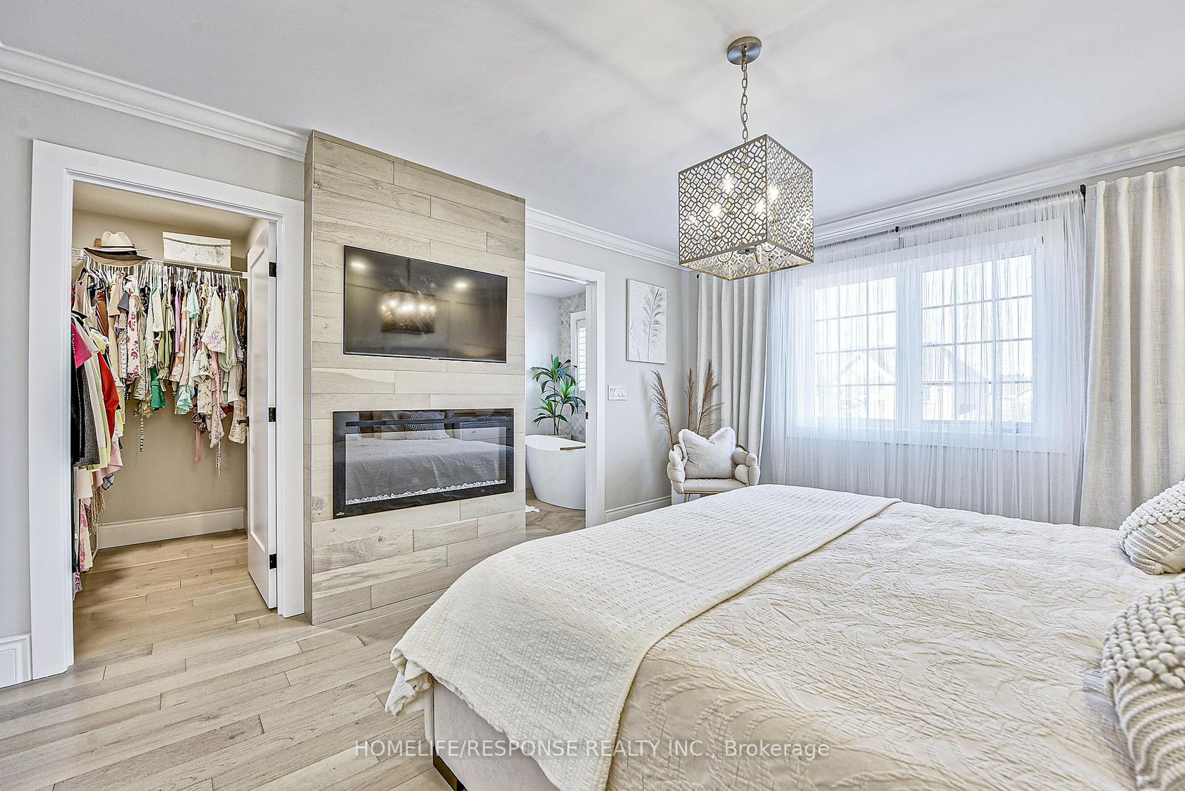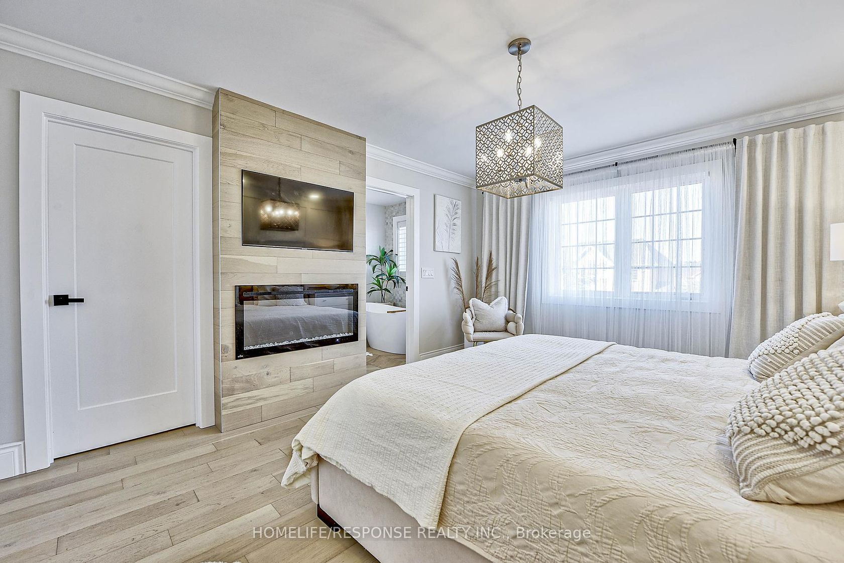 Welcome to 1 of a kind renovated throughout executive freehold town in great Churchill Meadow Neighbourhood. This fully modern renovated town offer approx. 2000 sq. feet of living space of modern sophistication. Around 200 k renovations include: New Roof, Kitchen, Bathrooms, Flooring, Stairs, Doors, Pot lights, Smooth Ceiling throughout, finished basement w/ 3pcs bath and decorative wall details throughout the house, beautiful light fixtures. Almost Every detail of this house has been thoughtfully upgraded. Extended kitchen with new modern cabinets, extended quartz island, premium white appliances, unique pot filler over the stove, garburator in the sink, porcelain flooring and backsplash. Primary bedroom offers fully renovated 4pcs modern ensuite with freestanding bath, separate shower, heated floor for you comfort. Electric fireplace and amazing decorative wall detail in primary bedroom offers exceptional atmosphere. Carpet free house with modern engineering floor on ground and 2ndlevel and good quality laminate floor in the basement. Basement finished with 3 pcs bath and rough in for wet bar/kitchenette. This is truly one of a kind house in the area with great location, close to great schools, highways, public transportation, shopping and more. 15 hour public parking on the street in front of the house.