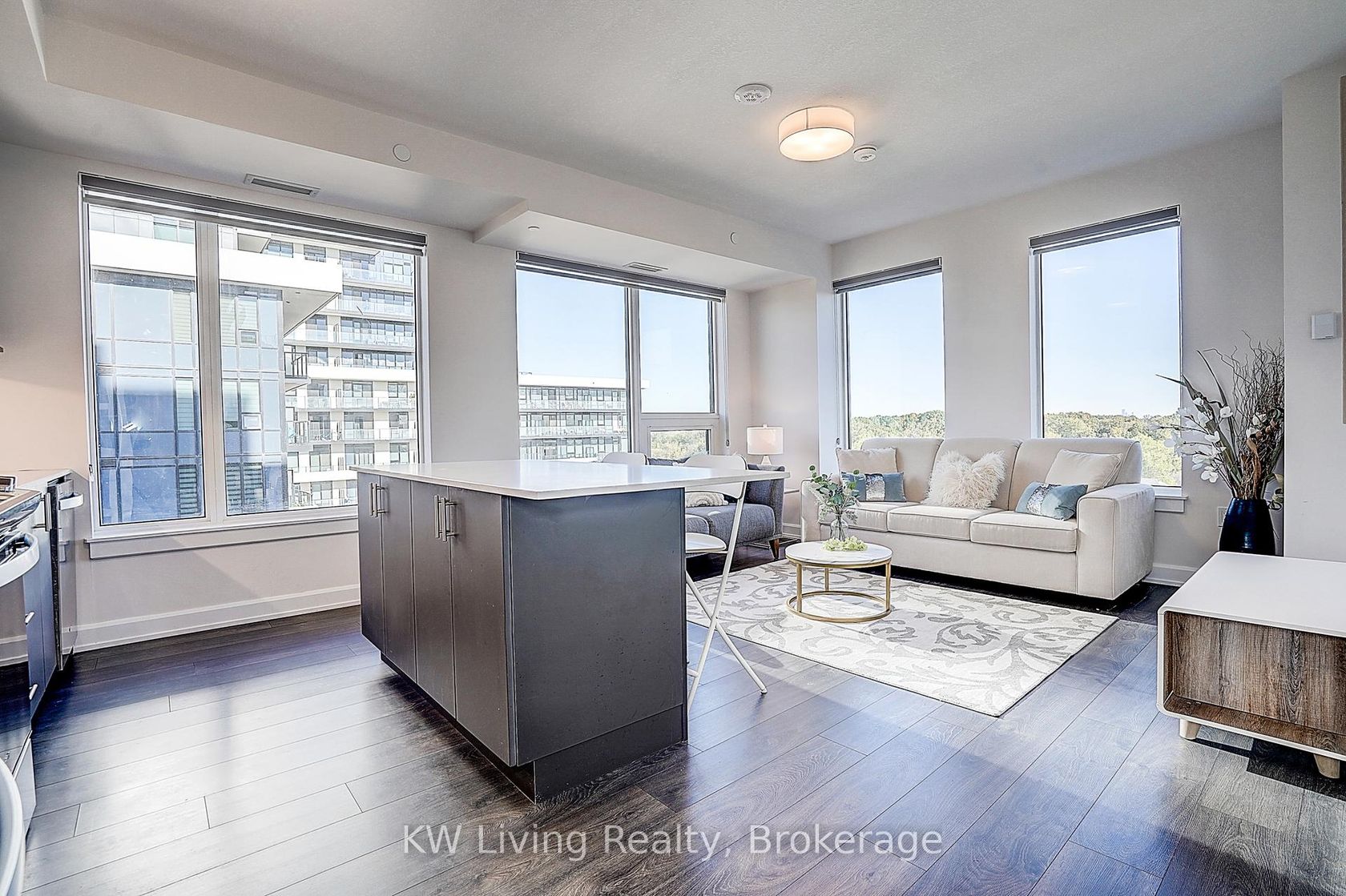 Rarely offered Warren Model 795 sq. ft. CORNER suite (1+Den) in the highly sought-after Upper West Side Condos by Branthaven. The SPACIOUS den (10'8" x 7') , complete with a privacy door and access to the balcony through elegant double sliding glass doors, is perfectly suited as a second bedroom. The modern kitchen showcases a beautiful white herringbone tile backsplash, QUARTZ countertops and an oversized centre ISLAND - ideal for family gatherings and entertaining. The bright, open-concept living area is surrounded by two sides of expansive windows that capture panoramic views, filling the home with natural light. The large bedroom with its own private balcony provides a perfect retreat for morning coffee or evening relaxation. Includes one underground parking space and one locker. Residents enjoy a curated selection of exceptional amenities, including a stylish social lounge, an entertainment kitchen perfect for gatherings, a serene yoga studio, a fully equipped fitness center, and a vibrant game room. On the 11th floor, a chefs kitchen opens onto a rooftop terrace featuring BBQ stations and comfortable seating areas ideal for alfresco dining and sunset views. Nestled in desirable North Oakville, steps to shops, restaurants, grocery stores, parks, and transit, with easy access to highways.