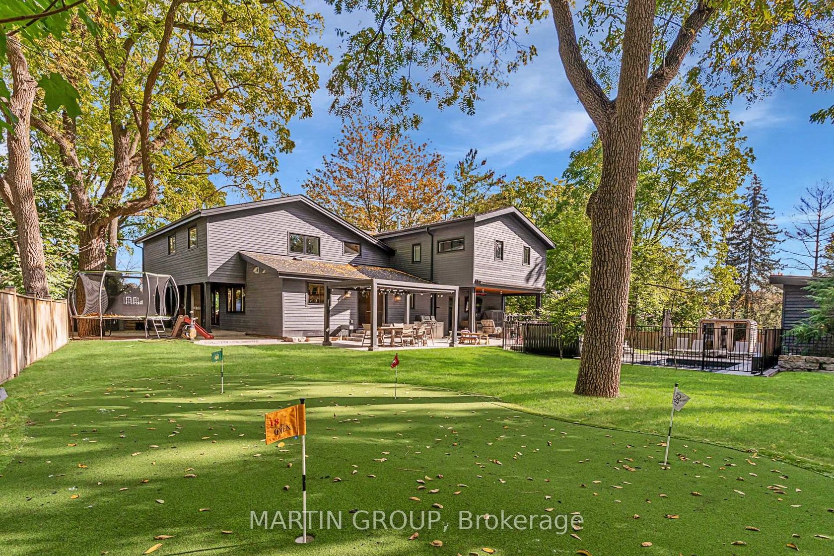 The Art of Living, Reimagined at 89 Germorda Drive. Every great performance begins with preparation. Every great home with intention. This luxury estate rebuilt and expanded from 2020 onward embodies both. Crafted for those who seek excellence in leisure as in life, it fuses architectural elegance with athletic precision. At its core, a 300 sqft high-performance golf suite delivers tour-level realism through an HD Golf Simulator and outdoor artificial grass putting/chipping green an all-season sanctuary for the golf purist. Beyond the game, the massive pie lot on a quiet court become a private resort: saltwater pool, hot tub with waterfall, sauna, and a pavilion bar outfitted for effortless entertaining. Motorized screens, electric heater, retractable awning, keg tap, beer fridge, and outdoor TV create a seamless four-season retreat. Inside, craftsmanship meets calm. Through a custom arched wood doorway, wide-plank floors lead to a luminous Great Room and an all-new 2024 gourmet kitchen two-tone cabinetry, premium quartz, and KitchenAid appliances unite performance and polish. Functionality is elevated by a second kitchen/pantry while the dining room with servery, ensures every occasion flows with ease. The Primary Suite is a study in serenity: vaulted ceilings, gas fireplace, heated hardwood, dual walk-ins, and a spa-inspired ensuite with dual rain showers and oversized bench-each finish whispering quiet luxury. The lower level continues the narrative warm tongue-and-groove detailing, a wine room, a 5th bedroom with ensuite, and flexible zones for recreation or reflection. More than a residence, this is a lifestyle curated for those who live by precision and passion where performance, wellness, and design coexist in perfect rhythm. Welcome to Oakville luxury, redefined.