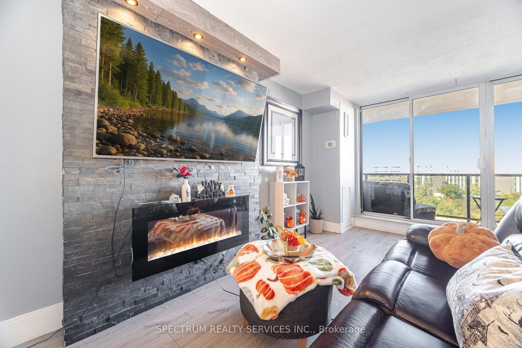 Bright & Spacious Layout, Move-In Ready! Stunning North Views of The City. Well maintained, elegant mosaic stone fireplace accent wall. A very functional kitchen and flows to the open concept living space. This property features; Granite Countertop Kitchen with Backsplash, Eat-In Kitchen, 2 Pc Ensuite, Large Window For Lots of Natural Light. Den can be converted to a 3rd Bedroom, W/ Window. Enjoy the balcony with a grand view for your morning coffee. Surrounded with parks, trails, public transit, picnic area, plenty of visitor parking, bike storage, schools, shopping. Outdoor Pool For Outdoor Sun Tanning. All your amenities at your door step! Ideal for first time Buyers or Investors.