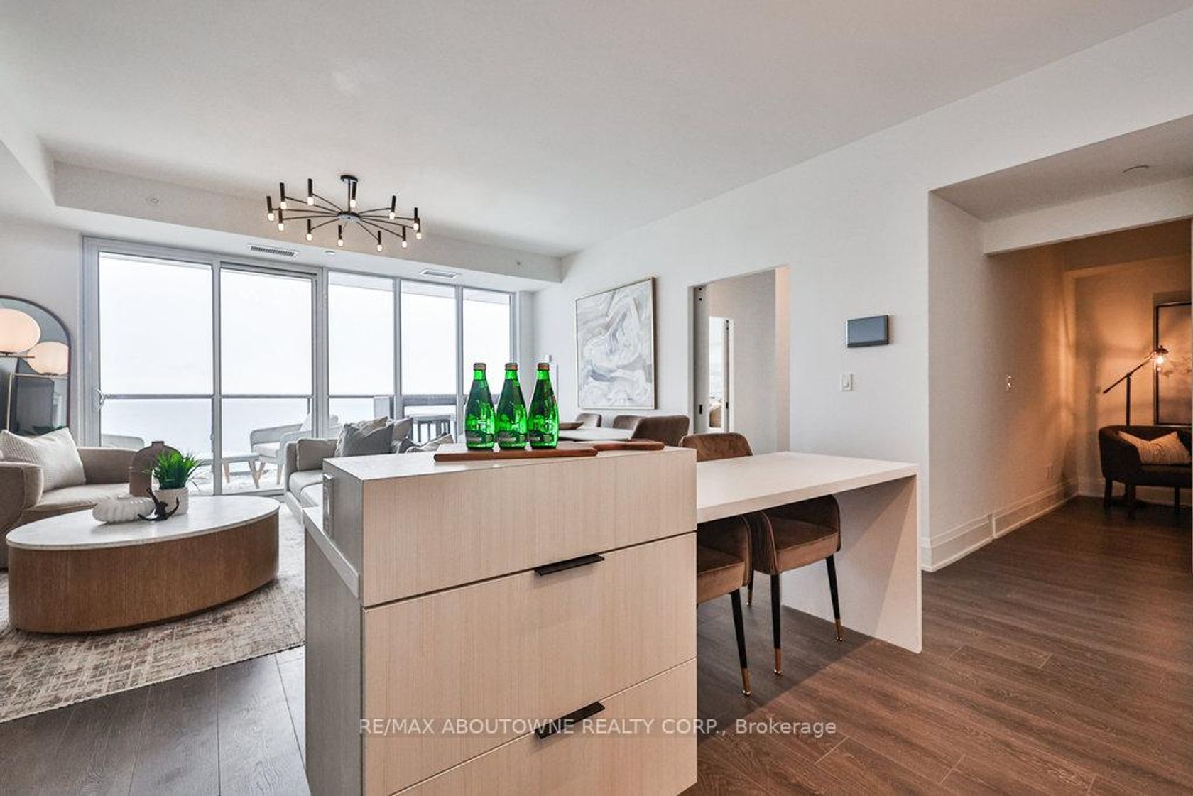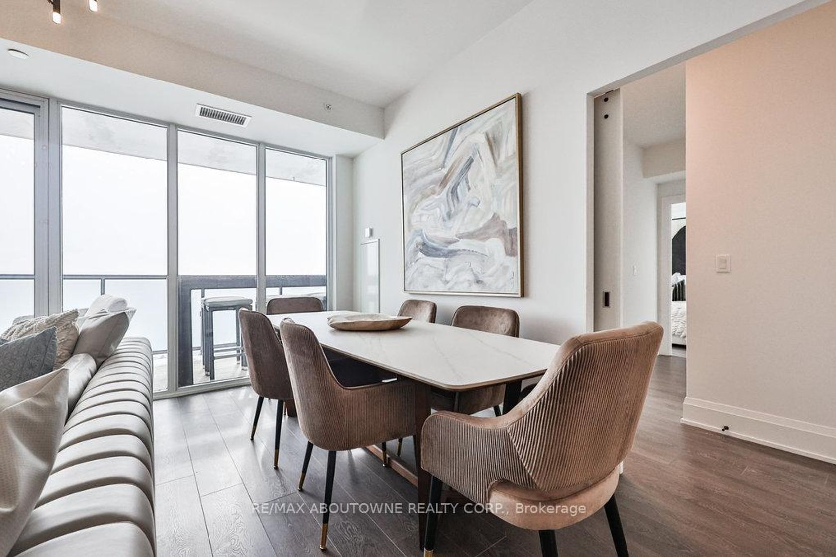 Welcome to modern lakefront living at the Nautique Residences. From the moment you open the door, the unparalleled views afforded by the floor-to-ceiling windows will take your breath away in this stunning suite that features 2 bedrooms plus a den and 2 full bathrooms. This premier unit (one of only 2 units) boasts approximately 1,133 sq ft of luxurious and sophisticated interior living space as well as 262 sq ft of exceptional outdoor space with a 42 ft wide continuous terrace that spans the width of the unit and delivers jaw dropping unobstructed lake views accessible from both bedrooms as well as the main living space. The primary bedroom boasts a large walk-in-closet and a spa inspired sumptuous 5-piece ensuite. This well appointed rare suite is drenched in natural light and is sure to impress. The 4th floor amenities include an outdoor dining area, fire pit lounge, indoor/outdoor yoga studio, fully equipped fitness centre, outdoor swimming pool, indoor/outdoor bar to gather with friends and family and truly enjoy all that downtown Burlington's vibrant waterfront has to offer. 1 underground parking space and a locker are included, plus a 24-hour concierge, so you'll always feel secure. Nestled in the heart of downtown Burlington, this suite is walking distance to the Burlington Pier, Spencer Smith Park, and an eclectic selection of cafes, spas, restaurants, and shops. This dynamic and lively community is alive with festivals and events offering a truly unique and immersive experience. Whether you enjoy waking up to stunning views, ending your day with magnificent sunsets or both, this is it. Discover why 370 Martha St is one of downtown Burlington's most coveted locations.