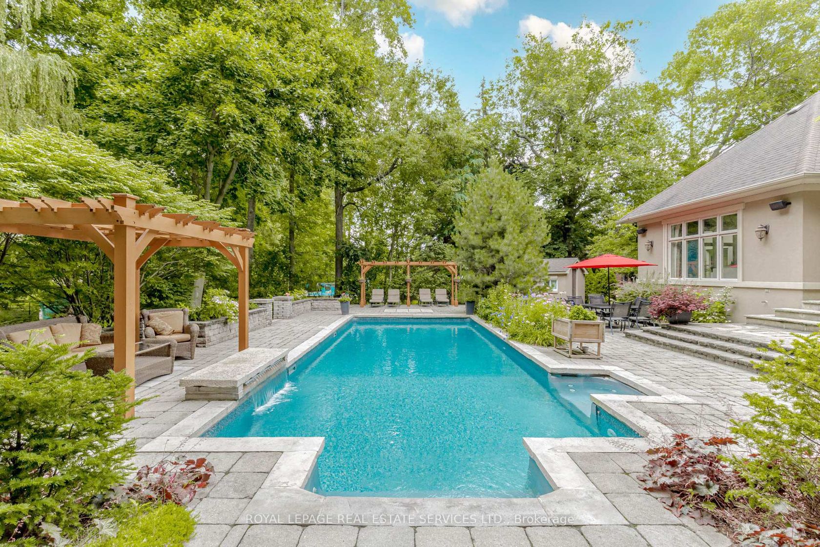 Sensational home designed by David Small and built by Venchiarutti Builders. This magnificent home is steps from Lake Ontario, Rattray Marsh walking trails, Meadow Wood Tennis Club and Meadow Wood Lakefront Park Mississauga. Uniquely designed inclusive of optimal areas for family living and entertaining. Should you require a "MAIN FLOOR PRIMARY BEDROOM" for a family or guests along with ensuite, sitting room and walkout to private deck you have found home. If desired, this space can be easily transformed into a "FORMAL LIVING ROOM AND DINING ROOM". The Gourmet kitchen features quartz counters, oversized centre island, appliances feature a gas Wolf cooktop, Miele Dishwasher, KitchenAid refrigerator & ovens, built-in bar fridge and wall to wall glass windows inclusive of walkout to yard. Stunning open concept family room with built-ins, wood burning fireplace and picture views of mature setting. Private yet welcoming main floor study/office with built-ins to suit all ones needs. Upper level of residence is most impressive with high ceilings, secluded main primary bedroom along with oversized ensuite. Picture windows throughout the entire upper level share views of the rising sun, sunsets and when they are open the simmering sound of the waves touching the shore. Lower level welcomes the activity area of lower family room with gas fireplace, gym area with glass for loads of light, wet bar and a separate nanny's suite. One may consider this entire level for a family member or simply a house guest to enjoy. Attention to detail is evident throughout from the impeccably maintained interior to breathtaking private treed backyard oasis inclusive of pool, waterfall, hot tub, pergola, shed, covered outdoor kitchen area and underground irrigation system.