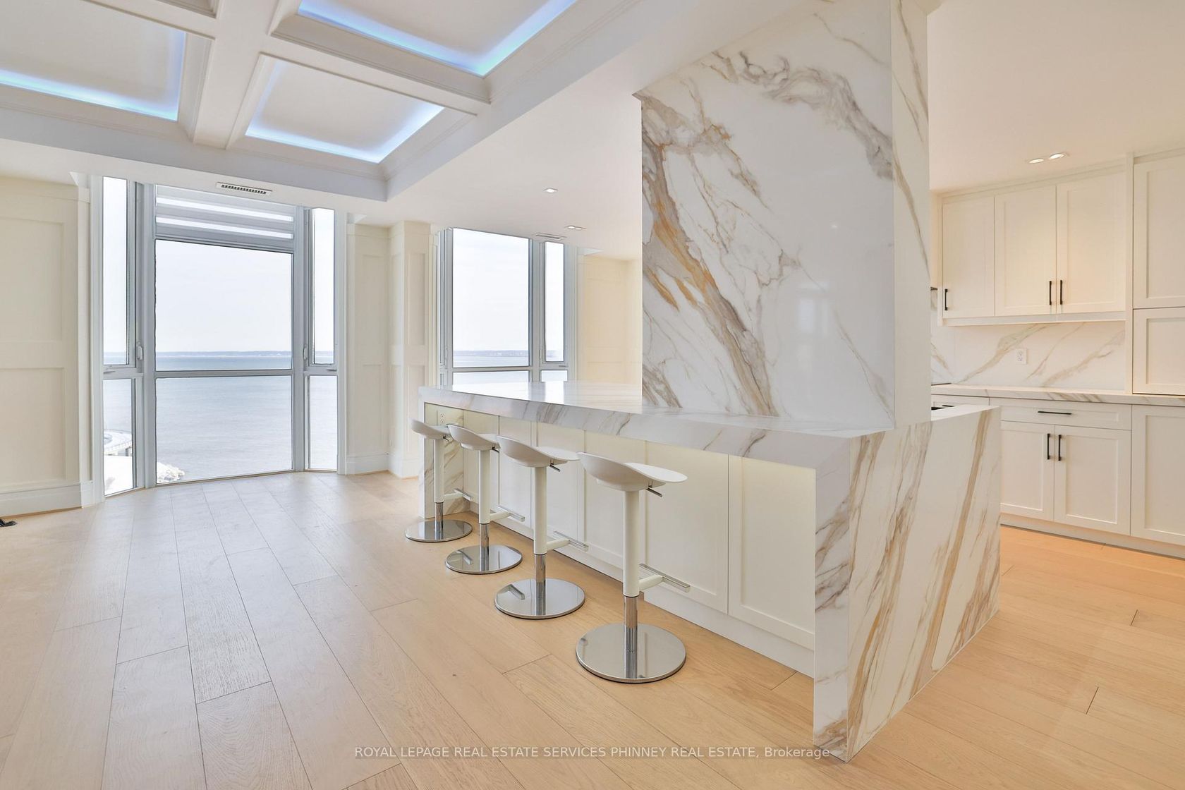 Waterfront luxury in the sky at Bunton's Wharf. Unit 904 is a rare 2,400 sq ft custom-built bungalow-style condo where unobstructed Lake Ontario views greet you the moment you walk in. Refined "quiet luxury" throughout with Level 5 finished walls creating flawless light reflection as the lake pours into the living space. Exceptional outdoor living includes a 520 sq ft terrace overlooking Spencer Smith Park-ideal for entertaining, festivals, sunsets-and a private 80 sq ft balcony for peaceful mornings with pier views. The third bedroom is thoughtfully designed with a built-in Murphy bed, offering the flexibility to function as a comfortable guest room, home office, or multi-purpose space. Only three OTHER units on the floor ensure privacy and tranquility. Includes two side-by-side parking spaces and a same-floor storage locker. Steps to Brant Street dining, the pier, waterfront trails, and the Art Gallery of Burlington. A truly iconic Burlington lifestyle-without compromise.