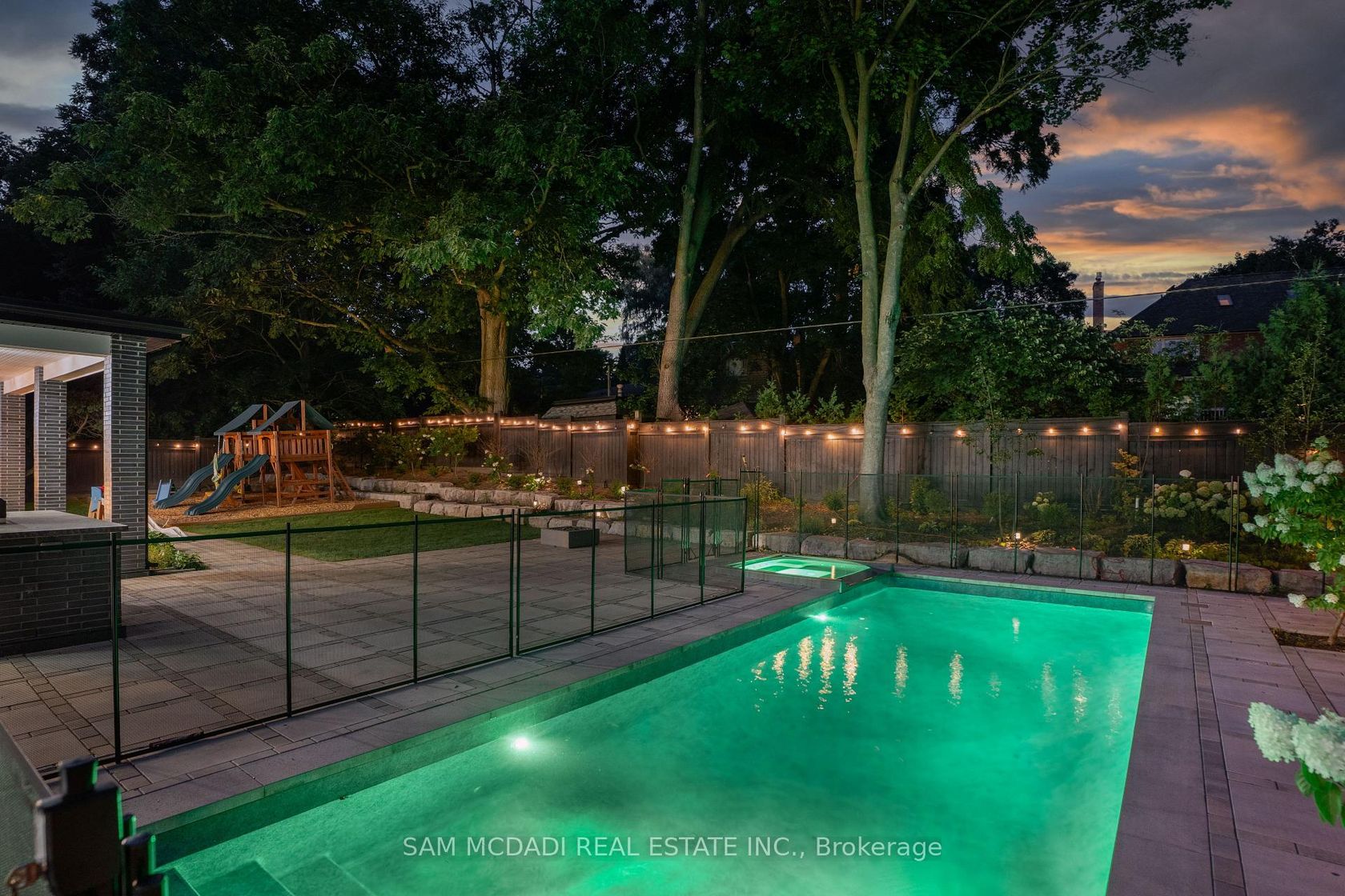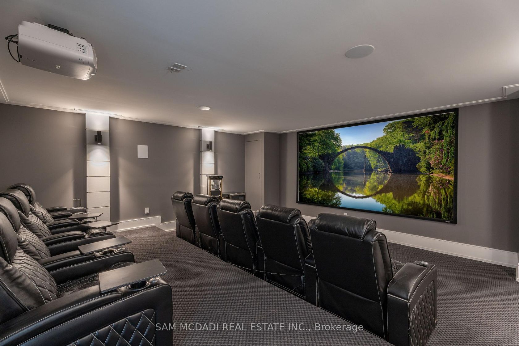 Welcome to an approx. 7,500 sq ft of exceptional living in Southeast Oakville! Set on a professionally landscaped almost half-acre lot in the prestigious Eastlake, this custom Hightower-built estate offers thoughtfully designed, luxurious space. The crown jewel of the home is a newly upgraded, million-dollar backyard oasis. Including a 600 sq ft covered patio with a built-in kitchen with a Napoleon BBQ, a gas fireplace, a saltwater pool with spillover spa, a dedicated play area, and lush perennial gardens. Retreat to an 800 sq ft primary retreat, delivering privacy and true wow factor with vaulted ceilings, two-sided fireplace, wet bar, sitting area, boutique walk-in closet, and a spa-like ensuite featuring heated floors, a soaker tub, and a glass shower. The main floor is designed for both grand entertaining and everyday comfort with natural light pouring through oversized windows. Interior features include 10-foot ceilings, chevron-patterned wide plank hardwood, LED pot lights, built-in speakers, and designer chandeliers. The chef's kitchen is finished in dual-tone lacquered cabinetry with Caesarstone counters, premium Dacor appliances, a bright breakfast area, and a butlers server that connects to the sophisticated dining room. A sleek linear fireplace anchors the family room. The home office stands out with 15-foot cathedral ceilings, a fireplace, custom built-ins, and a walkout to the gardens. Above, you'll find three generously sized bedrooms, each with radiant heated ensuite baths and custom closets. Downstairs, the walk-up lower level is built to impress with a full wet bar, wine cellar, large rec room, two guest bedrooms, a gym with cushioned flooring, cedar infrared sauna, and a new two-tiered home theatre. Additional features include a Control4 smart home system, a two-car garage with car lift potential, and a location just minutes from top-rated public and private schools, lakefront parks, downtown Oakville, and QEW access for a seamless Toronto commute.