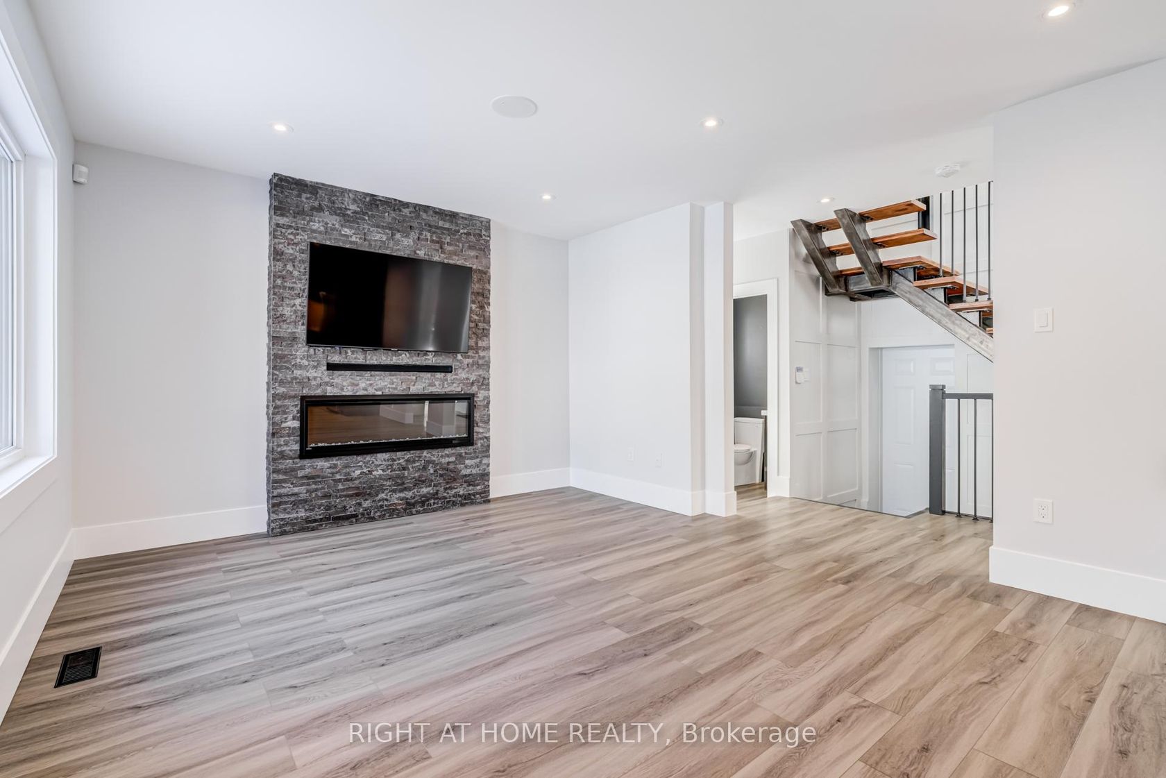 Welcome to 4212 Credit Point Drive, a fully renovated luxury residence in the heart of Mississauga. This exceptional three-bedroom home offers refined craftsmanship and premium finishes throughout. The primary suite features a spa-inspired four-piece ensuite and an expansive walk-in closet with custom built-ins. Second and third bedrooms include laminate flooring and built-in closets. The main floor showcases a gourmet kitchen with granite countertops, six-burner gas stove, built-in bar fridge, and a spacious eat-in area with walkout to the backyard. The living area is highlighted by a custom fireplace with built-in TV, ideal for entertaining and family living. The lower level offers a versatile living space with a bedroom and four-piece ensuite, along with a generously sized family room finished with high-end materials. A rare feature, the fully upgraded garage includes custom built-in storage, a second stainless steel fridge, heating and air conditioning, polished concrete finishes, and a separate exterior entrance. A true turnkey luxury home offering exceptional design, comfort, and functionality.