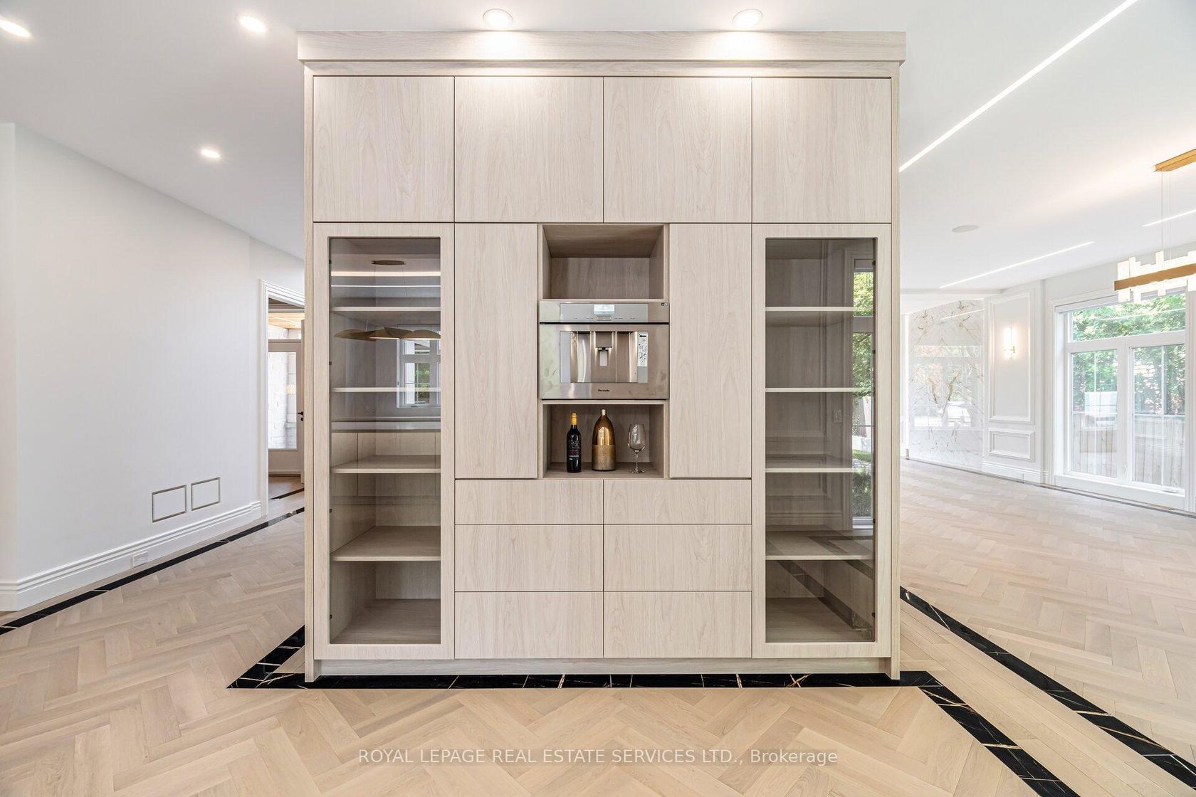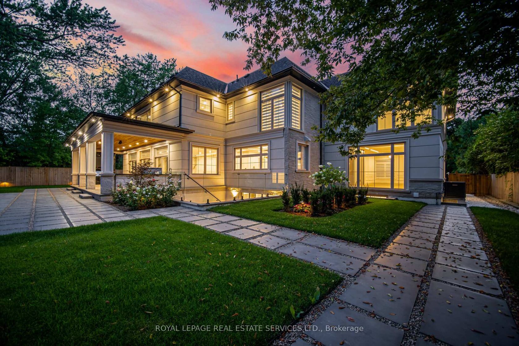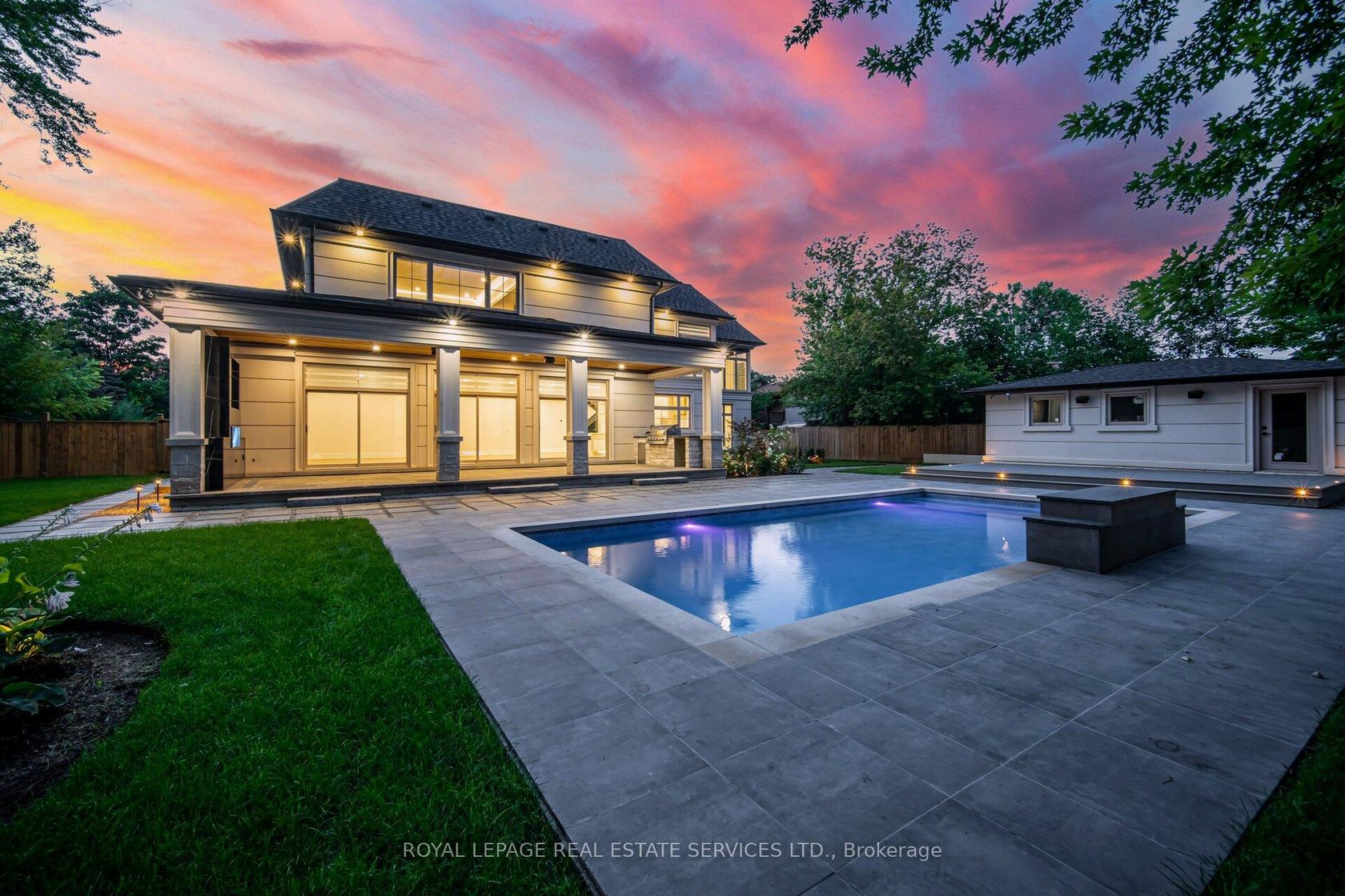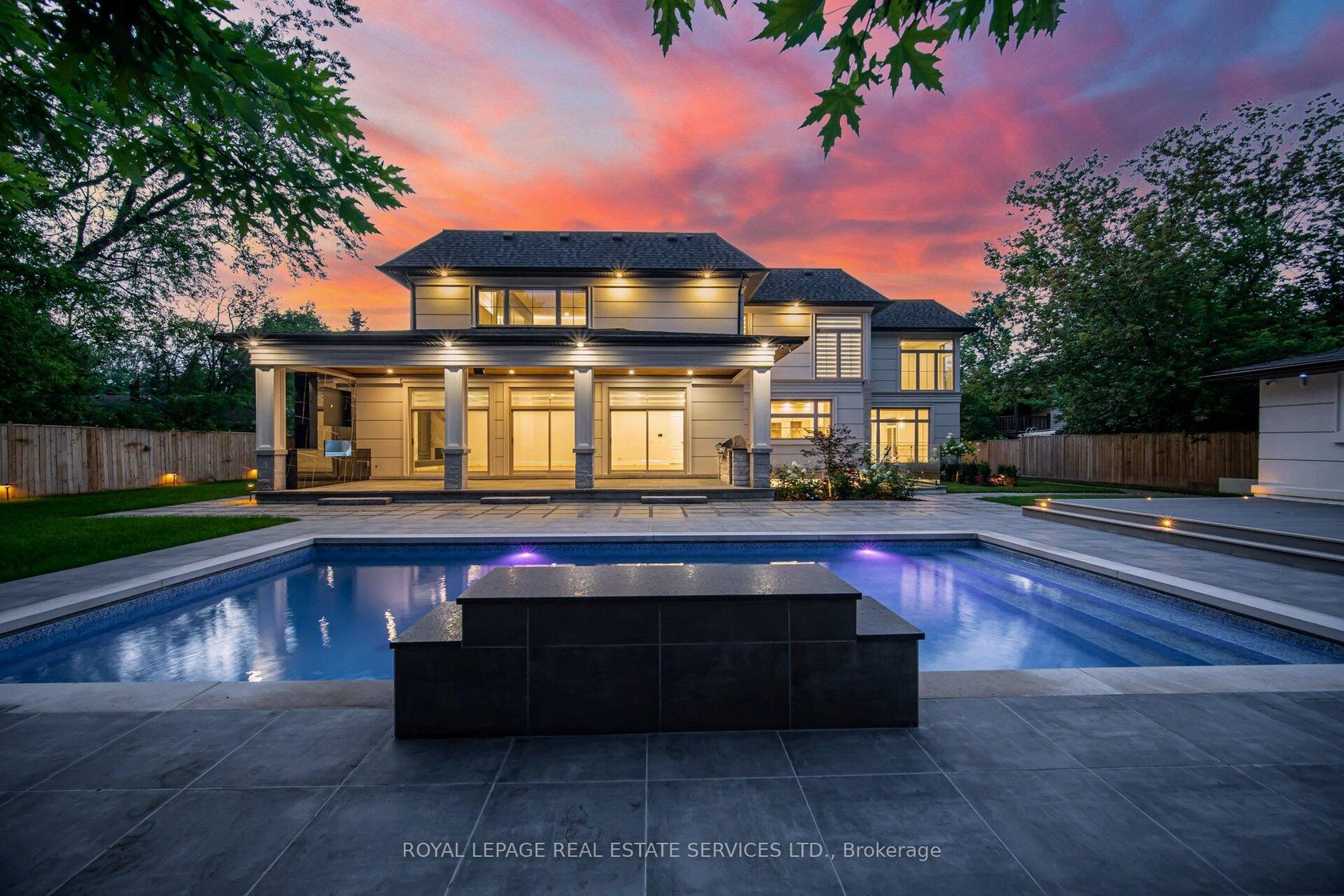 Set on a commanding 112.5'x199.5' lot just steps from the lake, this custom modern-traditional estate offers nearly 11,000SF of finished living space across three levels. A long private drive with parking for up to 12 cars and oversized 3-car garage create a striking arrival, complemented by stone and stucco architecture, soffit lighting, and professionally landscaped grounds. A dramatic double-height foyer introduces the home's scale, anchored by an open-riser staircase with smoked glass panels and integrated lighting. Principal rooms feature tile inlaid borders, herringbone engineered hardwood flooring, oversized windows, and sleek architectural lighting. The chef's kitchen is centred around a 10' quartz island with premium Thermador appliances, bespoke cabinetry, and a dedicated coffee station, flowing seamlessly into the family room with a modern fireplace feature wall, built-in media cabinetry, and multiple walkouts to a covered portico designed for four-season entertaining. A private main-floor office with double French doors and its own exterior entry offers exceptional work-from-home flexibility. Upstairs, four bedroom suites include a luxurious primary retreat with dual walk-in closets and a spa-inspired ensuite featuring a steam shower, freestanding tub, wall-mounted fixtures, and heated floor. The walk-up lower level is designed for lifestyle living with radiant in-floor heating, theatre room, wet bar, glass-enclosed gym, guest suite, pet spa, and extensive storage. Outdoor living is elevated with a rectangular pool and water feature, large-format stone terraces, composite sun deck, covered outdoor fireplace wall with TV rough-in, built-in BBQ station, and pool-house. Smart home technology, multi-zone audio, dual HVAC systems, and security surveillance complete this exceptional Lakeshore Road offering near parks, trails, and Bronte amenities. An outstanding blend of architectural presence, scale, and resort-style living! (some images have virtual staging)