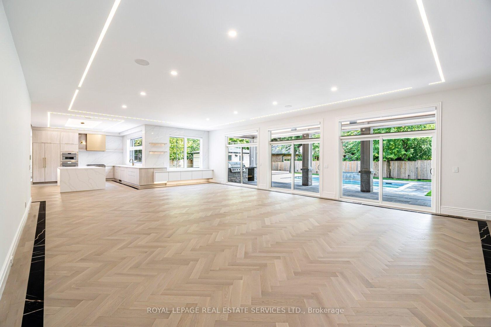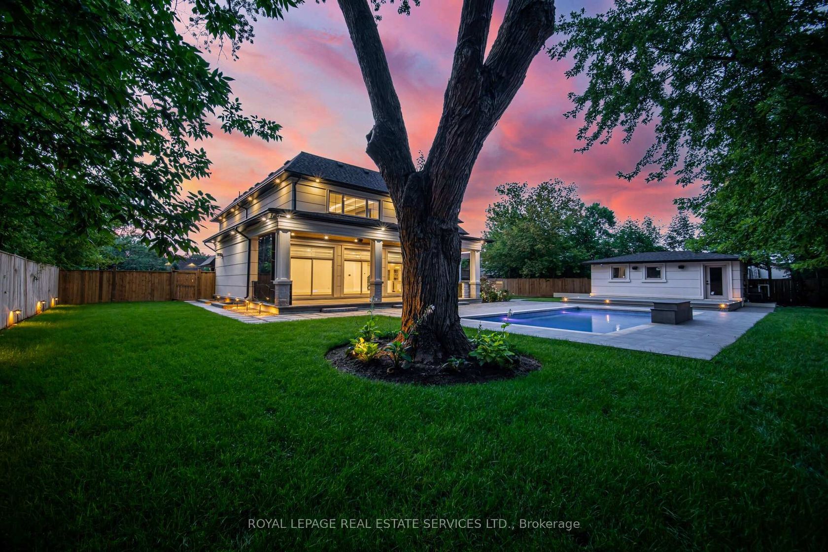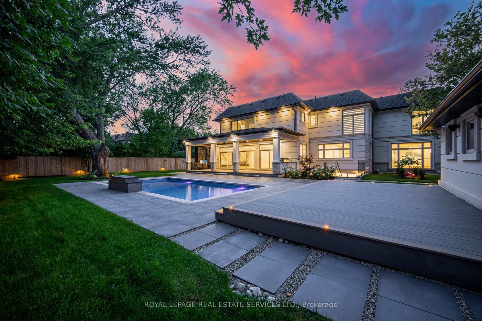 Set on a commanding 112.5'x199.5' lot just steps from the lake, this custom modern-traditional estate offers nearly 11,000SF of finished living space across three levels. A long private drive with parking for up to 12 cars and oversized 3-car garage create a striking arrival, complemented by stone and stucco architecture, soffit lighting, and professionally landscaped grounds. A dramatic double-height foyer introduces the home's scale, anchored by an open-riser staircase with smoked glass panels and integrated lighting. Principal rooms feature tile inlaid borders, herringbone engineered hardwood flooring, oversized windows, and sleek architectural lighting. The chef's kitchen is centred around a 10' quartz island with premium Thermador appliances, bespoke cabinetry, and a dedicated coffee station, flowing seamlessly into the family room with a modern fireplace feature wall, built-in media cabinetry, and multiple walkouts to a covered portico designed for four-season entertaining. A private main-floor office with double French doors and its own exterior entry offers exceptional work-from-home flexibility. Upstairs, four bedroom suites include a luxurious primary retreat with dual walk-in closets and a spa-inspired ensuite featuring a steam shower, freestanding tub, wall-mounted fixtures, and heated floor. The walk-up lower level is designed for lifestyle living with radiant in-floor heating, theatre room, wet bar, glass-enclosed gym, guest suite, pet spa, and extensive storage. Outdoor living is elevated with a rectangular pool and water feature, large-format stone terraces, composite sun deck, covered outdoor fireplace wall with TV rough-in, built-in BBQ station, and pool-house. Smart home technology, multi-zone audio, dual HVAC systems, and security surveillance complete this exceptional Lakeshore Road offering near parks, trails, and Bronte amenities. An outstanding blend of architectural presence, scale, and resort-style living! (some images have virtual staging)