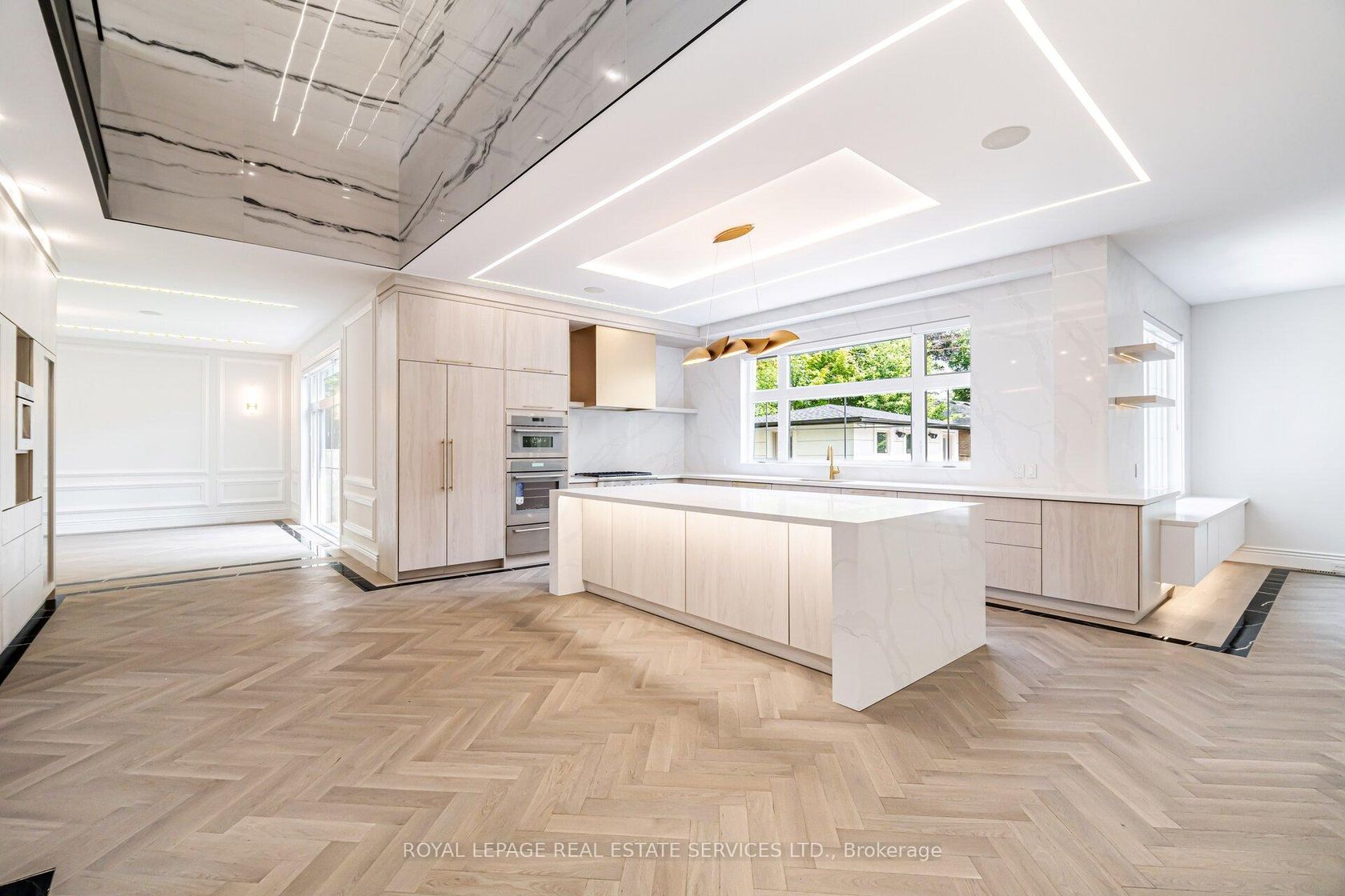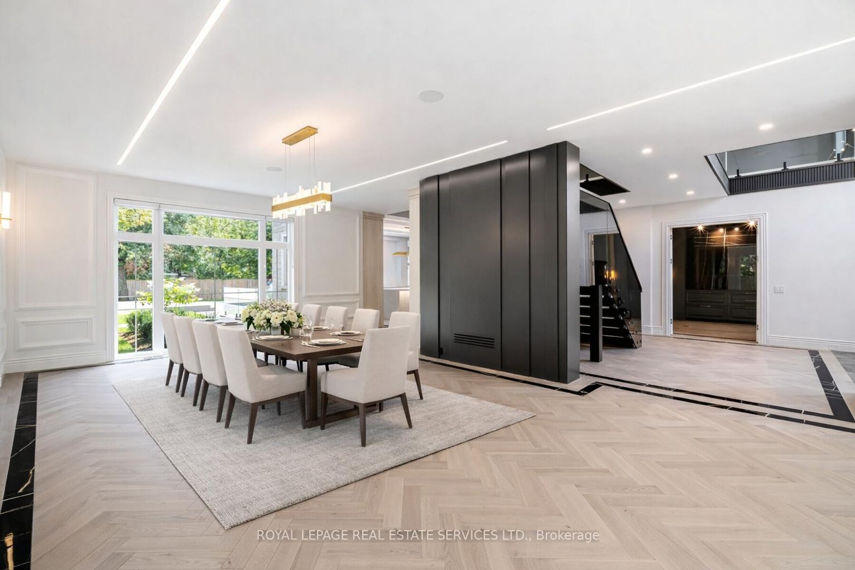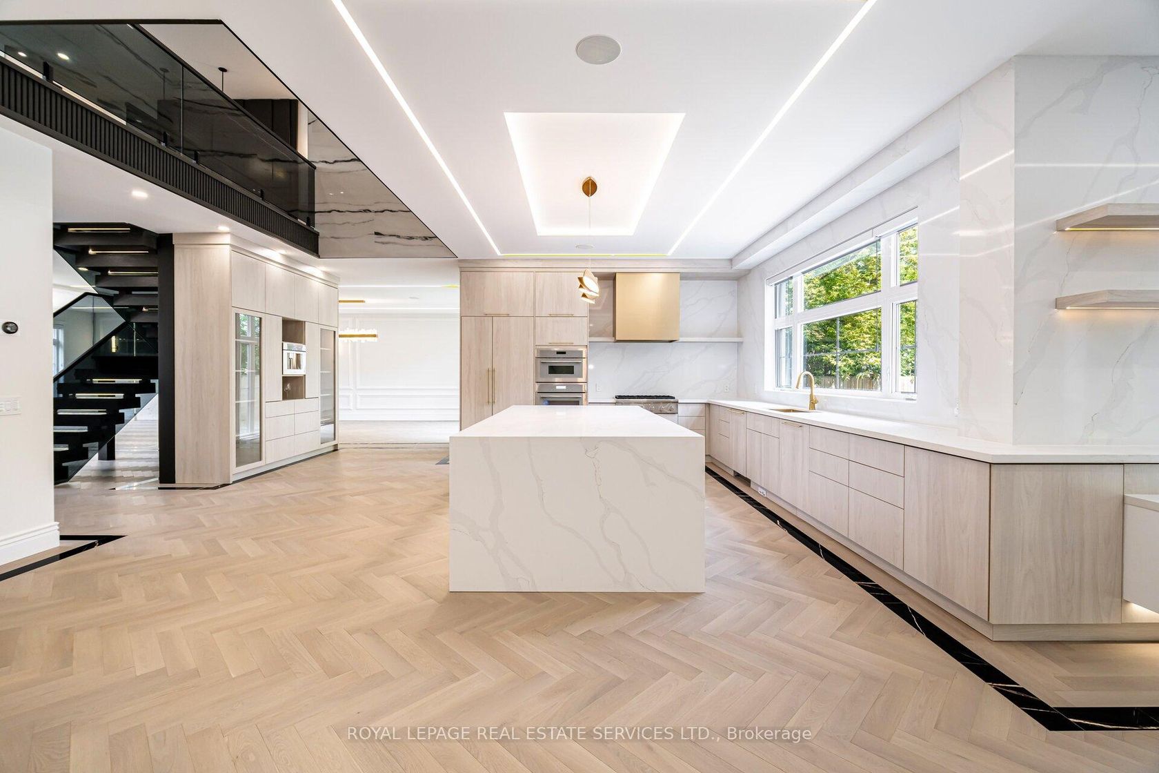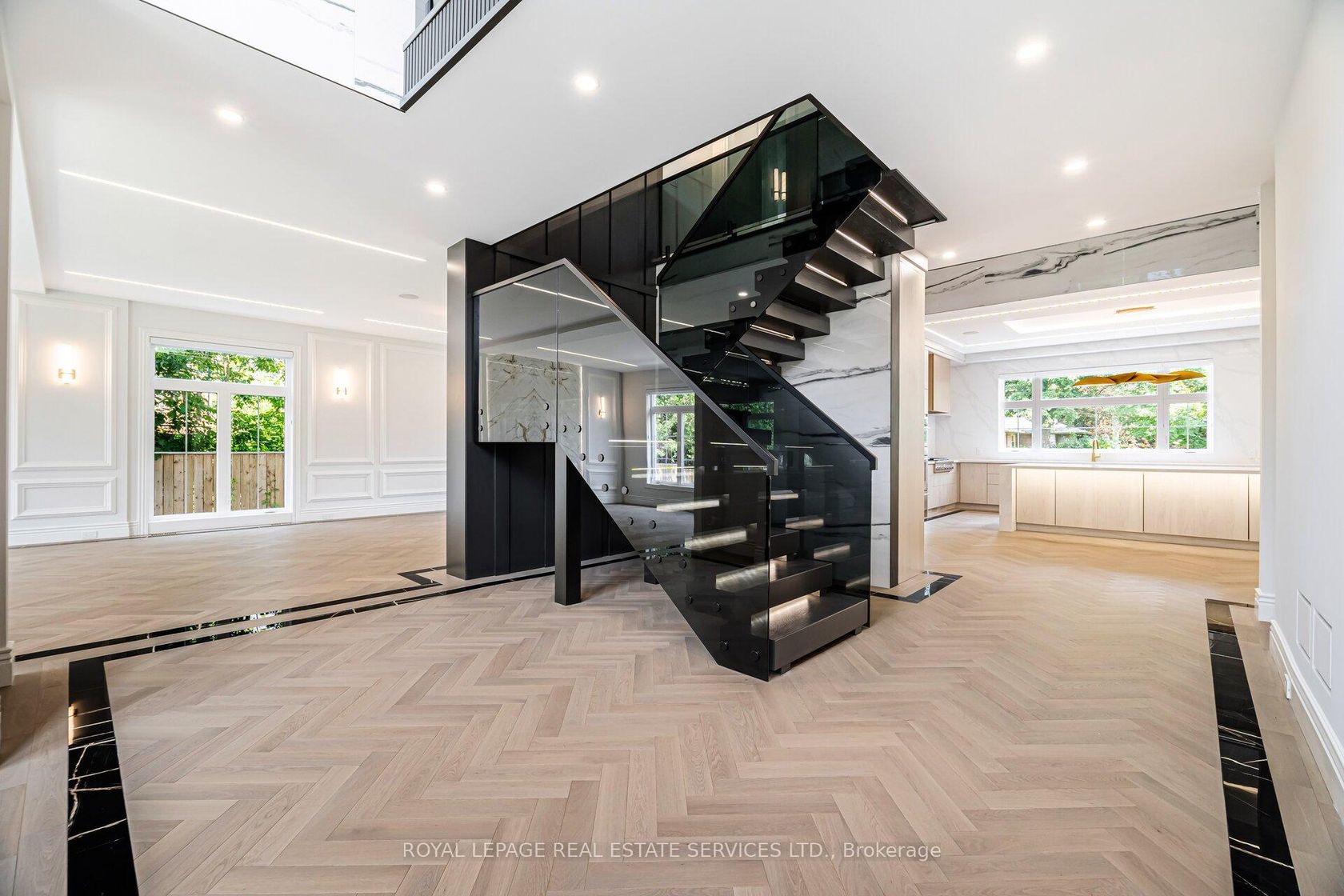 Set on a commanding 112.5'x199.5' lot just steps from the lake, this custom modern-traditional estate offers nearly 11,000SF of finished living space across three levels. A long private drive with parking for up to 12 cars and oversized 3-car garage create a striking arrival, complemented by stone and stucco architecture, soffit lighting, and professionally landscaped grounds. A dramatic double-height foyer introduces the home's scale, anchored by an open-riser staircase with smoked glass panels and integrated lighting. Principal rooms feature tile inlaid borders, herringbone engineered hardwood flooring, oversized windows, and sleek architectural lighting. The chef's kitchen is centred around a 10' quartz island with premium Thermador appliances, bespoke cabinetry, and a dedicated coffee station, flowing seamlessly into the family room with a modern fireplace feature wall, built-in media cabinetry, and multiple walkouts to a covered portico designed for four-season entertaining. A private main-floor office with double French doors and its own exterior entry offers exceptional work-from-home flexibility. Upstairs, four bedroom suites include a luxurious primary retreat with dual walk-in closets and a spa-inspired ensuite featuring a steam shower, freestanding tub, wall-mounted fixtures, and heated floor. The walk-up lower level is designed for lifestyle living with radiant in-floor heating, theatre room, wet bar, glass-enclosed gym, guest suite, pet spa, and extensive storage. Outdoor living is elevated with a rectangular pool and water feature, large-format stone terraces, composite sun deck, covered outdoor fireplace wall with TV rough-in, built-in BBQ station, and pool-house. Smart home technology, multi-zone audio, dual HVAC systems, and security surveillance complete this exceptional Lakeshore Road offering near parks, trails, and Bronte amenities. An outstanding blend of architectural presence, scale, and resort-style living! (some images have virtual staging)