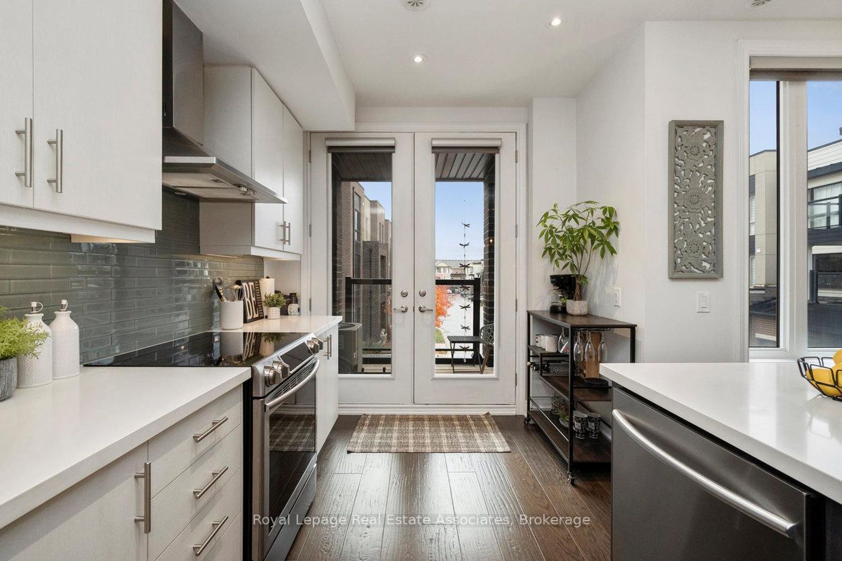 Welcome to 3076 Cascade Common, a beautifully upgraded 2-bedroom, 3-storey townhome located in Oakville's desirable Joshua Meadows community. Offering approximately 1,310 sq ft of living space plus an estimated 412 sq ft private rooftop terrace, this home is perfect for entertaining or relaxing with prime south and west-facing views. The main level features 9 ft ceilings with pot lights on dimmers and a seamless flow from the modern kitchen to the dining and living areas. The kitchen boasts stainless steel appliances, a large island with built-in sink and seating, quartz countertops, under-cabinet lighting, and a glass tile backsplash, and offers a walkout to a private balcony - ideal for morning coffee or evening unwinding. The living area is complete with an electric fireplace finished in modern concrete. Additional highlights include $47,000 in builder upgrades upon construction (2017), such as premium hand-scraped solid white oak hardwood floors with an elegant cashmere finish throughout, upgraded stairway spindles, and thoughtful design touches that elevate the home's style and comfort. The private rooftop terrace is a true retreat, featuring gas and water hookups for BBQs, outdoor dining, and gardening. Enjoy the quiet setting within walking distance to parks, shops, and local amenities. William Rose Park is just steps away, offering tennis, pickleball, baseball, splash pad, and more. Conveniently close to trails, restaurants, GO Transit, and Oakville Trafalgar Memorial Hospital. Monthly POTL fees of $64.67 cover road maintenance and garbage removal. Don't miss this opportunity to own a stylish, well-maintained home in one of Oakville's most sought-after neighbourhoods - Joshua Meadows!