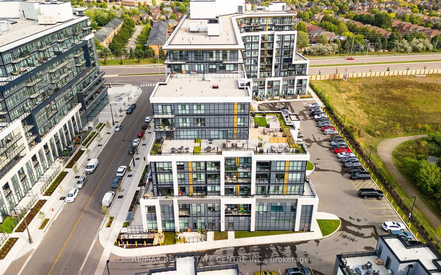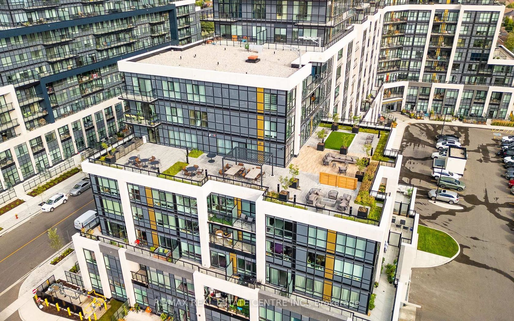 Welcome to Distrikt Trailside in sought-after Oakville. Condo Living Redefined! Discover boutique condo living at its finest in this recently completed building, offering modern finishes, outstanding amenities, and stunning curb appeal. Perfectly positioned with an unobstructed view, this residence combines contemporary design with everyday convenience. Step into the grand lobby, complete with 24-hour concierge service, onsite management, and secure parcel storage. Residents enjoy a host of lifestyle amenities including a furnished rooftop terrace with BBQs, fireside lounge, private dining with chef's kitchen, games room, yoga & pilates studios, pet spa washing station, and a state-of-the-art fitness centre. This beautifully upgraded 1 Bedroom + Den, 2 Bathrooms suite is flooded with natural light and showcases 9' ceilings, floor-to-ceiling windows, and wide-plank flooring for a bright, airy feel. The sleek modern kitchen features quartz countertops, stainless steel appliances, and stylish cabinetry, flowing seamlessly into the open living/dining space with a walk-out to a private balcony. The spacious bedroom offers Ensuite bathroom privilege and a large window making it bright. Additional highlights include: In-suite laundry with full-size washer & dryer, Secure underground parking with designated spot, Smart home integration & energy-efficient building systems, Den ideal as a home office, guest room, or flex space. Enjoy walking distance to shopping, restaurants, Sixteen Mile Sports Complex, and scenic trails. Minutes to Glen Abbey Golf Club, Oakville GO Station, top schools, and major highways (403/407/QEW). Grocery, cafes, banks, and daily conveniences are right at your doorstep. This sought-after North Oakville community offers the perfect blend of urban convenience and natural beauty. Whether entertaining on the rooftop, enjoying nearby parks, or commuting with ease, this condo delivers turnkey, contemporary living at its best
