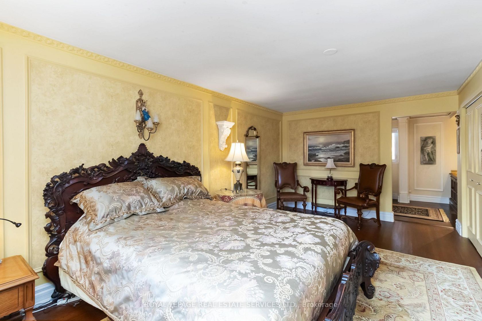 Welcome to 150 Cairncroft, a rare opportunity to own a distinctive property in one of Oakville's most coveted neighbourhoods. Nestled on a stunning 0.4 acre (17,416 sq ft) corner lot, this charming 3,052 sq ft residence is enveloped by mature trees and lush landscaping, offering the perfect blend of privacy and prestige. Set just steps from the lake and picturesque Gairloch Gardens, the location is unparalleled for those seeking an upscale lifestyle surrounded by nature, yet within easy reach of top-rated schools, downtown Oakville, major commuter routes & transit. Whether you're looking to move right in, renovate, or build your custom dream home (RL1-0 zoning), this property delivers exceptional potential. The existing home is rich in character and warmth with its Mediterranean-inspired façade and design, offering 4 bedrooms + den, and 2.5 bathrooms. The living room showcases exposed structural beams set amongst 1 of this home's 4 cozy fireplaces, lending a rustic allure and architectural interest. While the soaring two-storey foyer also offers captivating views of the inviting yet secluded courtyard-style patio - ideal for entertaining or relaxing under the canopy of greenery. Properties of this caliber and location are exceedingly rare. Don't miss your chance to secure a premium foothold in a neighbourhood known for luxury homes, timeless appeal, and rare public lakefront access only steps away!