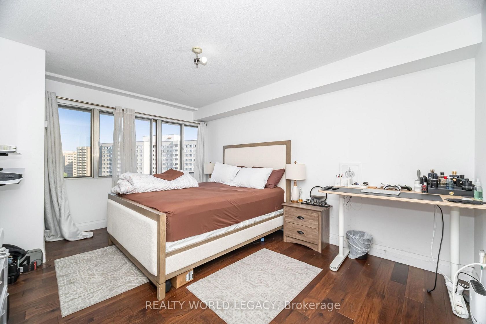 Bright corner unit with over 1,300 sq ft of living space! Unit 1901 features 3 bedrooms, 2 full baths, and a private office - ideal for today's work-from-home lifestyle. Functional layout offers breakfast area, formal dining, and spacious living room. All bedrooms fit queen beds. Carpet-free with convenient in-suite laundry. Condo fees include: heat, hydro, A/C, water, Bell fibre internet, parking, and locker -excellent value. Prime Mississauga location minutes to Square One, upcoming Hurontario LRT, Hwy 403, and Pearson Airport. Building upgrades planned: windows, elevators, generator, fan coils, and balcony refurbishment