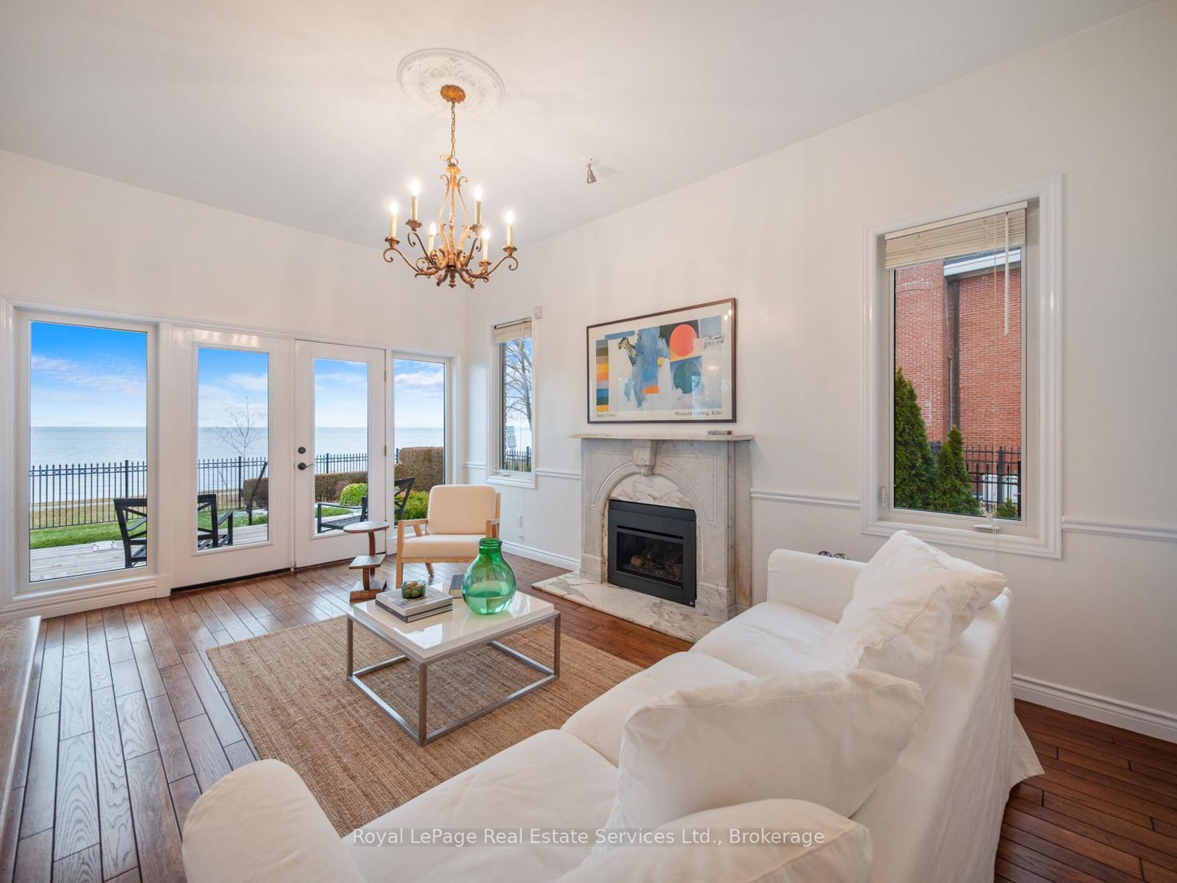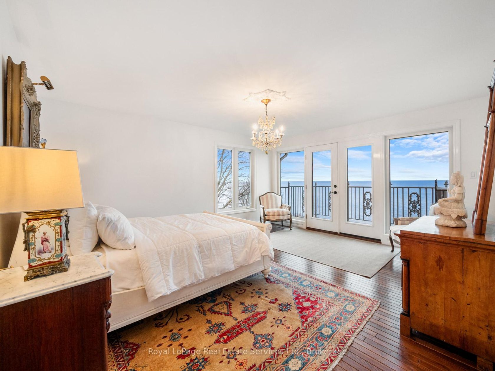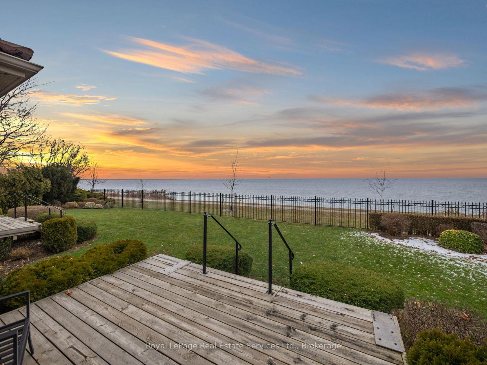 Spectacular lakefront property with 93' frontage on Lake Ontario. Located on a quiet, mature cul-de-sac, this custom built, family home offers 4+1 Bedrooms, 3.5 Baths with over 2800SF above-grade + 1400 SF Finished Lower Level. Architecturally designed with wall-to-wall windows overlooking the lake, solid brick construction with clay tile roofing, this home was built to last. 9' and 10' ceilings on the main floor. Oak hardwood floors throughout both levels. Grand entrance foyer with oak staircase. Beautiful Living Room with fabulous marble fireplace surround with gas insert open to Dining Room with wall to wall patio doors to the terrace with incredible lake views. Fabulous Kitchen/Breakfast Room is a blank canvas with the perfect space to install the waterfront Kitchen of your dreams. Walk-outs to both decks and open to the the Family Room with stunning marble fireplace with gas insert. The main floor features a mudroom with side entry and inside entry from full-sized two-car garage. The Primary suite features oversized windows and a walk-out to second floor balcony with outstanding lake views, luxury ensuite bathroom and walk-in closet. Two more Bedrooms overlook the lake with oversized windows. The front Bedroom opens to a bonus room above the garage which could be handy as a Den or quiet retreat. The Lower Level has excellent ceilings height, good windows and features one Bedroom, a 3-Piece Bathroom, Recreation Room, Den, Laundry Room, storage and more. Beautifully landscaped and maintained property fully fenced with wrought iron gate access to the lake. Cobblestone driveway accommodates 4 cars. Outstanding value on Lake Ontario. A must see!