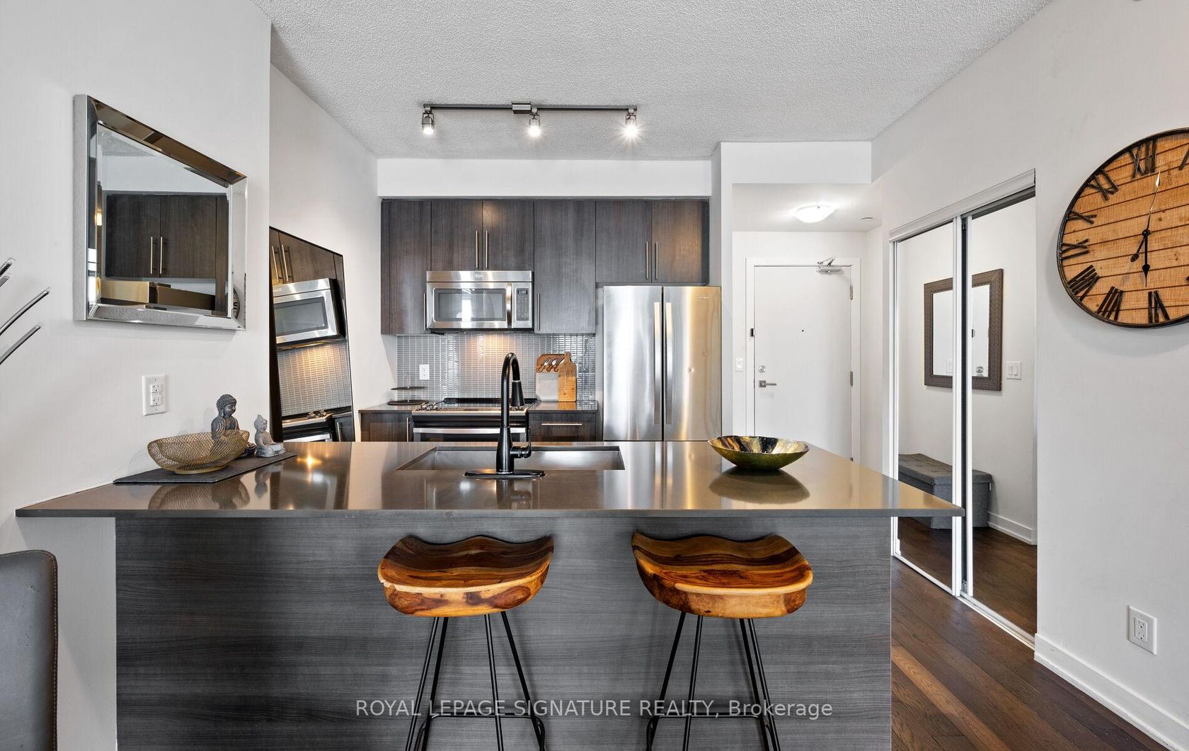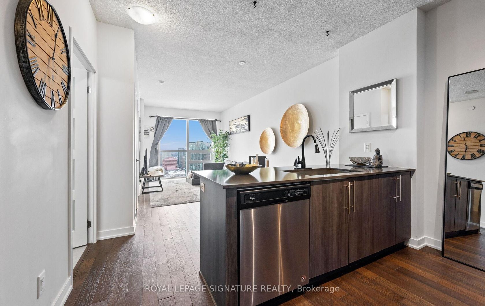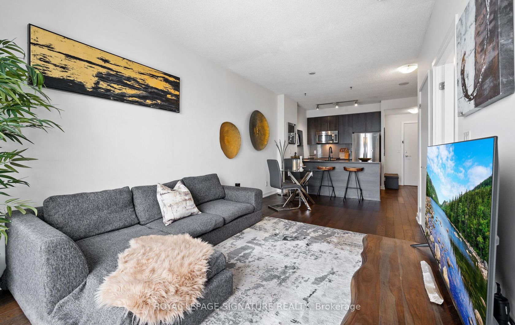 Welcome to the "Posh Style Vibe" PSV2 condos located in Mississauga's vibrant downtown core. Live a care free condo lifestyle in this beautiful 1 bedroom. The airy, open-concept living space offers 9' ceilings, engineered wood flooring, expansive windows with a fantastic view of Celebration Square. The kitchen features sleek cabinetry, stainless steel appliances and modern countertops with breakfast bar-ideal for everyday dining. Unwind after a long day of work on your private balcony. Well maintained by Original Owner. Residents enjoy access to incredible amenities including an indoor pool, gym, theater room, library, 24 hour concierge and much more. Step outside your door to Starbucks, great dining, transit and all your everyday conveniences. Close to Square One, Sheridan College, Celebration Square, Food Basics, No Frills, Transit, Highways, Future LRT. Ideal opportunity for First Time Buyers, Professionals or Savvy Investors. Don't miss out on this gem!
