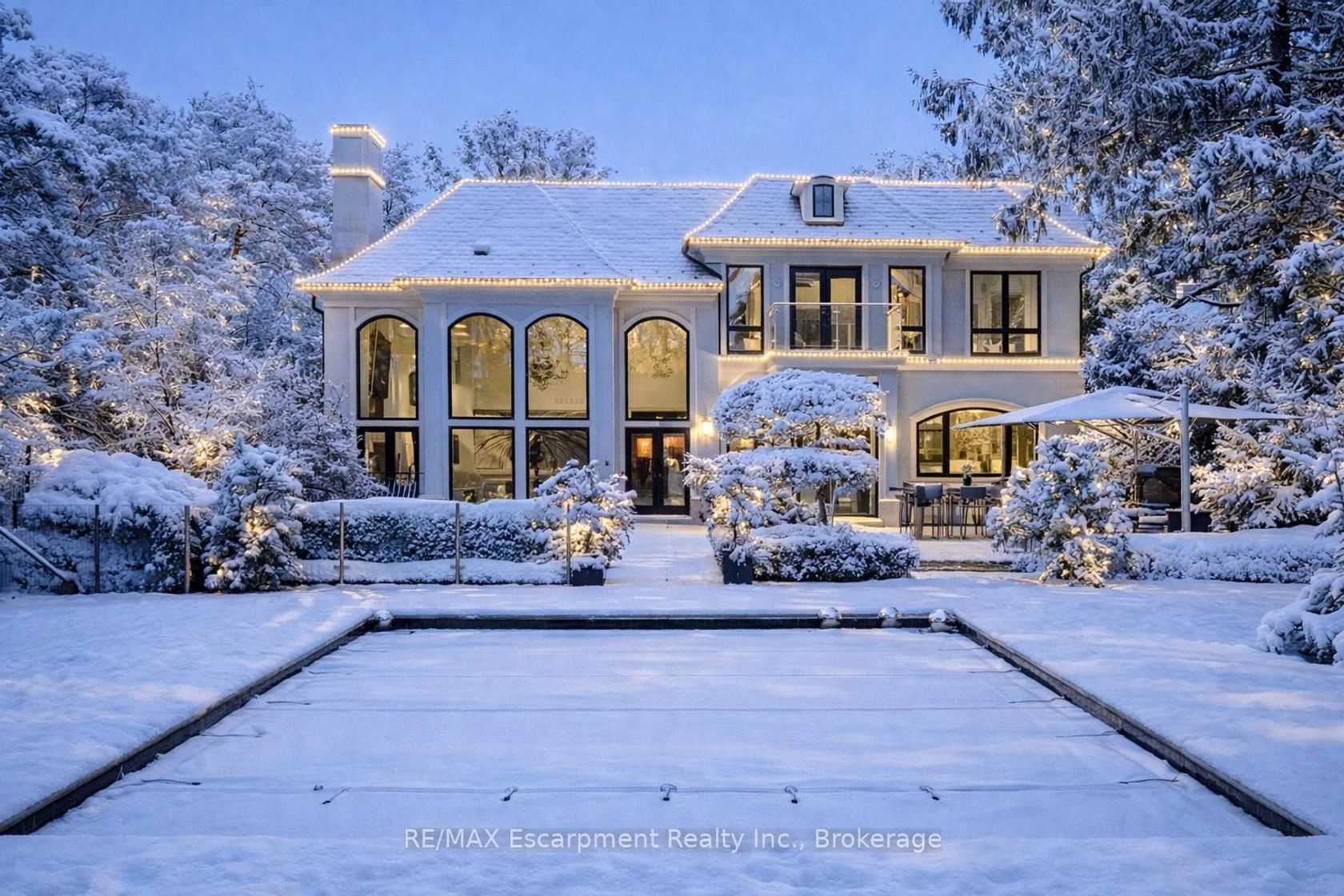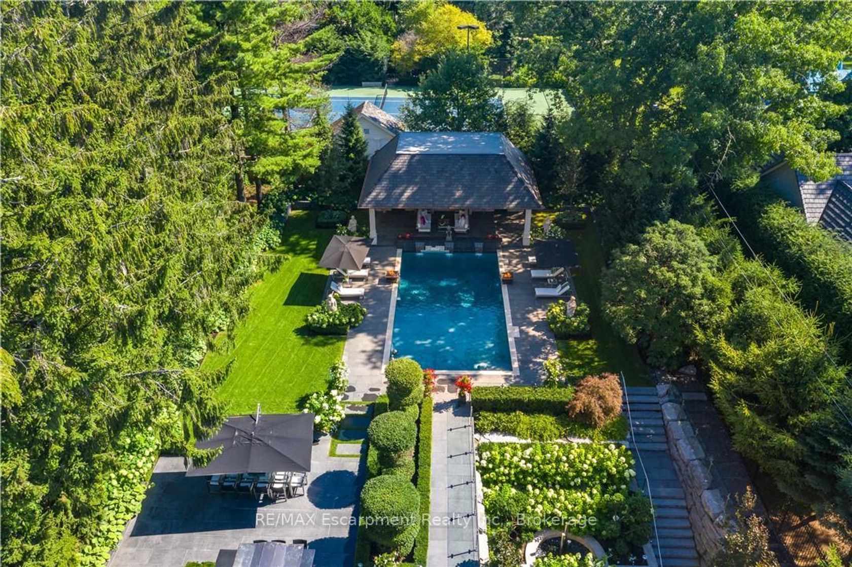 15 Chartwell Rd offers a lifestyle of unparalleled luxury. Drive through the gates & discover the grandeur of this palatial estate. South of Lakeshore,1 door from the lake on a HALF ACRE LOT. Painstakingly curated, the contemporary limestone masterpiece you've been waiting for. Solid iron doors lead to a grand foyer revealing the opulent book matched marble floors. Floor to ceiling wdws & French doors flood the house with light. Cascading waterfalls fank the hall.The Dining Room has statement lighting & servery making hosting a breeze. Soaring 18-ft ceilings & a grand gas f/p are focal points of the Great Room,w/captivating views of the resort style yard. Experience culinary excellence in the black lacquer& glass kitchen by NEFF that features top of the line appliances & a B/I coffee machine & butlers pantry. The intimate Living Room with f/p is the ideal retreat. A main floor office w/built-in cabinetry.2 powder & 2 laundry rooms. The backyard oasis has a gunite pool, waterfalls, fire bowls, covered terrace & outdoor kitchen & f/p.The pool house has a change room,3-pc bath & servery. Towering trees surround the home & are positioned to create privacy. A stone driveway,circular fountain & lush gardens create a breathtaking landscape.Floating marble stairs divide the 3 levels of this home or, you can take the elevator. Skylights make the upstairs airy & bright.The principal suite has nearly 13-ft ceilings, an exquisite 6-piece ensuite & 2 W/I closets. A private balcony overlooks the yard.3 add'l bdrms have 10-ft ceilings,private ensuites & W/I closets. The LL caters to all family members. A 5th bdrm/ensuite makes an ideal guest suite.Gym,R/I Golf Simulator,home theatre,Wine Cellar& doggie Spa. The Games & Rec Rooms have a 2nd kitchen & W/O.Heated garage,baths &LL flrs.Automation. Designed by Bill Hicks & features the artistic creativity of the KT Design Group. Located on Oakville's Street of Dreams, this is an iconic living space designed to impress!LUXURY CERTIFIED