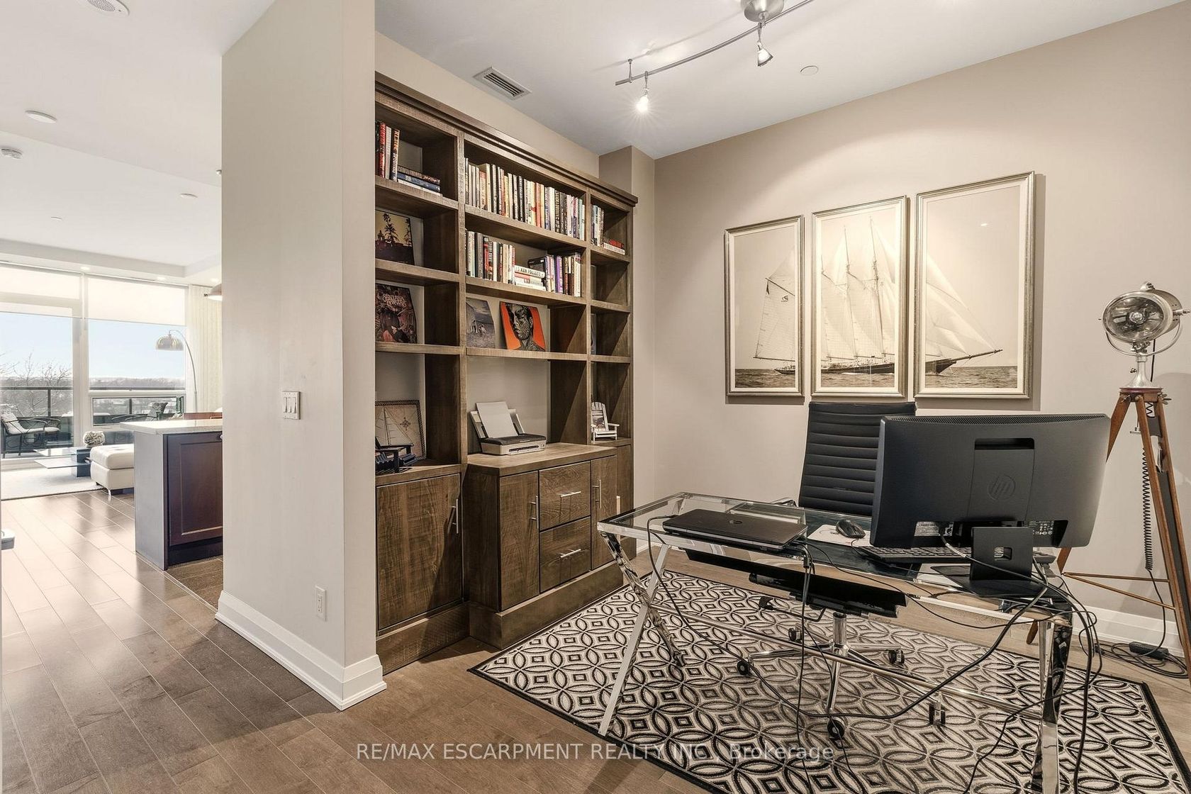 What a lifestyle awaits you! Welcome to The Shores, one of the most desirable buildings in Brontë Harbour nestled in the beautiful and highly sought after lakeside community of Oakville. This stunning 1-bedroom, 1.5 bathroom plus den suite offers 862 sq. ft. of thoughtfully designed living space, plus a generous terrace perfect for relaxing or entertaining. Featuring 9-foot ceilings, upgraded lighting, engineered hardwood flooring and a primary bedroom with ample closet space. This unit blends comfort with style. The modern kitchen is beautifully appointed with granite countertops and high end appliances. Enjoy lakeside living at its finest, just steps to the waterfront, marina, shops, and restaurants. This exceptional building offers a 24-hour concierge and an impressive array of amenities, including a fully equipped gym, yoga studio, library, meeting and party rooms, theatre room, and game room. There's even a convenient dogwashing station and car wash. Relax outdoors by the pool with loungers, unwind in the sauna and change rooms, or gather around the BBQs and outdoor fireplace. The exclusive Wine Snug invites you to enjoy a glass of your favourite vintage, with the option to rent your own climate controlled wine storage. All of this just steps to the Lake, quaint restaurants, boutique shops, and the marina. A terrific lifestyle!