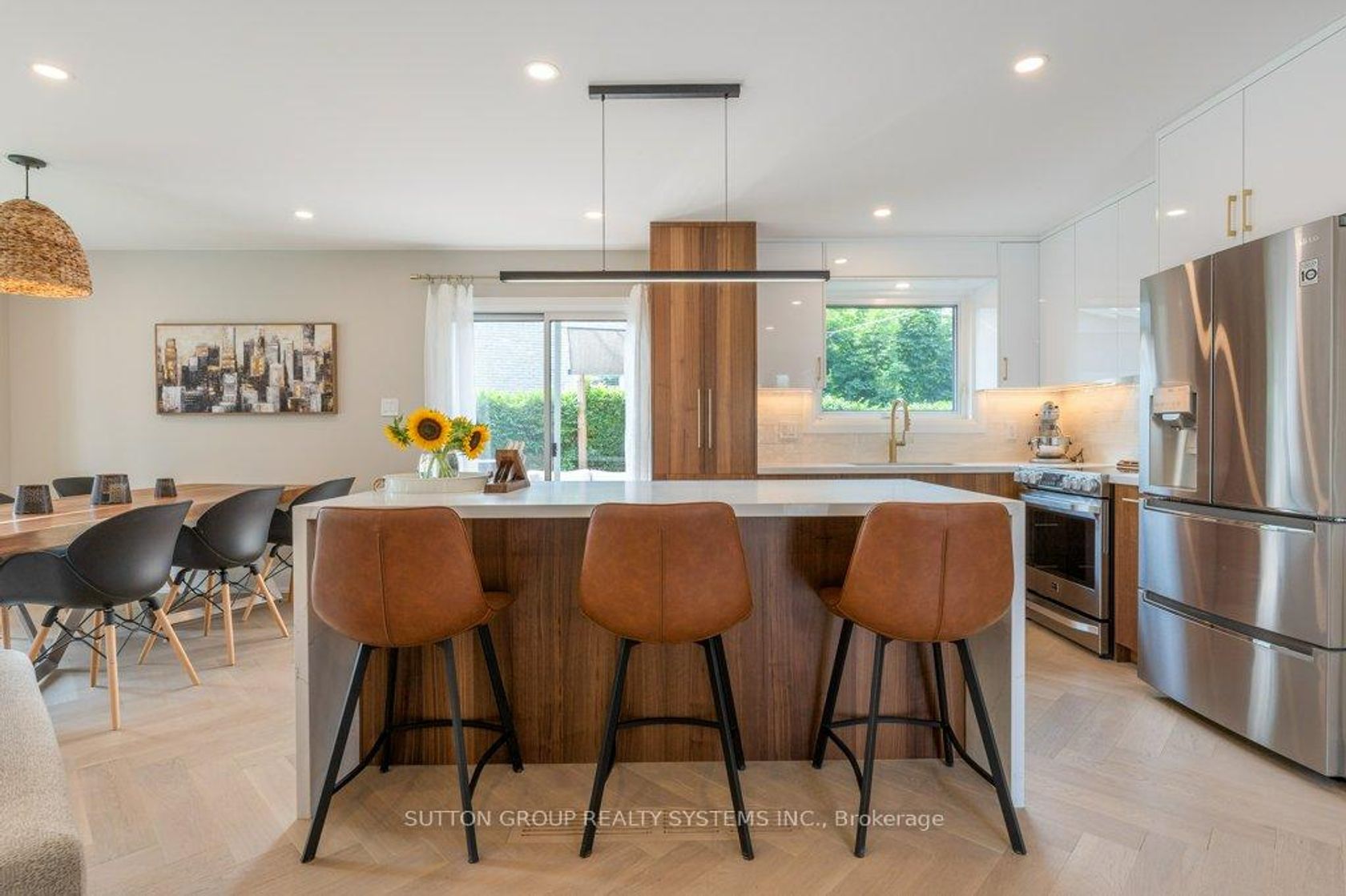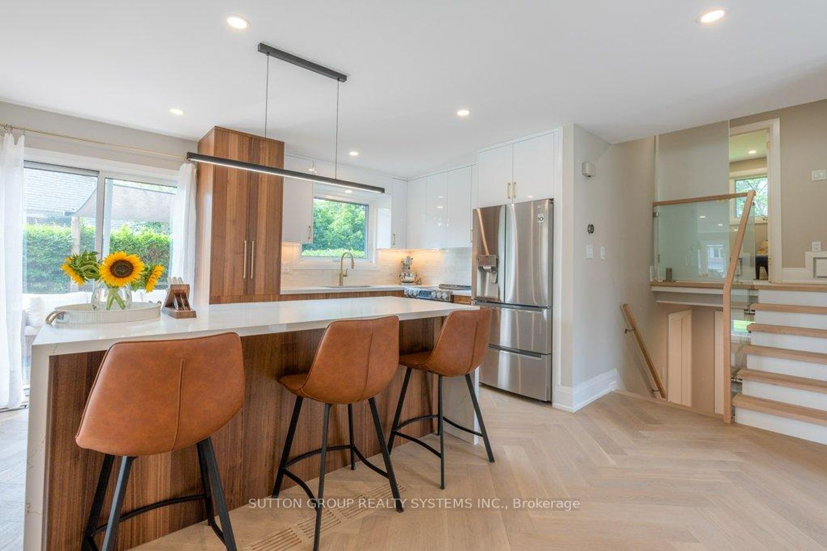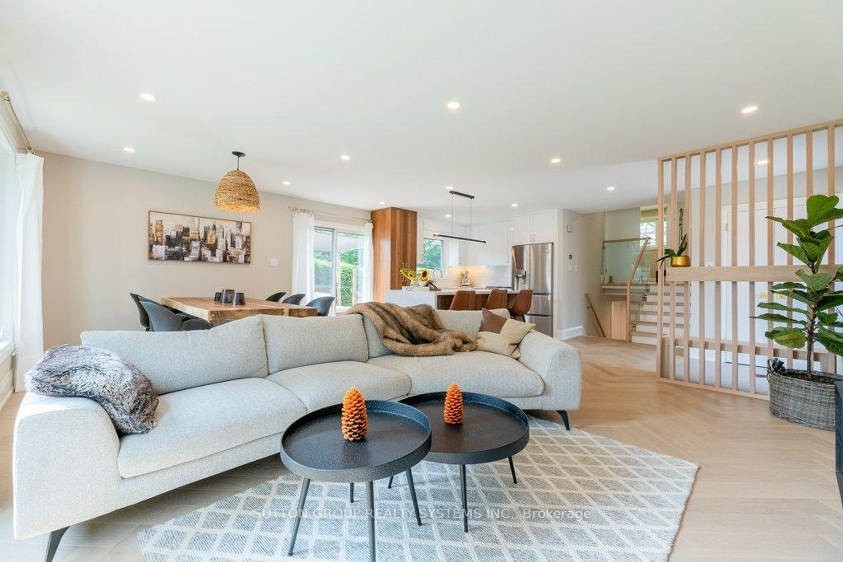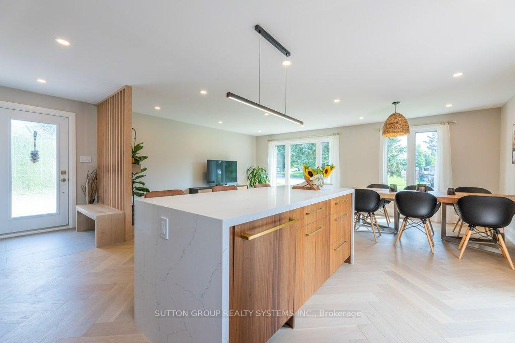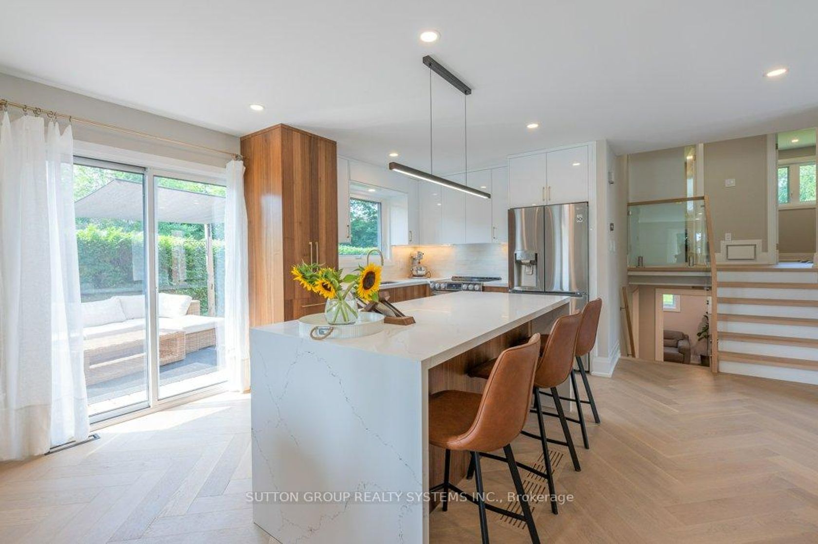 Impeccably renovated from top to bottom, the home combines contemporary elegance with superior attention to detail.!Nestled on a private, pie-shaped lot in the highly desirable Falgarwood community in this home every detail has been thoughtfully designed to combine comfort and style , creating a sophisticated living environment. As you enter, the welcoming foyer greets you with a custom wood slat accent wall and a spacious double closet, the space opens into an impressive open concept living, dining and kitchen area the true heart of this home, all highlighted by stunning, heated herringbone hardwood floors, the smooth ceilings and plenty of pot lights, that add warmth and elegance to the space. A new custom kitchen is a true chefs dream, featuring quartz countertops, waterfall island, and stainless steel appliances. Perfect for entertaining, the kitchen opens directly to the large deck, ideal for dining or relaxing outdoors in privacy. Upstairs,you'll ascend beautiful wood steps complemented by sleek new glass railings, creating a bright and open feel. Three spacious bedrooms , each filled with ample natural light, a luxurious 5pc bathroom with separate glass enclosed shower, bathtub, showcasing tasteful tile work.The lower level is designed for comfort and entertainment, offering a cozy family room with a wood-burning fireplace as the main focus, a wet bar adds to the space's functionality,making it the perfect area for movie nights or hosting guests. A renovated 3-piece bathroom include a sleek glass enclosed shower, tasteful tile work and high quality fixtures. While the 4th bedroom or home office offers flexibility to suit your family's needs.This home is renovated for modern living and has energy-efficient LED pot lights, and smart Wi-Fi light switches, allowing you to control your lighting with ease.Perfectly located,walking distance to parks, trails, schools, and public transit, Oakville GO Station just minutes away