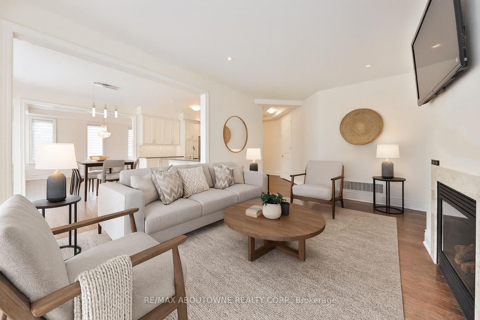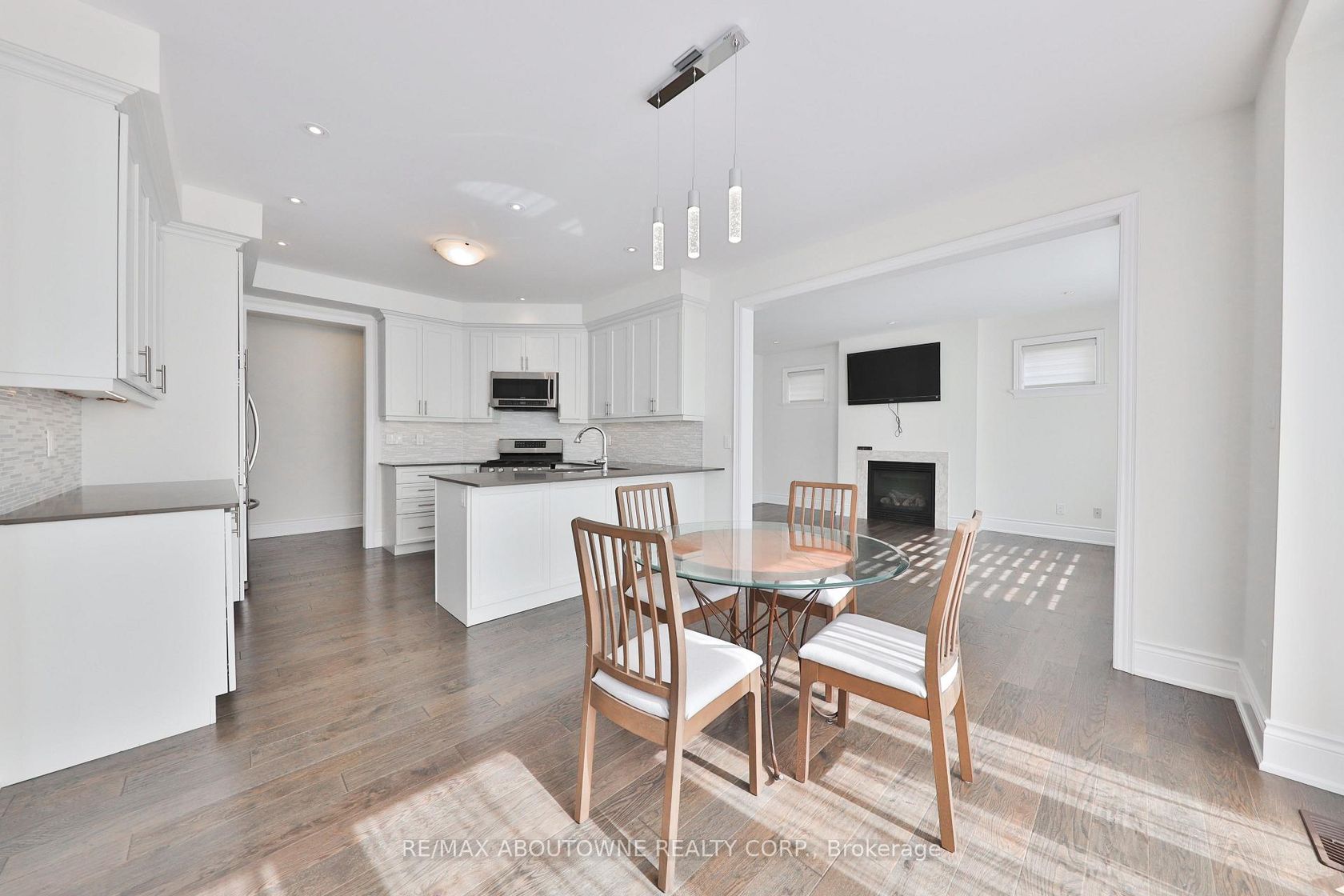 Experience refined elegance in this stunning family home built by Biddington Homes, offering 5,001 sq. ft. of exquisitely finished living space across 3 levels. Nestled in the vibrant family friendly community of River Oaks in Oakville, this 6-bedroom (4+2), 5-bathroom (4+1) residence showcases quality craftsmanship and luxurious upgraded finishes throughout. With 3,409 sq. ft. above grade and 1,592 sq. ft. below, the bright, and spacious open concept layout features engineered hardwood floors and soaring min. 9-ft ceilings on all levels. The main floor impresses with elegant formal living and dining rooms, a cozy gas fireplace in the family room, and a gourmet eat-in kitchen with quartz counters, stainless steel appliances, and a large breakfast area with walkout to the rear deck. A stunning open circular staircase unites all three levels, while the main level laundry/mudroom adds everyday convenience. Upstairs, find 4 generously sized bedrooms including two with ensuite baths and two sharing a semi-ensuite. The private primary retreat offers a vaulted 13' ceiling, sumptuous spa-like 5-piece ensuite and a spacious dressing room. The fully finished lower-level features 9-ft ceilings, a large recreation room with fireplace, a stylish bar or kitchenette ideal for multi-generational living, 2 bedrooms, a full bath, and ample storage. Pride of ownership by the original owners is evident with the freshly painted interiors throughout and a new roof. Set on a private, fully fenced corner lot with an irrigation system, this home is close to top-rated schools, trails, parks, shopping, highways 403 & 407, and Sheridan College. A true gem and a rare opportunity not to be missed in one of Oakville's most sought-after neighbourhoods.