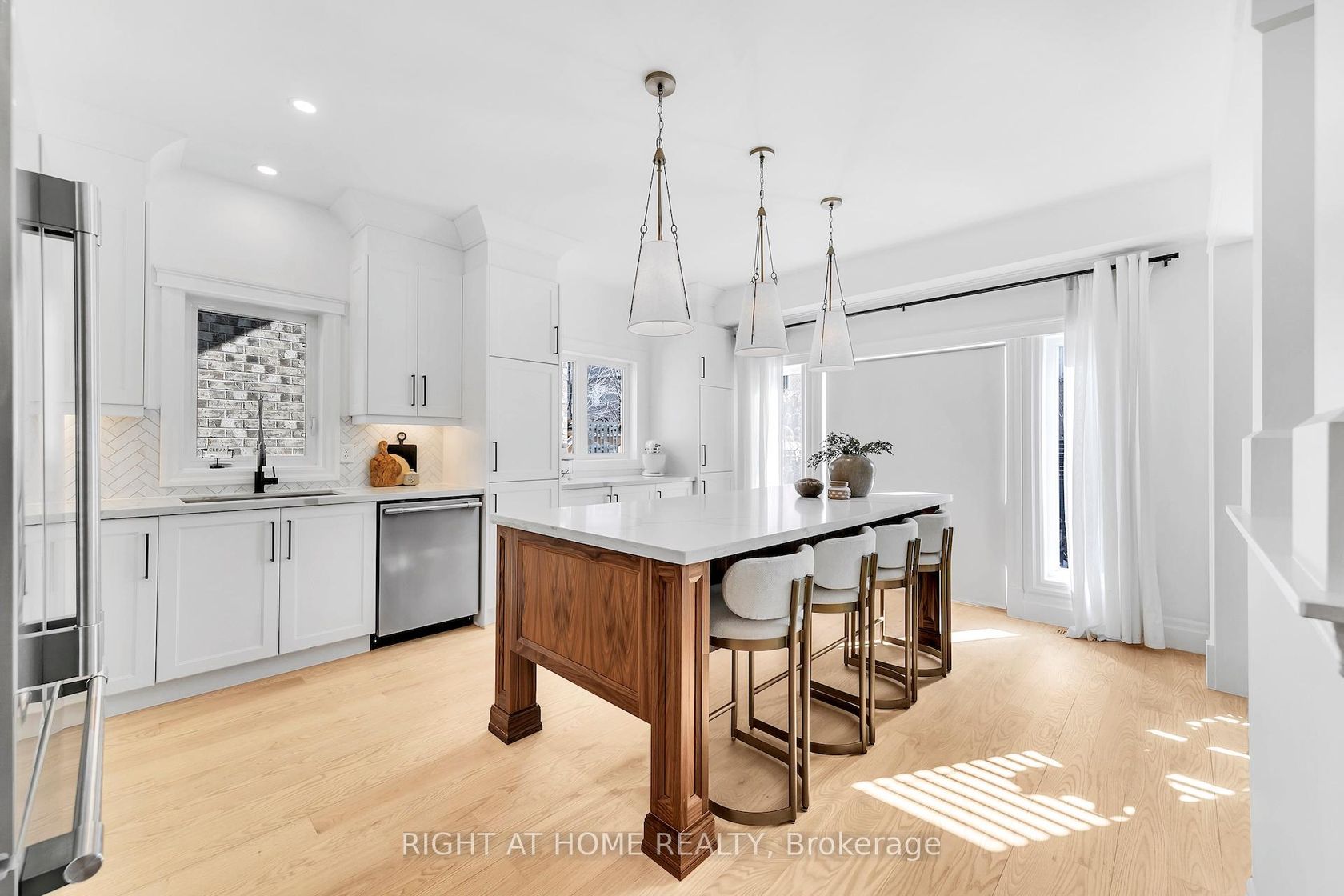 Welcome to Luxury Living in Prestigious Alton VillageExperience nearly 3,000 square feet of beautifully finished luxury living where no detail has been overlooked. Located in the highly sought-after Alton Village, this professionally designed home is entirely move-in ready, showcasing freshly painted interiors, refinished hardwood floors, elegant waffle ceilings, and designer light fixtures equipped with Lutron dimmers throughout.Property Highlights:The Chef's Kitchen: The heart of the home features sleek, soft-close white cabinetry with modern hardware, gleaming quartz countertops, and a striking herringbone backsplash. It is fully equipped with stainless steel appliances (updated in 2018), a stylish coffee bar, and a large centre island with comfortable seating for four.Finished Basement: An entertainer's dream, the professionally finished lower level includes a custom wet bar and a luxurious full bathroom.Outdoor Oasis: Step outside to a professionally landscaped exterior featuring a completely private rear yard with elegant stamped concrete-perfect for summer hosting.Fully Finished Garage: A pristine, fully finished double garage adds extra polished space and convenience.