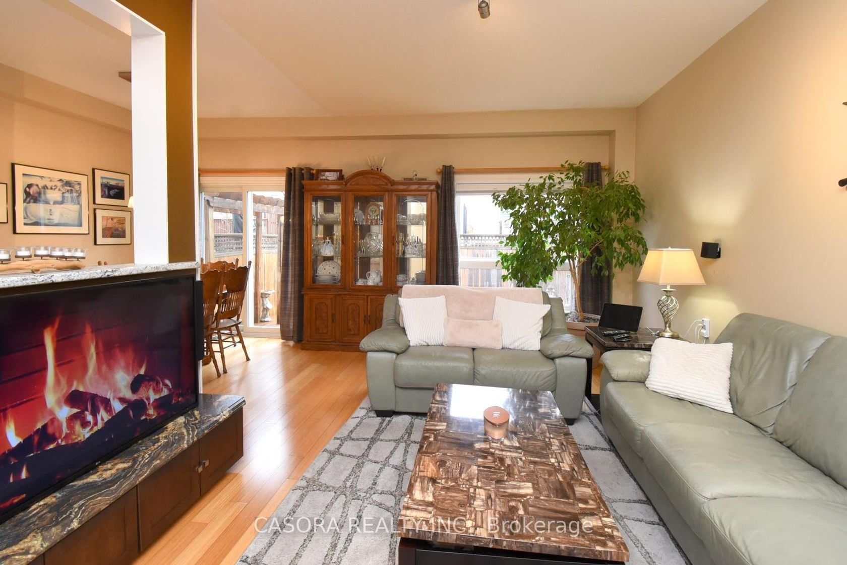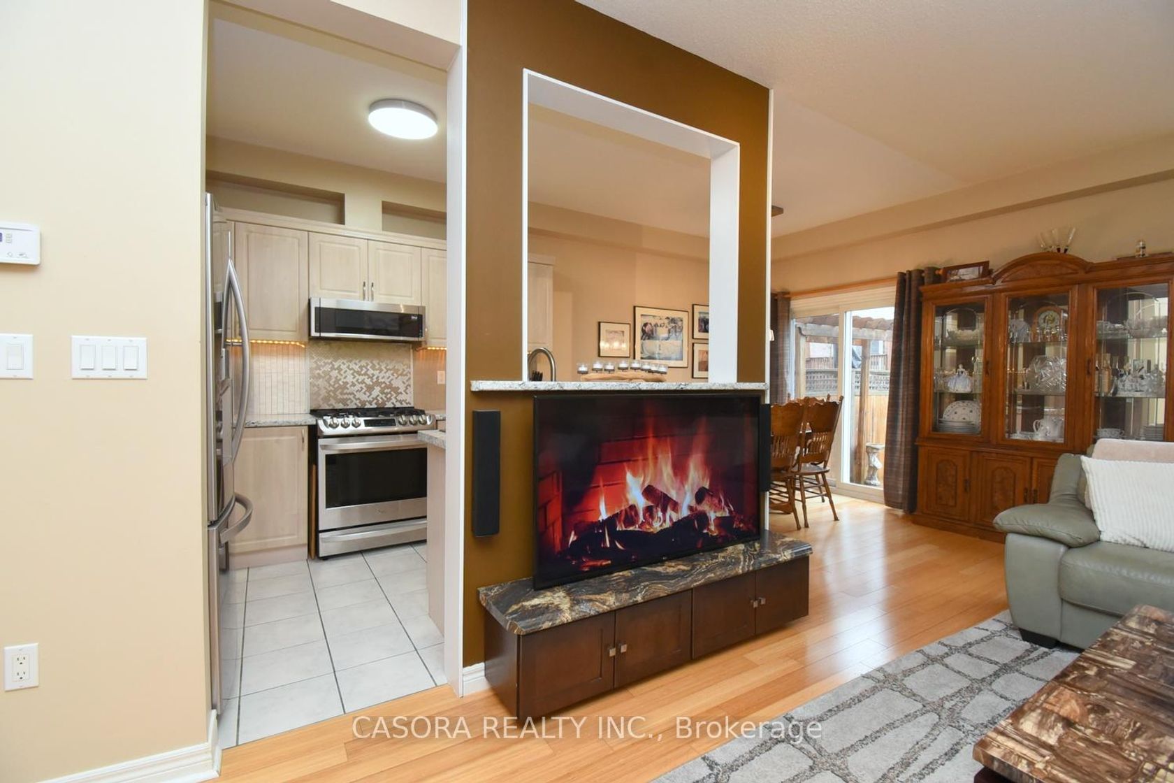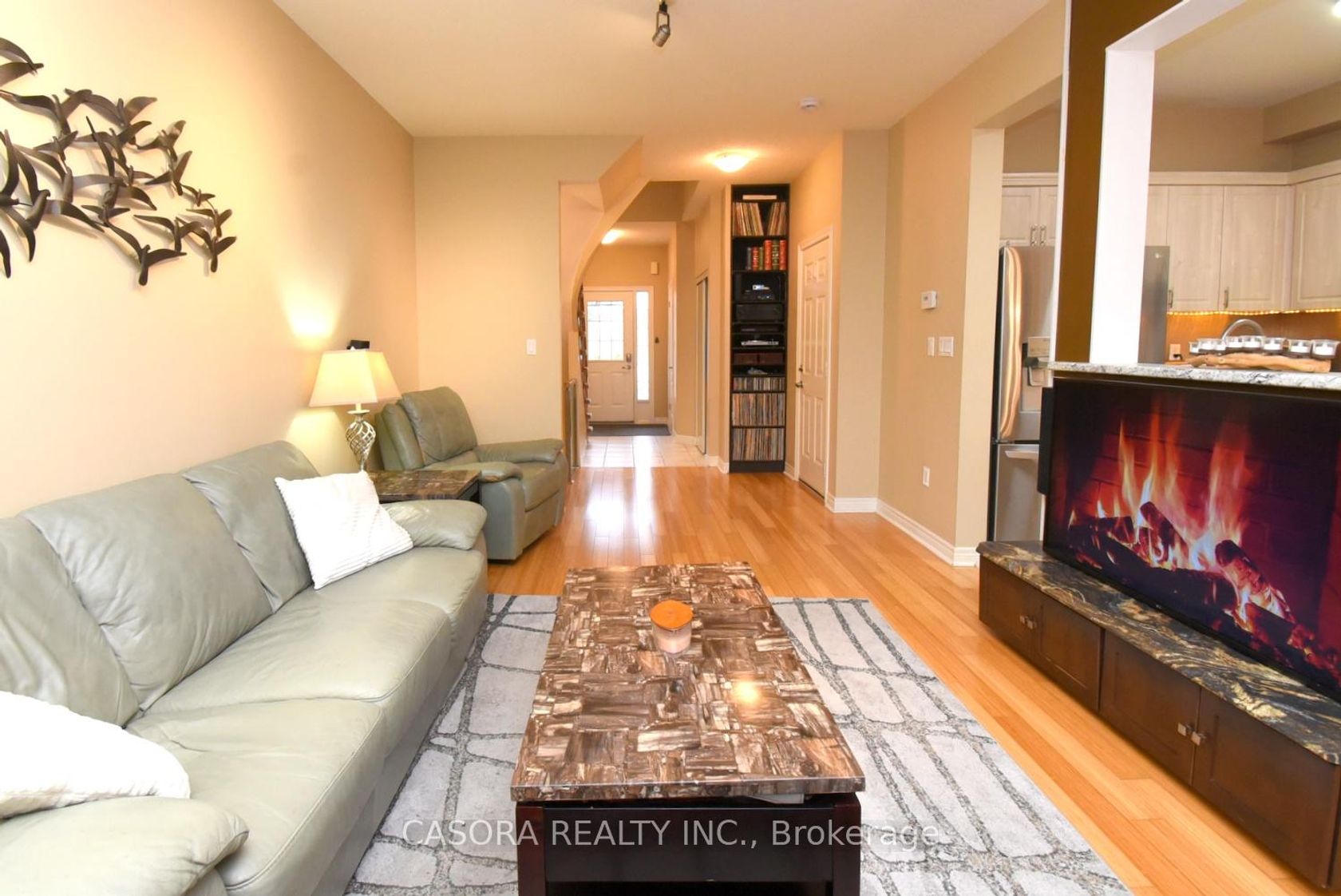 This magnificent townhome offers features normally found in far more expensive home. Open concept main level with hardwood floors, built-ins to house stereo and tv components (TV is included). Patio door to full deck with natural gas connection for barbeque. Gas stove in kitchen (electric connection also available). The upper level also offer hardwood throughout, including the open office area and 3 generous bedrooms. The primary bedroom includes a full ensuite and walk-in closet plus an electric fireplace and tv upgrade. The second bedroom offers a built-in desk and gaming table that allows for a comprehensive system setup. TV's in all three bedrooms are included. The entire family will enjoy the lower level which is fully finished with a 3 piece bathroom, and Home Theatre with roll down screen, surround sound and built-in bar.