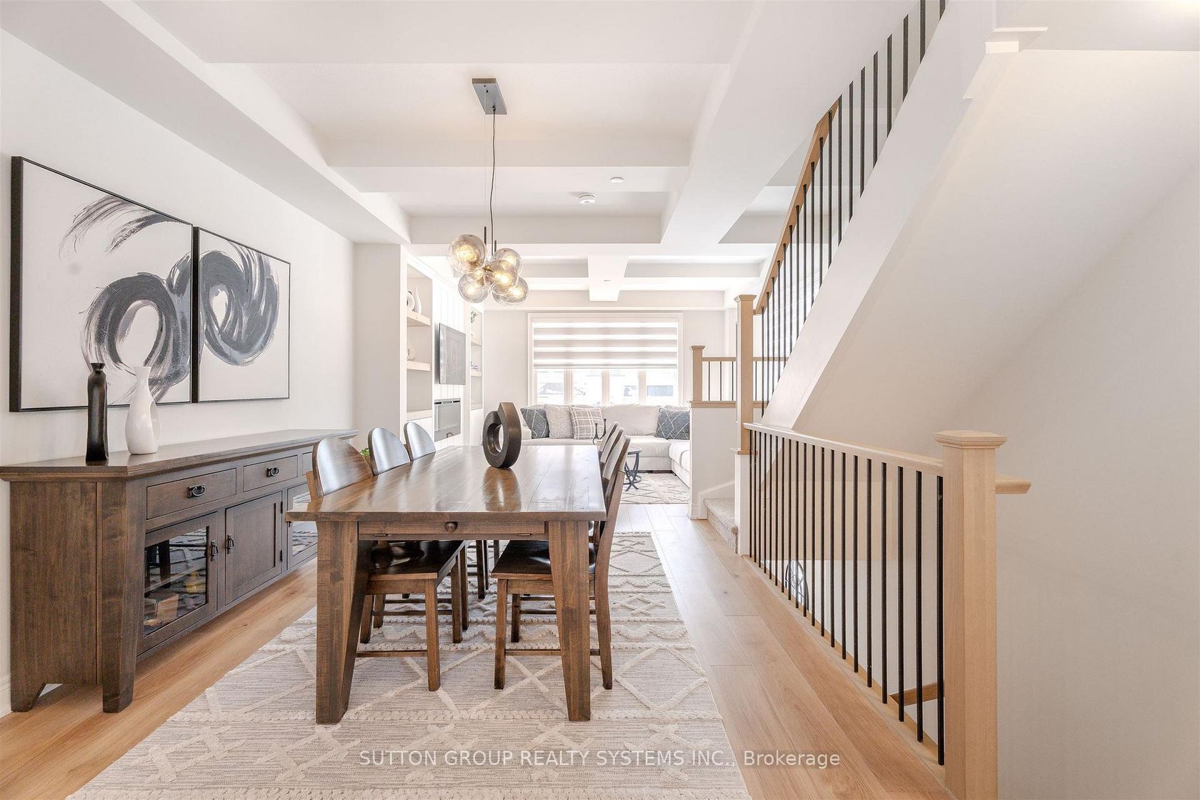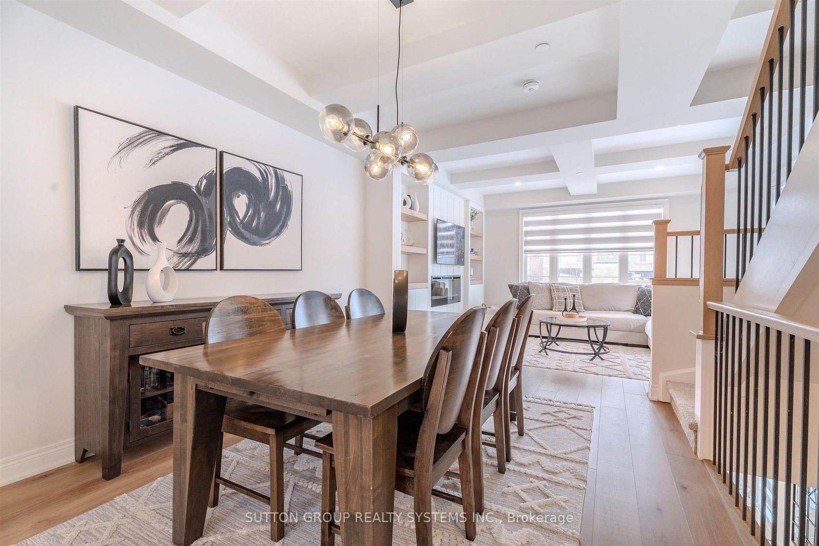 Don't miss this exceptional opportunity to own Unit #8 in Uptown Oakville - a highly upgraded Castlefield model by boutique builder DiCarloHomes, offering an expansive 2,287 sqft of thoughtfully designed living space, enhanced with over $60,000 in premium builder upgrades andadditional custom finishes completed after closing.This residence stands apart with a beautifully designed third-level loft, upgraded to serve asa fourth bedroom or private office - $9,500 upgrade, providing flexibility for today's lifestyle. The main living and dining areas are elevated byelegant coffered ceilings - $8,000 upgrade, adding architectural depth and a refined, upscale ambiance rarely found in comparable homes. Themain level features engineered hardwood flooring throughout the living, dining, and kitchen areas - $8,500 upgrade, replacing standard ceramicand creating a seamless, elevated aesthetic that enhances both comfort and design. Beyond builder enhancements, the home has beenmeticulously customized with high-end finishes throughout. Highlights include upgraded faucets, designer light fixtures in every room, customblinds on all windows and doors, and a fully integrated central vacuum. Functionality meets design with custom-built closets in the second andthird bedrooms, a bespoke feature wall with a built-in TV unit in the living room, and a beautifully finished laundry room complete with customcabinetry, wood shelving, and a folding counter.This home continues to offer all the features expected in Uptown Oakville living, including 9-footceilings on all levels, a modern kitchen with quartz countertops, extended cabinetry, stainless steel appliances, and well-appointed bathroomswith quality finishes throughout. A true turnkey offering, this residence delivers a level of customization, comfort, and value that exceedsstandard builder inventory - ideal for discerning buyers seeking a move-in ready home with elevated design in one of Oakville's most desirablecommunities.