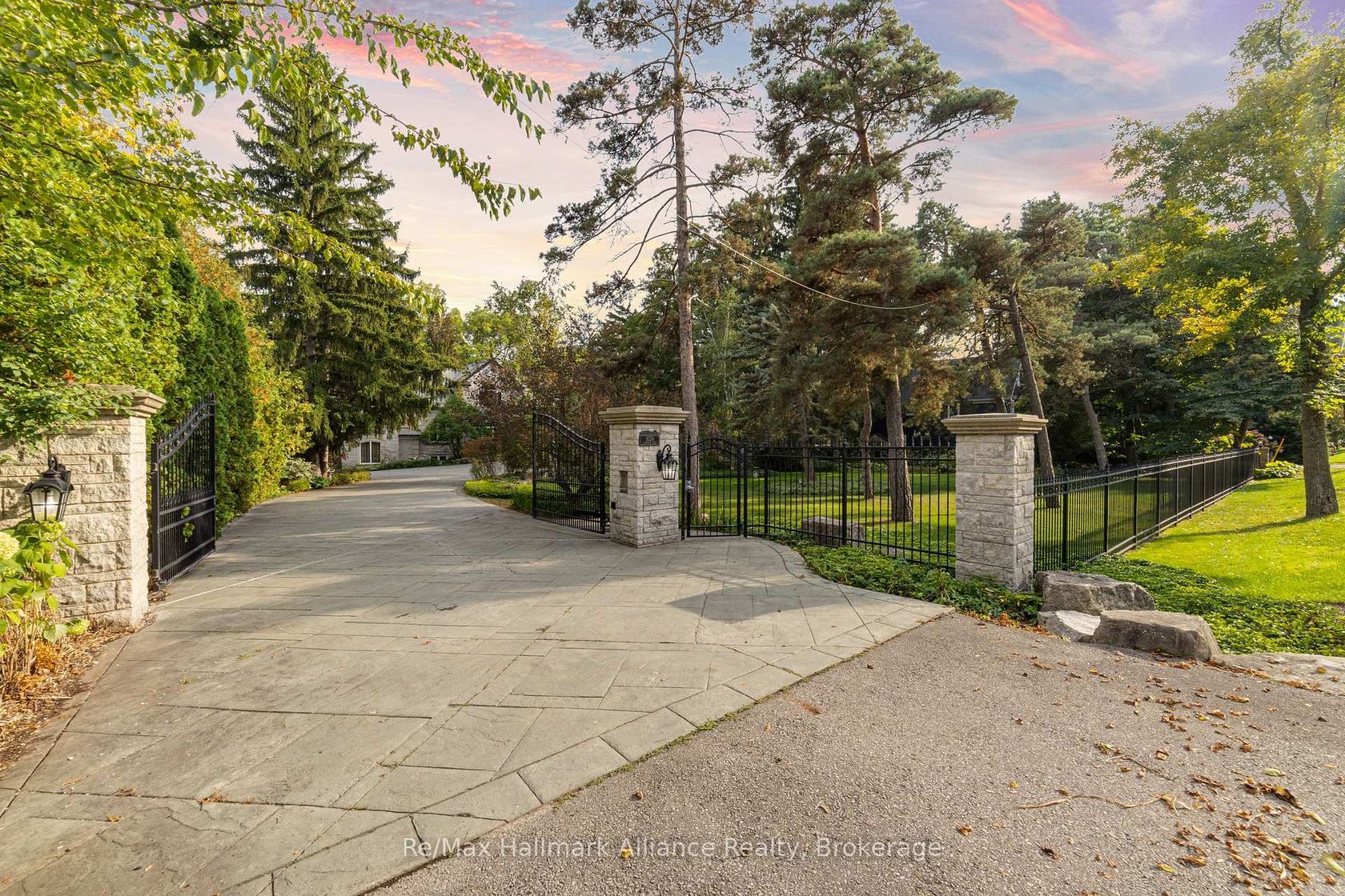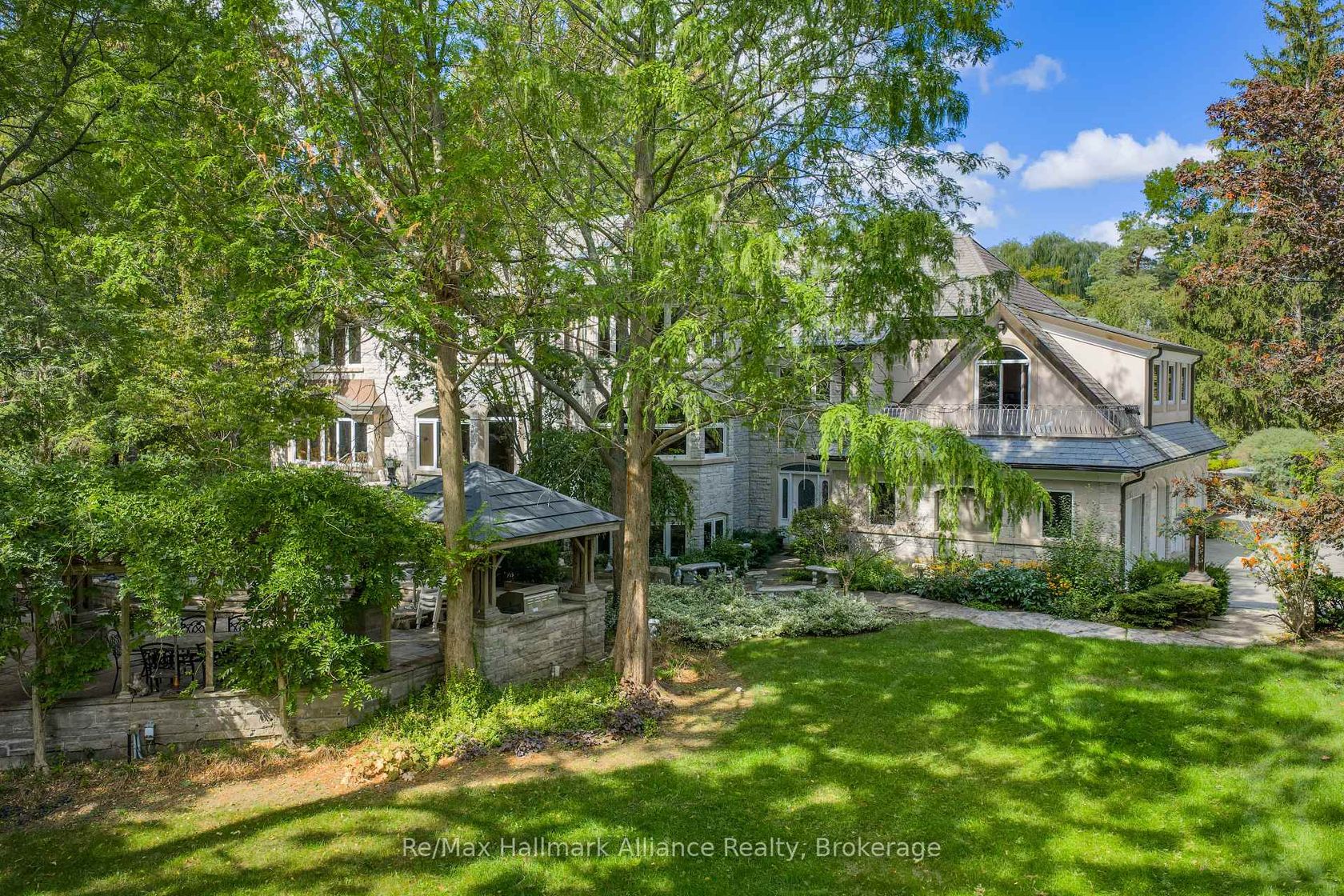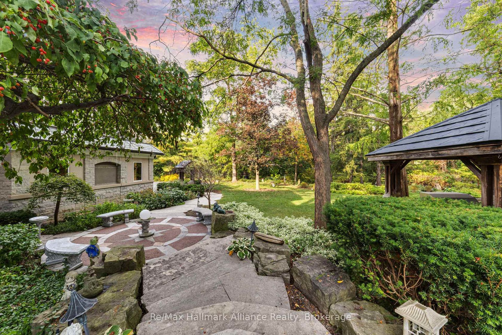 A Rare Executive gated 1.39-acre ravine estate in Morrison sought after community timeless elegance meets modern luxury this residence provides unmatched privacy, lush landscaping, & refined outdoor living. Through the custom 8-foot beveled glass entry doors, the soaring foyer sets the tone with emerald pearl granite floors, a handcrafted Austrian crystal chandelier on motorized lift, & a sweeping French Provincial staircase with wool Victorian Tapestry runner. The main floor boasts elegant formal living & dining rooms with hand-carved marble fireplaces, cathedral ceilings, plaster mouldings, & Palladian windows framing ravine views. A richly appointed library & office feature maple plank flooring, crown moulding, & custom draperies. The family room offers panoramic vistas & a mahogany fireplace, while the chefs Hawthorne kitchen impresses with cherry cabinetry, granite surfaces, premium appliances, & a walkout to the terrace. Upstairs, the luxurious primary suite includes a two-way fireplace, custom lighting, & a walk-in closet with attic access. The spa-inspired ensuite offers heated floors, Jacuzzi air tub, granite shower, & Strass crystal lighting. Three additional bedrooms each enjoy private ensuites, cathedral ceilings, & custom finishes. A versatile great room with terrace access & a full laundry suite complete this level. The lower level is an entertainers dream with a billiards & games room, full walnut bar, gym, media lounge, & spa retreat with sauna & steam shower. Radiant heated floors, & abundant storage enhance the space. Outdoors, the property is equally breathtaking with two stone gazebos joined by a large pergola, extensive walking paths, & a serene koi pond and a Japanese-inspired garden creating a private resort-like escape. With 4+1 bedrooms, 7 bathrooms, elevator access to all levels, multiple terraces, & a gated circular driveway, this estate offers over 10,000 sq. ft. of refined living in one of Oakville's most coveted neighbourhoods.