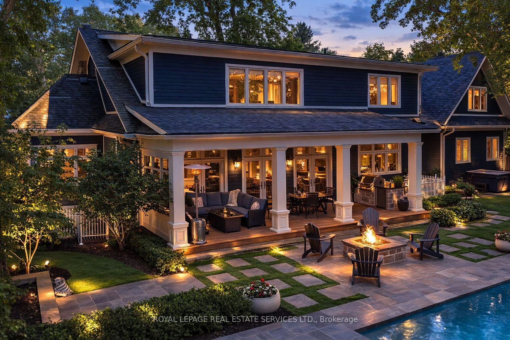 Timeless Cape Cod-inspired home set on a premium lot in prestigious South East Oakville, ideally located on a private dead-end street shared by just five distinguished homes. Built in 2008 and extensively renovated over the last 3 years, this home offers 4+1 bedrooms & 7 bathrooms with over 6,100 sq ft of beautifully finished living space. Elegant Carrara marble flooring, Calacatta marble and quartz surfaces,custom millwork and soaring ceilings, seamlessly blending classic architectural charm with refined modern luxury. Expansive French doors span the rear of the home, filling the principal rooms with natural light and providing seamless indoor-outdoor flow. The chef's kitchen is designed for both everyday living and elevated entertaining, featuring a 48" Viking range,professional hood fan,panelled Sub-Zero refrigerator,custom Top-Notch cabinetry and a generous island with Calacatta quartz counters. The adjoining family room is anchored by a striking Carrara marble fireplace, while a formal dining room offers an elegant setting for hosting. The main level also includes a private office, full bathroom with convenient backyard access,spacious laundry room,stylish powder room and a separate living room. The upper level is highlighted by a luxurious primary retreat with a coffered ceiling,custom built-ins an oversized walk-in dressing room and a spa-inspired ensuite overlooking the private backyard. Three additional spacious bedrooms each feature their own ensuite & walk-in closet. The fully finished lower level extends the living space with a large recreation room,guest bedroom with ensuite and a dedicated home gym. Professionally landscaped grounds create a resort-style backyard complete with an inground pool, hot tub, outdoor kitchenette,built-in fire pit,multiple lounge areas and low-maintenance turf lawn. Ideally located near parks and top-ranked schools, this exceptional turnkey home offers an outstanding lifestyle in one of Oakville's most coveted neighbourhoods.