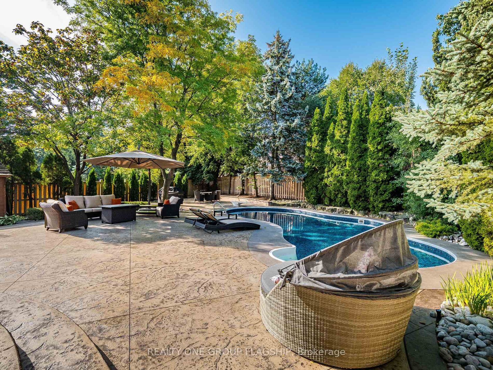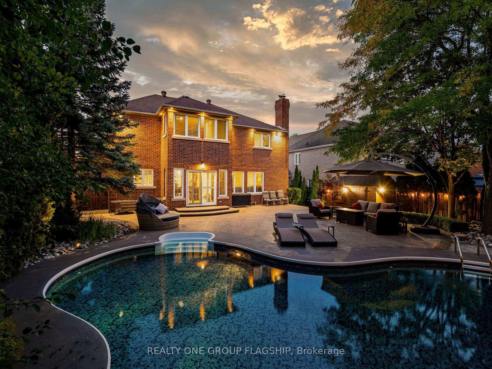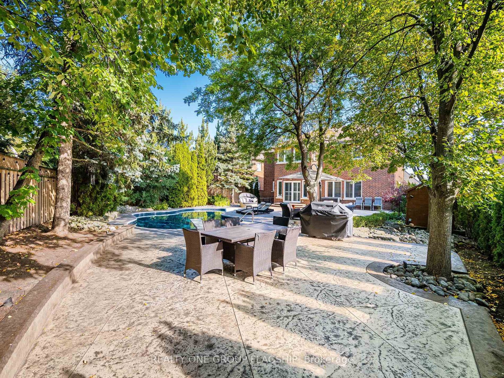 Welcome to 5290 Hilton Court, a rare and distinguished residence nestled in the most private and prestigious cul-de-sac in Credit Mills. With properties on Hilton Court seldom offered for sale, this is an exceptional opportunity to own a true gem. This stunning estate spans nearly 10,000 sq ft. situated on a 65.12 x 166.38 ft. private, resort-style oasis that features a heated saltwater inground pool, landscape lighting and surrounded by towering cedar and pine trees for total seclusion and serenity. This New Classic Style home blends timeless architectural elegance with modern family comfort boasting approx. 4,300 sq. ft. above grade and an additional 1,700 sq. ft. in the lower level for a total of an approx. 6,000 sq. ft. of living space. The main level welcomes you with a grand custom-made Solid Mahogany Amberwood door, Expansive formal living and dining rooms with oak hardwood flooring, two solid oak staircases adding architectural distinction and flow and a versatile Gym (can be converted to a main floor Master bedroom), The heart of the home is the custom-designed kitchen, a true gathering place for family and guests alike with Oversized center island, Wrap-around cabinetry for ample storage and Full slabs of granite countertops and backsplash for a sleek, upscale finish, The kitchen opens into a sun-filled family room anchored by a modern wall-mounted gas fireplace, with stunning views of the lush, cedar-lined backyard the perfect setting for year-round entertaining. The second-floor features 4 spacious bedrooms, 3 full bathrooms, all beautifully appointed Plus an executive office (can be converted to a 5th Bedroom) with custom wrap-around bookshelves and a cozy gas fireplace with Rich oak engineered hardwood flooring throughout. The lower floor includes a direct exit to the 3-car garage, a second full kitchen with an attached Pantry room, massive TV room, full Billiard Room, wet bar, and a residence suite with a 3 PC washroom and attached Family Sauna.