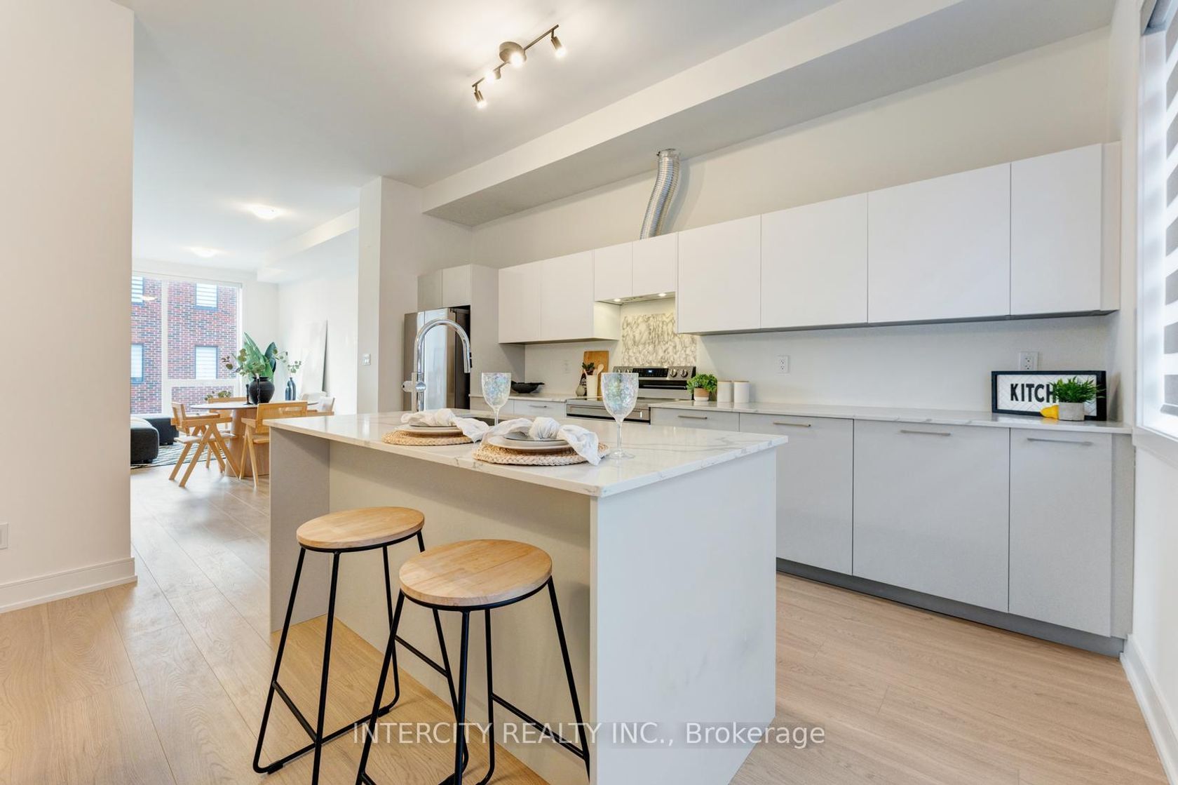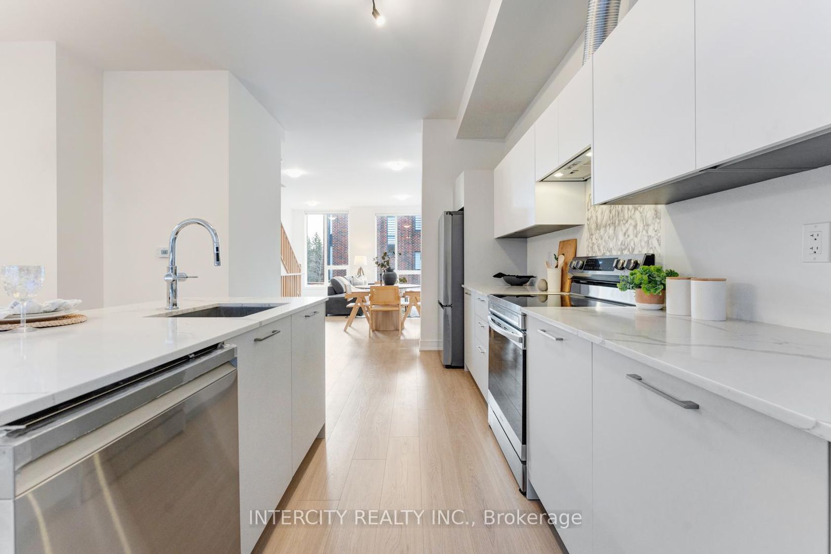 Stunning luxury townhome offering approx. 2,000 sq. ft. of upgraded living space in a quiet, family-friendly neighbourhood. Features 10' smooth ceilings on the 2nd floor and 9' smooth ceilings on the main & 3rd floors, with laminate flooring throughout. Bright open-concept layout with separate living and family areas, and a modern kitchen with quartz countertops, soft-close cabinetry & stainless steel appliances. Spacious primary bedroom with walk-in closet and an upgraded 5-pc ensuite featuring quartz counters, double sinks & a frameless glass shower. Includes 2 additional bedrooms and a main bath. Large windows provide abundant natural light. Conveniently located close to schools, shopping & all amenities.