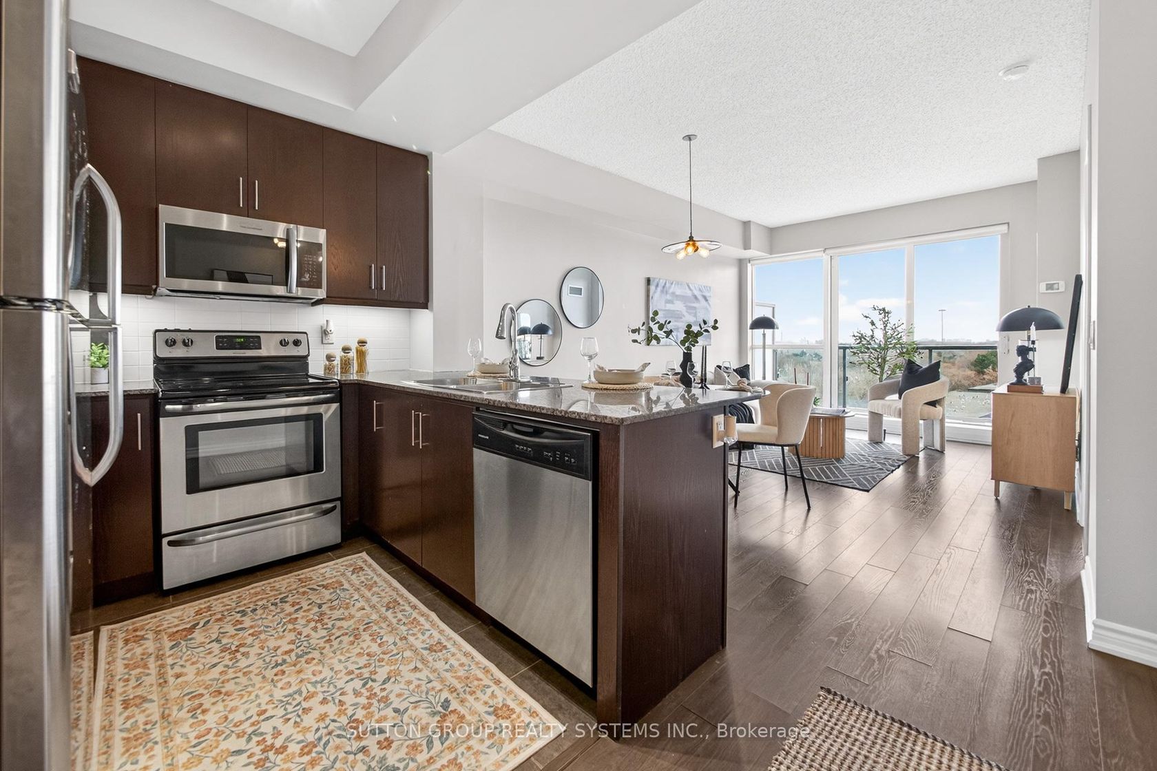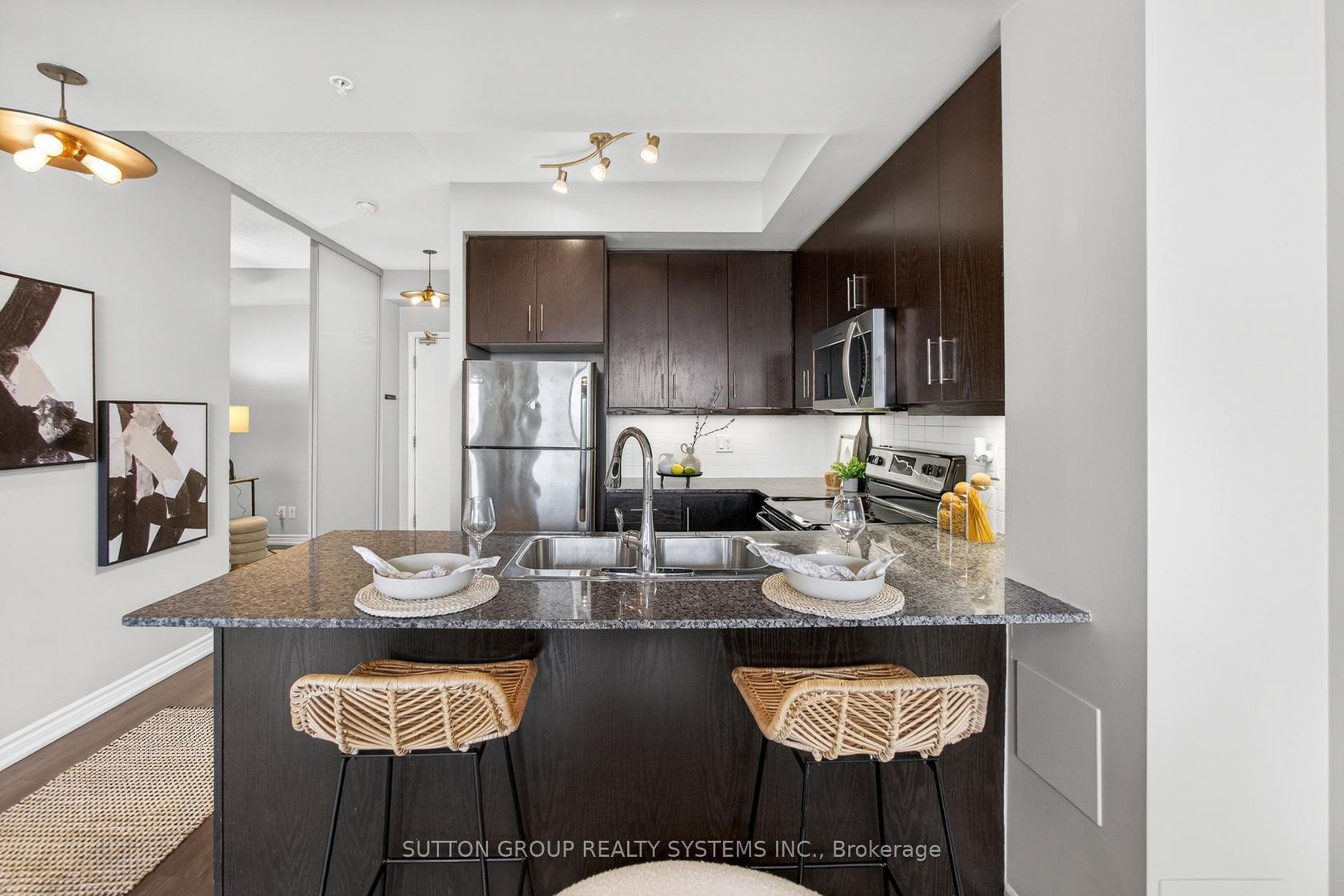 Rare Find - Sun-Drenched 1+Den with 2 Full Baths & Breathtaking CN Tower Views! Step into this meticulously maintained, one-of-a-kind suite offering 670 SqFt of sophisticated carpet-free interior living space plus 105 SqFt of private covered balcony. Nestled in one of Toronto's most sought-after vibrant neighborhoods, this unit defines "open-concept" living featuring a Rare Two-Full-Bathroom configuration-perfect for guests or a roommate. Be inspired by the seamless flow, neutral designer palette, & Grand-scale windows that flood the Condo with natural light. Designed for the culinary enthusiast, the kitchen boasts premium granite countertops, stainless steel appliances and extensive taller cabinetry providing a wealth of storage without compromising on style and a versatile breakfast bar perfect for morning coffee or evening entertaining. Experience boundless views from the primary bedroom, where massive architectural windows turn the Toronto skyline into your personal backdrop. Maximize your productivity in the oversized den with seamless glass partitions which serves as a premier executive home office, offering a private, quiet workspace without sacrificing the suite's open and airy aesthetic.Step out onto your private, covered oasis to soak in the iconic Toronto skyline, where uninterrupted vistas of the CN Tower provide a breathtaking backdrop for your evening glass of wine. Surrounded by elite dining, seamless transit, and boutique shopping, this home offers the pinnacle of urban living. From the vibrant energy of the street to your private sanctuary above, this is truly A Must-See Property.