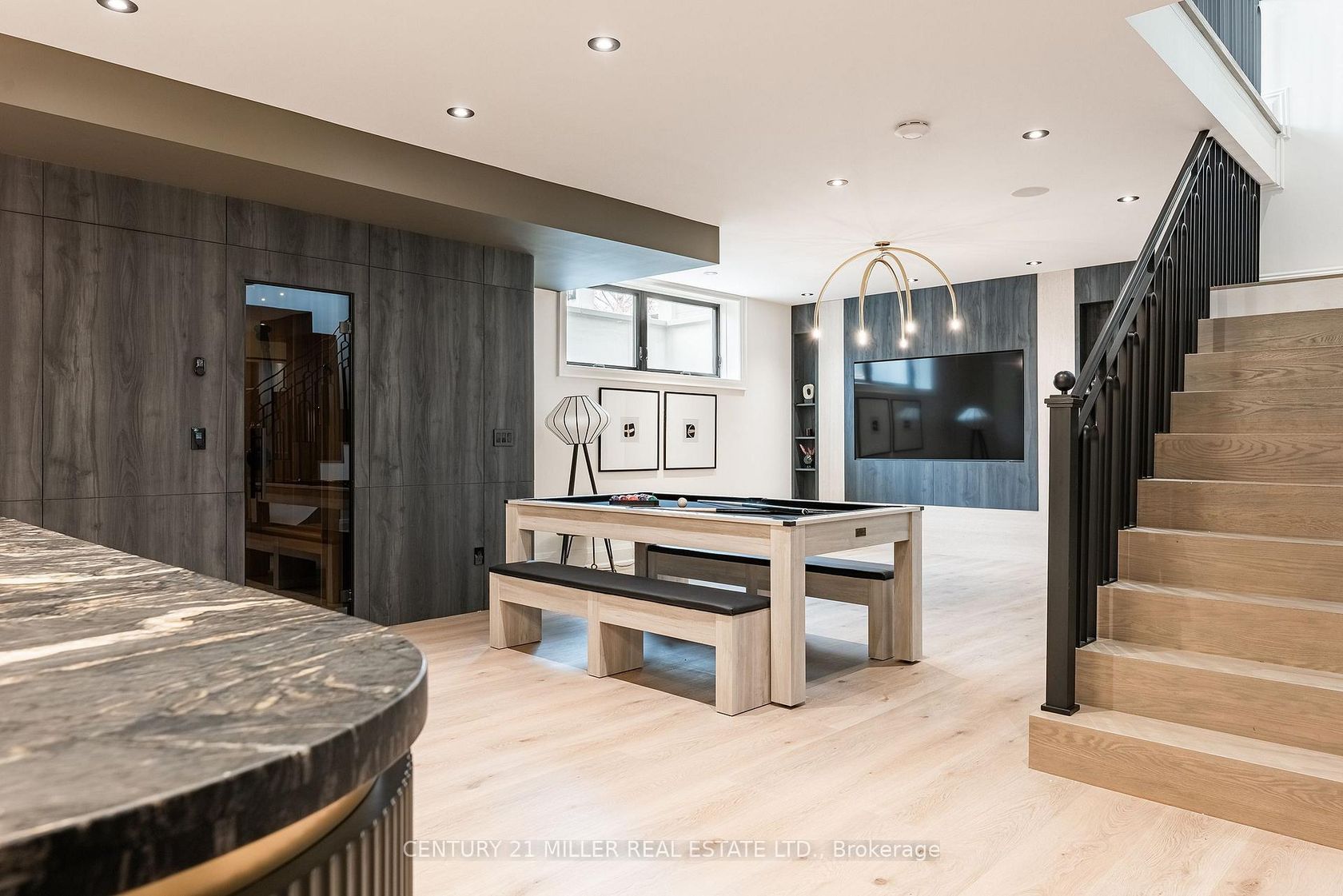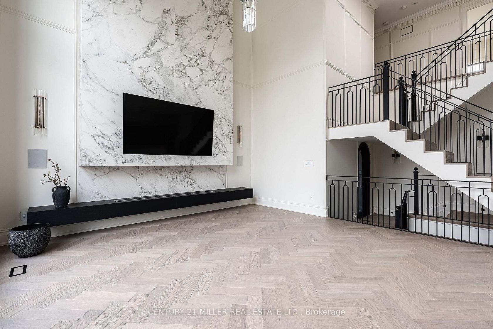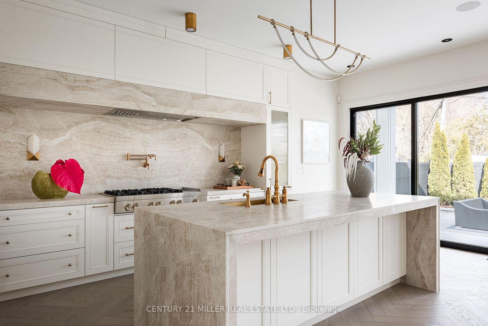 Stunning home upgraded and finished to the highest level, with French Chateau-inspired curb appeal and landscaped grounds. Luxurious finishes and attention to detail throughout. Big, bright windows, custom cabinetry, wall paneling and mouldings, curated stone and tile selections, hardwood herringbone flooring, integrated vents, and a skylight over the central staircase. Interior design by Mia Coroza. Landscaping by Kanawi Landscaping, with top trades from across the GTA. Mirage engineered oak flooring in herringbone. Red oak stairs with wrought iron railings by Deluxe Stairs. A beautifully appointed kitchen features leathered Taj Mahal natural stone quartzite countertops and island. Walk through the servery with walk-in pantry to the dining room with a built-in wine rack. The two-storey great room offers massive windows, a matte porcelain fireplace surround, and a custom ethanol fireplace. A stylish office includes French door entry, built-in wall unit, and sconces. All four bedrooms feature private ensuites. The primary suite includes a fireplace, walk-in closet with custom organizers, and an ensuite with heated floors, designer plumbing fixtures, stand-alone tub, and dual sinks. A laundry room is equipped with LG front-load washer and dryer. Each additional bedroom offers its own design, with closets featuring sensor lighting. Nine-foot ceilings and large window wells enhance the lower level. A bar area features leathered Titanium Gold natural stone quartzite countertops. The home theatre is positioned beneath the garage. Additional spaces include a home gym with custom mats, fifth bedroom, three-piece bath with curbless shower, and rec room. White cedar sauna completes the level. Walk out from the kitchen to a covered porch overlooking grounds inspired by a European garden, with fountains finished in exterior porcelain, landscape lighting, and a cabana with water and gas roughed-in. Aluminum composite fencing and a walk-up from the basement complete this setting.