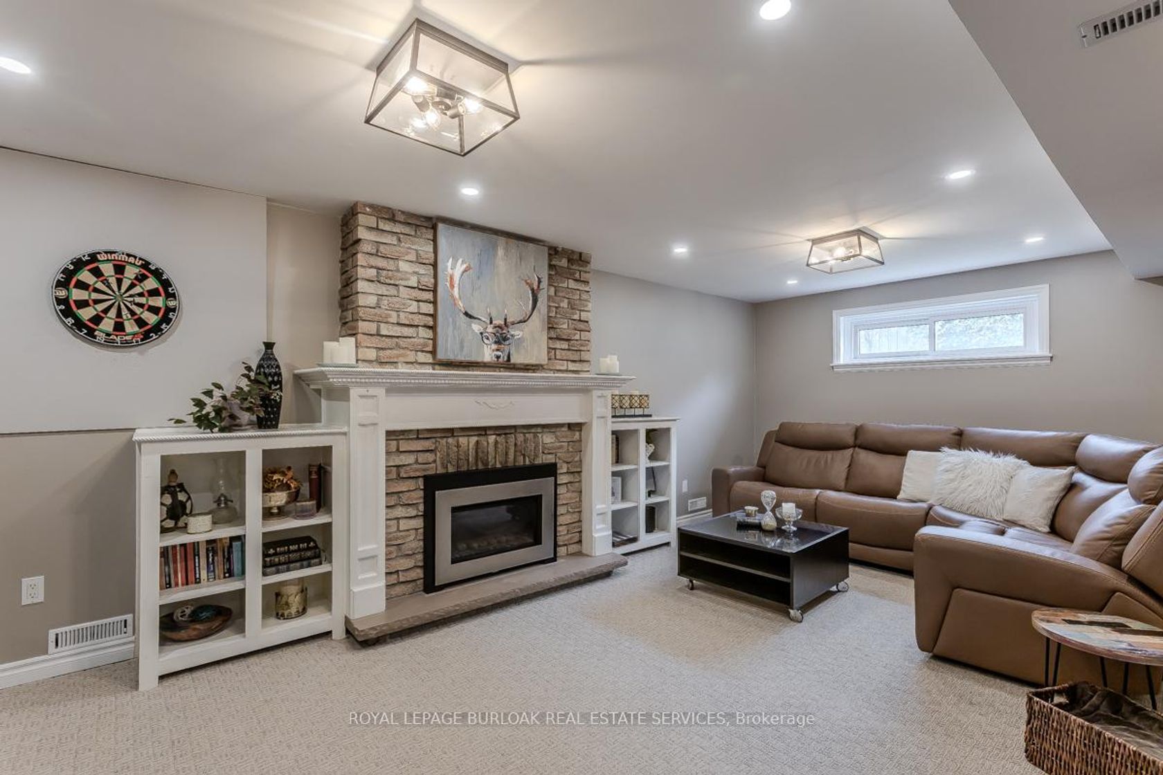 Welcome to this beautifully updated turnkey family home with standout curb appeal featuring a stone façade and stamped concrete walkway. Step inside to a spacious, light-filled interior with elegant and luxurious renovations at every turn. The open concept main floor welcomes you home with a gorgeous hardwood staircase and a formal dining room overlooking a huge sunken living room with a walkout to the backyard-perfect spaces for everyday living and entertaining family gatherings. The modern eat-in kitchen is designed with both style and function in mind, featuring granite countertops, soft close drawers, stainless steel appliances including gas range, a sleek tile backsplash and built-in wine storage. A convenient mudroom with built-in cabinets provides direct access to the 1.5-car garage, which accommodates one full-size vehicle and offers ample extra space for bikes, lawn accessories, workshop tools and more. Upstairs, the spacious primary retreat includes dual closets and a beautifully renovated 4-piece ensuite bath. Two additional well-sized bedrooms and a full 4-piece bathroom provide plenty of room for growing families. All bedrooms feature California shutters, upgraded baseboards and gleaming hardwood floors. The finished lower level expands your living space with a large recreation room anchored by a cozy brick-surround gas fireplace, above grade windows, an additional bedroom (no closet), a 2-piece bath, utility/laundry and crawl space rooms for storage. Step outside to your private, fully fenced backyard oasis complete with landscaped patio, BBQ gas hookup, mature trees and green space for kids and pets to enjoy. The gentle steps between levels make this 3-level backsplit the ultimate bungalow alternative. Offering a perfect blend of comfort, and style this home is designed for modern family living. Ideally located close to top-rated schools, parks, amenities, transit and shopping.