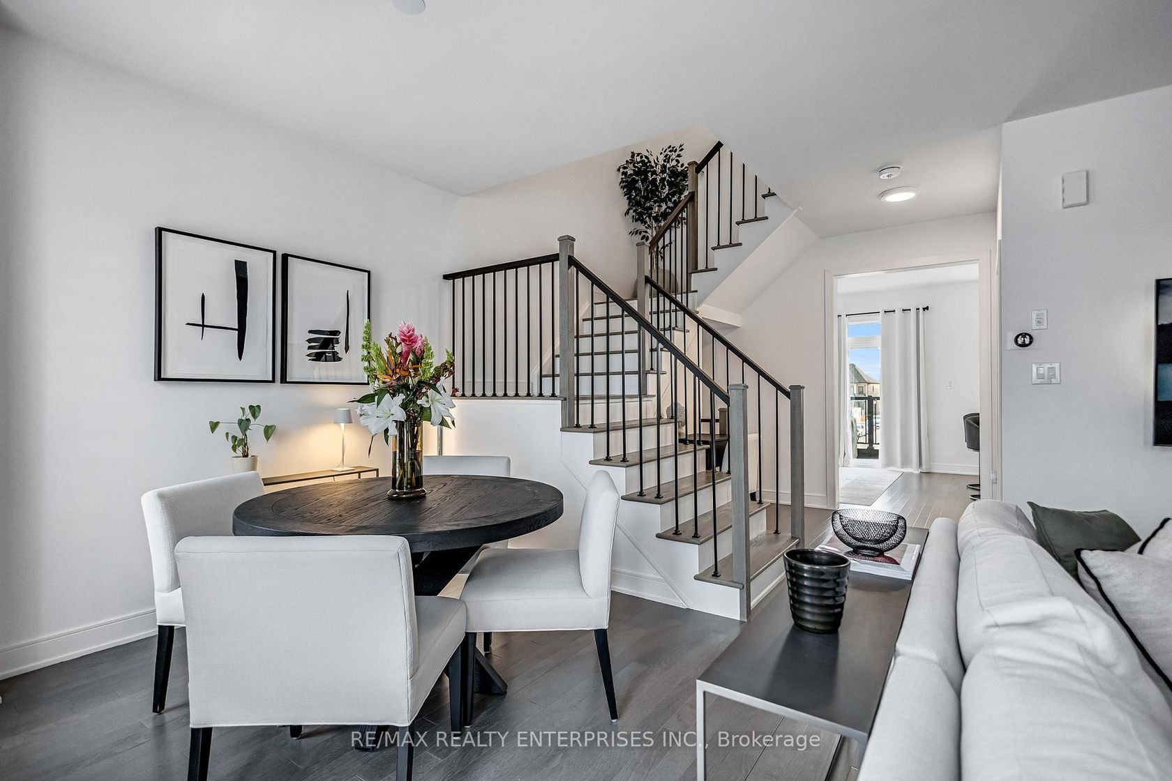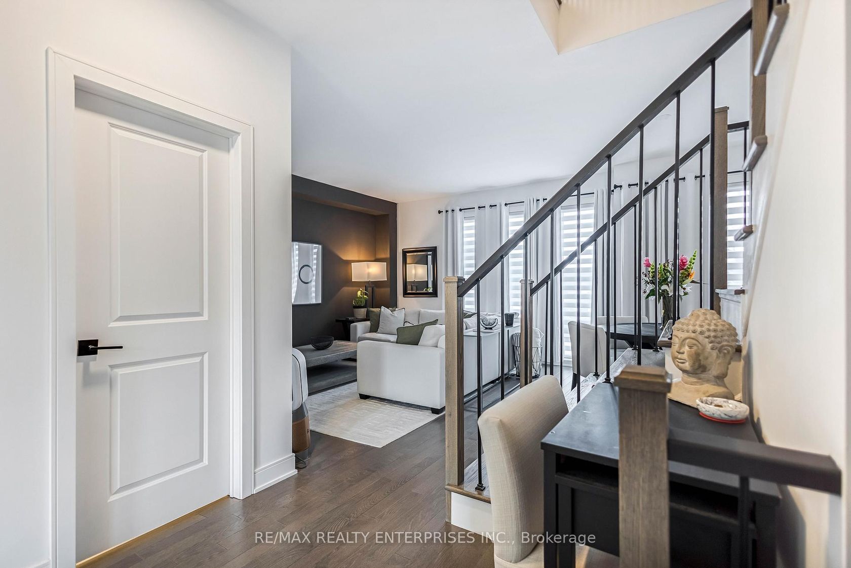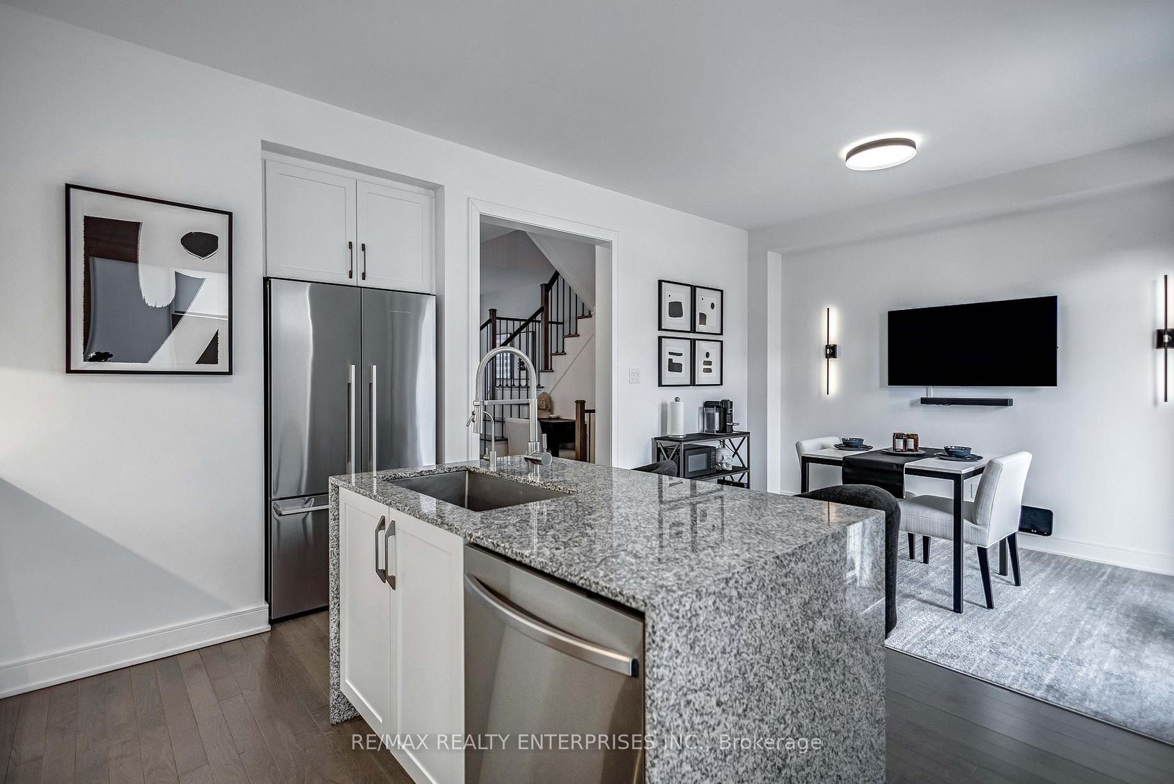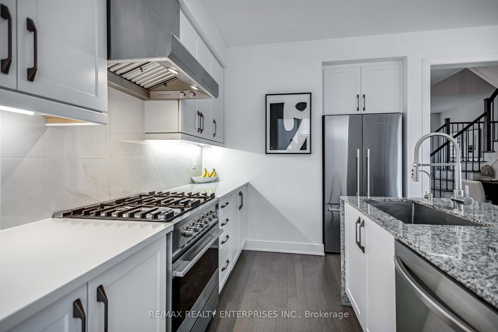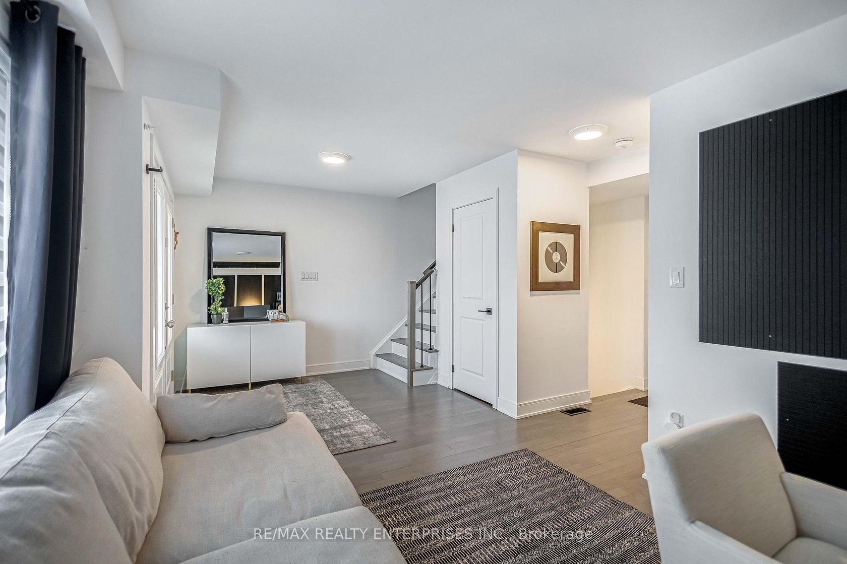 This beautifully upgraded 3+1 bedroom home offers a seamless blend of modern design and refined, high-end finishes throughout. The gourmet kitchen is equipped with premium Fisher & Paykel appliances, featuring a commercial-grade hood fan and a striking waterfall island that serves as both a functional workspace and a sophisticated focal point. The main living areas showcase smooth ceilings and elegant engineered hardwood flooring, creating a cohesive and elevated feel. The three bedrooms offer plush carpeting for added comfort, while the additional lower-level bedroom provides flexibility for guests, a home office, or extended family living. Three well-appointed bathrooms are finished with granite countertops and upgraded fixtures. A custom iron staircase adds a distinctive architectural touch, complemented by matte black hardware throughout for a clean, contemporary look. Additional highlights include custom closet cabinetry, upgraded baseboards and trim, and energy-efficient LED lighting throughout. The home is complete with Samsung washer and dryer units and a basement with a cold cellar, offering added storage and versatility. A truly turn-key residence, thoughtfully designed with exceptional attention to detail.