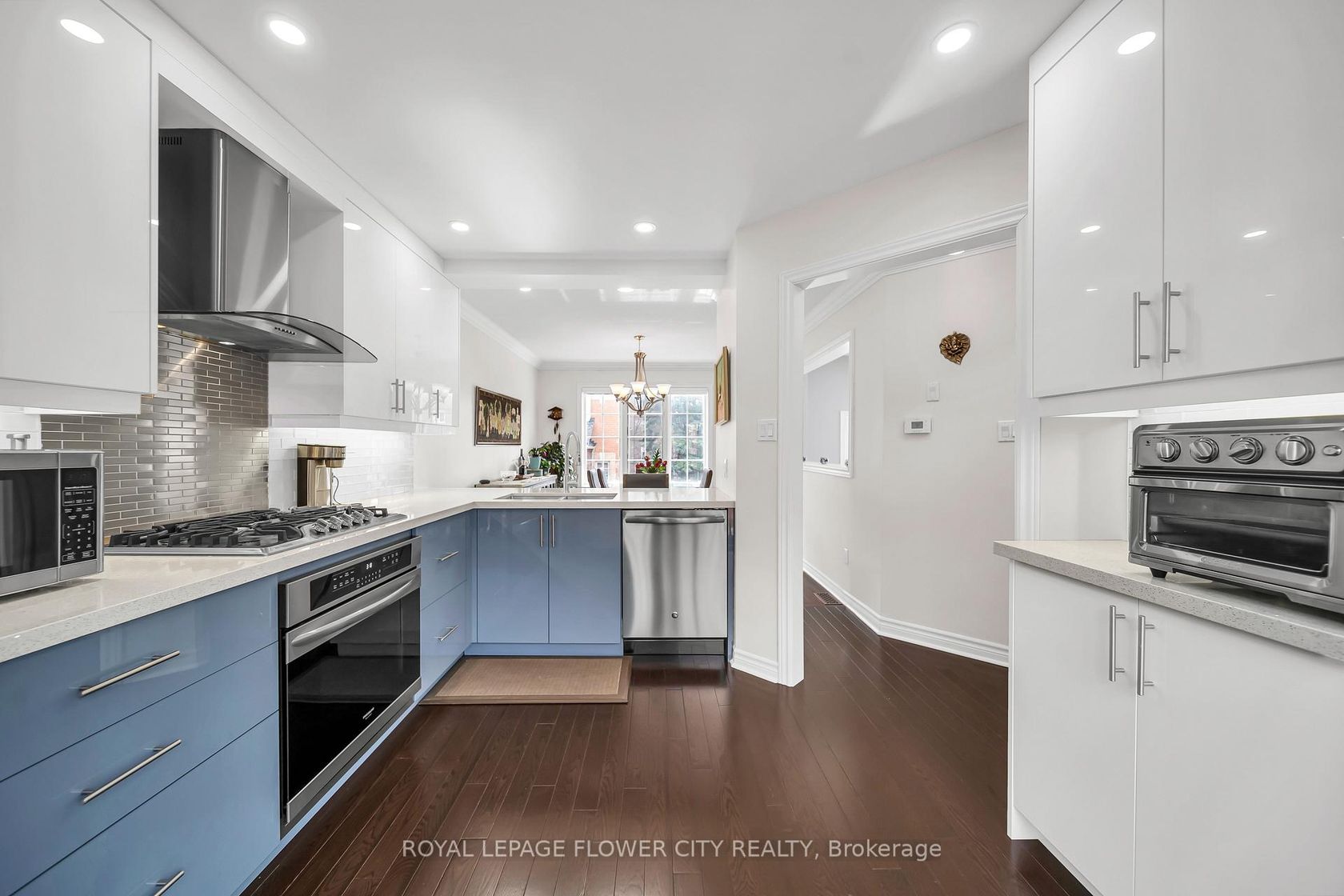 Experience elevated living in this stunning, fully upgraded residence in the heart of Mississauga, nestled within the sought-after East Credit community.This beautifully redesigned 2-bedroom, 2 full bathroom home offers approximately 1,200-1,399 sq ft of thoughtfully curated living space, combining modern sophistication with everyday functionality. Step into a bright and airy main living area highlighted by soaring ceilings and an abundance of natural light-creating an impressive and inviting atmosphere. The showpiece kitchen has been fully renovated with contemporary finishes, featuring quartz countertops, sleek cabinetry, stylish backsplash, and premium built-in appliances-perfect for both entertaining and daily living. The open-concept dining area seamlessly overlooks the kitchen, offering a refined space to host and gather. Upstairs, retreat to two spacious bedrooms, each complemented by fully renovated spa-inspired bathrooms, including a luxurious primary suite with a walk-in closet and elegant ensuite. Every detail has been meticulously upgraded to deliver a turnkey, designer living experience. The home also features a versatile lower-level recreation space with a cozy fireplace-ideal as a media room, home office, or guest suite-adding both comfort and flexibility to the layout. Enjoy multiple outdoor living spaces, perfect for relaxing or entertaining, along with the convenience of private parking and a well-managed community. Ideally located just minutes from top-rated schools, parks, shopping, transit, and major highways, this home offers the perfect balance of luxury, lifestyle, and connectivity. A rare opportunity to own a fully renovated, move-in-ready home in one of Mississauga's most desirable neighbourhoods.