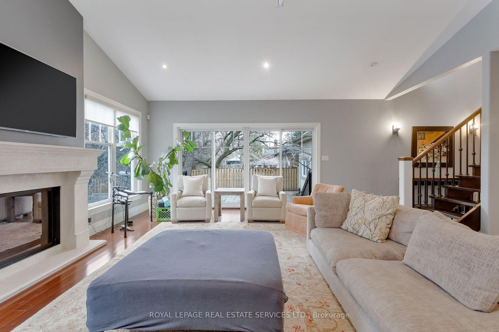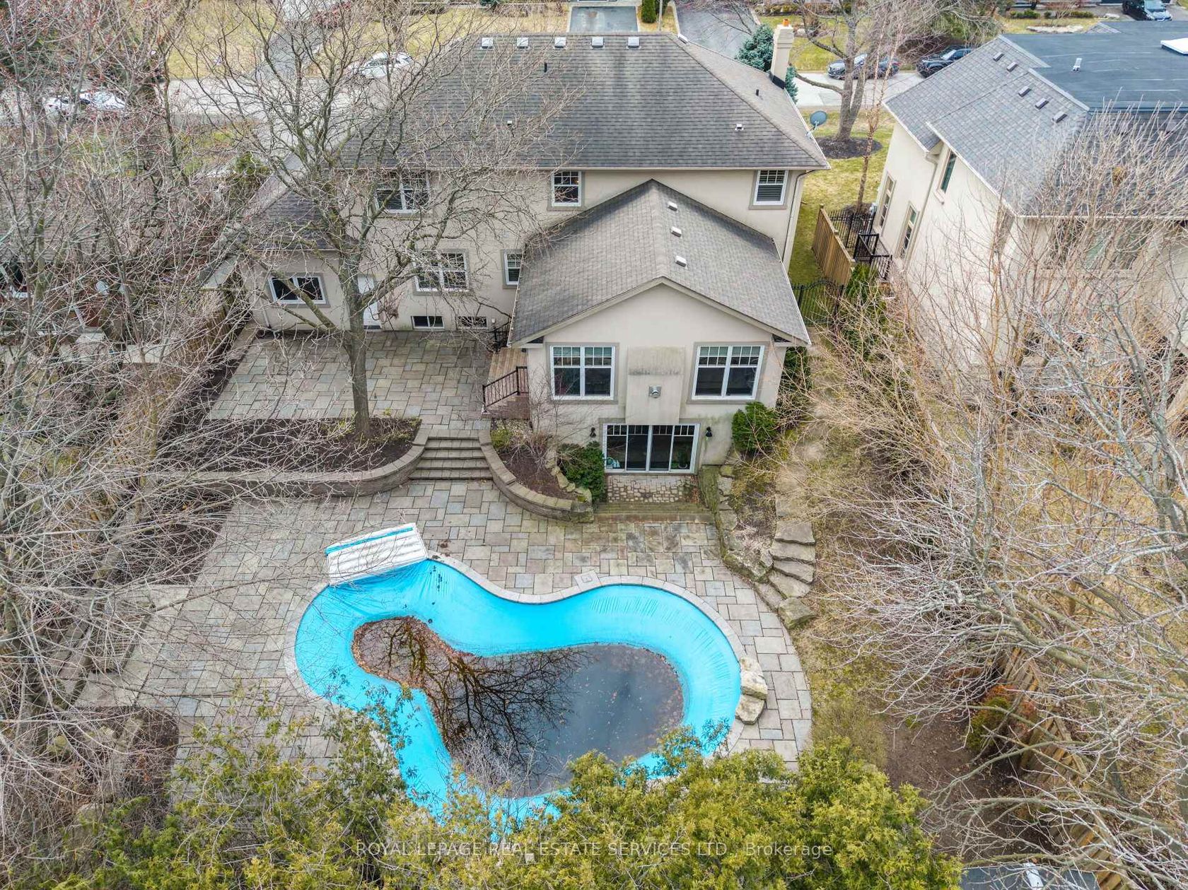 Welcome to this exceptional upscale residence set on a sprawling 75 x 150 ft lot in prestigious Coronation Park. A 10-minute walk to Coronation Park on Lake Ontario and minutes to Bronte Harbour and Village, Oakville Harbour and downtown Oakville, for upscale shopping and restaurants. A 5-minute drive to the QEW and Bronte GO Station for commuters. Showcasing outstanding curb appeal with a stucco and stone façade, deluxe mouldings, professional landscaping, a stone walkway, covered flagstone porch and an extra-long driveway to a triple (tandem) garage, the home transitions seamlessly to a private backyard oasis-an entertainer's dream with upgraded stone patios, a custom saltwater pool with armour stone waterfall, lush gardens, multiple seating areas and ultimate privacy with mature trees. Offering 4 spacious bedrooms, 3.5 bathrooms and a professionally finished walk-up basement, the interior exudes refined craftsmanship with exotic hardwood floors, smooth ceilings, rounded drywall corners, crown mouldings, custom cabinetry, an impressive floating staircase, and abundant natural light. Highlights include a grand dining room, a dramatic family room with a cathedral ceiling, a gas fireplace and walkout, a private office, and a chef's kitchen with custom cabinetry, granite counters, an oversized island and premium Viking appliances. Upstairs features four generous bedrooms and two lavish bathrooms, including the primary retreat with a spa-inspired ensuite offering a jetted tub and a glass shower. The walk-up basement impresses with a large recreation room, a games room with a fireplace, a media lounge, and a 3-piece bath-perfect for family living and entertaining.