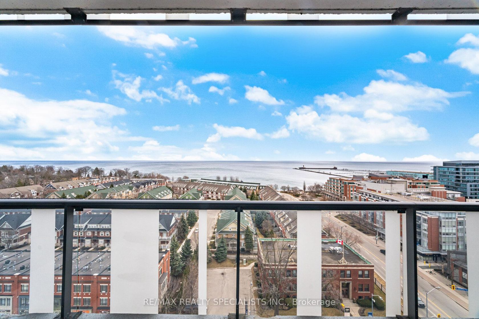Stunning southeast-facing Lake unobstructed views. Large 2 bedroom plus den residence at the iconic 1 Hurontario, offering 1,479 sq. ft. of bright living space including 155 sq. ft. of balcony space with breathtaking lake and skyline views. Floor to ceiling, wall to wall windows and 9 foot ceilings fill the home with natural light and showcase unobstructed views of Lake Ontario, the Toronto skyline, and Port Credit Marina. The spacious layout features a large eat-in kitchen with granite counters, an oversized breakfast bar, extensive pantry wall, and open sightlines over the living and dining areas, perfect for everyday living and entertaining. Both bedrooms are generously sized, including a private primary retreat with its own ensuite bath. A separate den offers ideal flexibility for a home office, reading room, or guest space. Enjoy two balconies, one with south views over Lake Ontario and the marina, and the other with stunning east views toward the Toronto skyline. This luxury building offers excellent amenities including a gym, party room, library, lounge areas, and BBQ terrace. Ideally located minutes to Port Credit Village, the waterfront, GO Station, transit, the future LRT, QEW, Lakeview Golf Course, marinas, Sherway Gardens, excellent schools, and the exciting upcoming Lakeview Village.