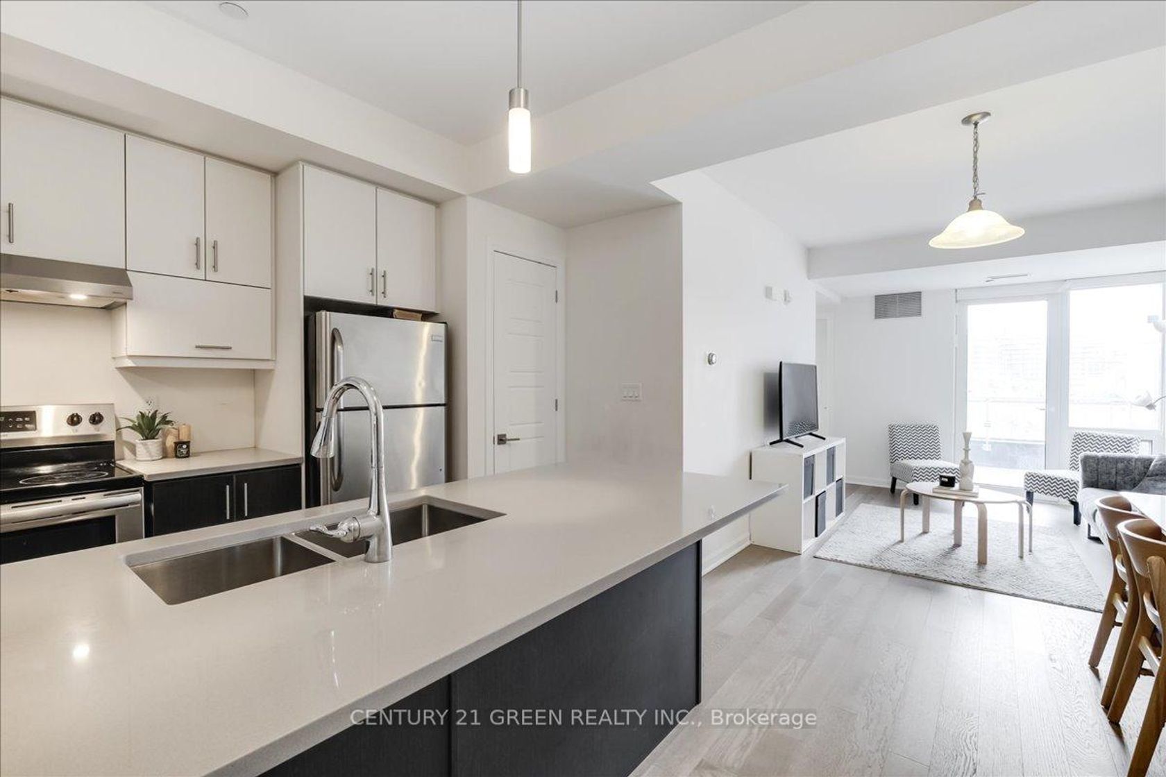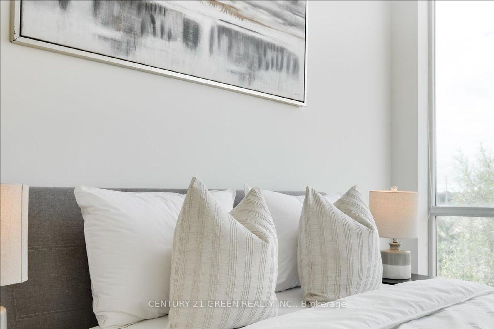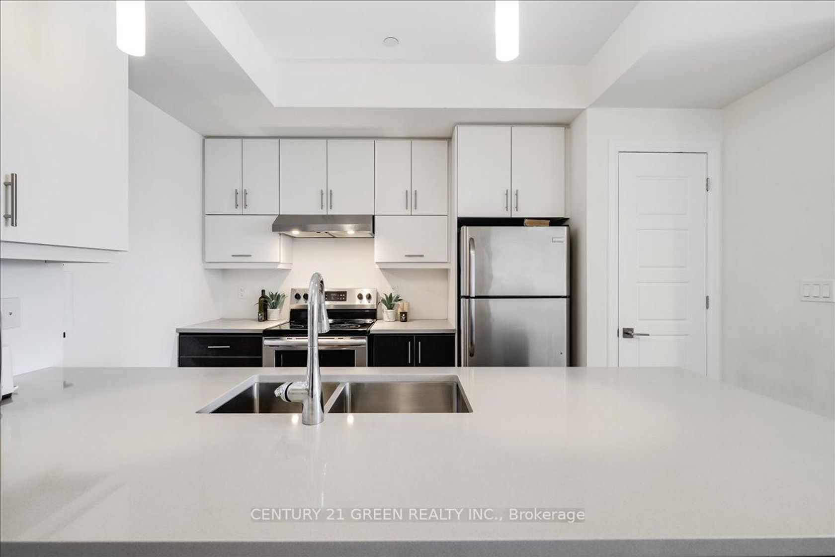 Gorgeous 2 bed 1 bath condo with a stunning pond view nested in Oakville. Featuring floor to ceiling windows with custom shades thru-out. Open concept living space with 9' ceiling, modern kitchen offers quartz kitchen counters with flush breakfast bar and stainless steel appliances. Bathroom with marble cultured countertop. Living room with walk out to private patio. Primary bedroom with walk-in closet. 2nd bedroom with direct access to large outdoor patio (397 sf). The building includes lots of amenities such as a beautifully decorated lobby, gym, rooftop BBQ patio, party room and pet spa. Close to all amenities.