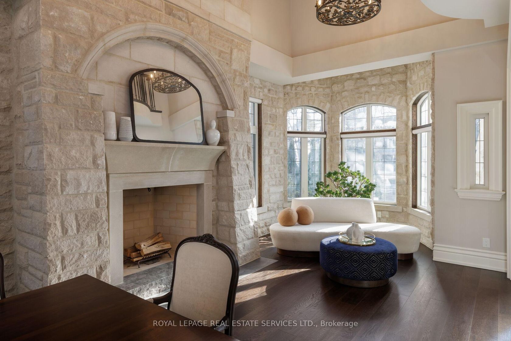 Your castle awaits in Lorne Park, one of Mississauga's most prestigious lakeside communities, celebrated for its mature tree-lined streets, oversized lots, top-rated schools & seamless access to Toronto via the QEW & Clarkson GO. This extraordinary Medieval-inspired residence offers 4 bedrooms & 6 bathrooms, & an incredibly finished walk-up basement on a rare 79.25 x 274.83 ft lot, blending timeless Old-World architecture-steep rooflines, a striking stone turret, an arched entry & a stained-glass embellished entrance door-with modern luxury & functionality. The resort-style backyard is a private oasis featuring an in-ground saltwater pool with a new heater (2024), hot tub, mature trees, a covered stone terrace with a built-in natural gas BBQ, plus a custom hydro-equipped shed. Inside, artisan-crafted details abound, including stone feature walls, cathedral ceilings, wrought iron chandeliers, arched doorways & wide-plank engineered hardwood, complemented by modern comforts such as heated floors, 3 fireplaces, Sonos indoor/outdoor audio, custom Hunter Douglas blinds & extensive pot lighting. The main level impresses with a grand 2-storey living/dining room with a fireplace, a designer custom kitchen with premium Thermador & Gaggenau appliances, a breakfast room with a walkout, a family room with coffered ceilings & a fireplace, & a private office with custom cabinetry. Upstairs offers 4 spacious bedrooms, 3 elegant baths & a laundry room, while the walk-up lower level is designed for entertaining, along with wine tasting, fitness & spa/sauna spaces. The home offers a recently added hot tub, 3 upgraded electrical panels, upgraded alarm for heat detectors in garage, kitchen and mechanical room, & the garage has recently been fitted with a rough-in for a car charger & a rough-in for a future generator. Steps to a neighbourhood plaza, & minutes to Clarkson Village, parks & Lake Ontario, this one-of-a-kind estate delivers luxury, privacy & an unparalleled lifestyle.