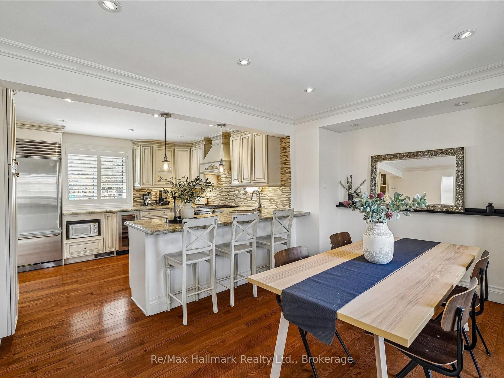 Nestled in the heart of prestigious Morrison, this fabulous bright open-concept bungalow sits on an exceptional 0.35-acre premium lot backing onto tranquil Morrison Creek and fronting onto Lawson Park-offering a rare "Muskoka-like" setting just moments from downtown Oakville, Gairloch Gardens, and the lake. This beautifully maintained 3+2 bedroom residence features a spacious living room with a wood burning fireplace and an effortless flow into the dining area, where a walkout leads to a private balcony overlooking lush gardens and an inviting in-ground swimming pool. The gourmet kitchen is equipped with premium Sub-Zero refrigeration, Sub-Zero wine fridge, and a Wolf gas stove-perfect for both everyday living and entertaining. The primary suite offers a renovated ensuite, while California shutters throughout enhance both elegance and privacy. Newly upgraded broadloom flooring extends through the bedrooms and into the fully finished lower level, which features a large recreation room with gas fireplace, two additional bedrooms (or office/den), a self-contained kitchen, laundry, and a 3-piece bath with heated floors-ideal for an in-law or nanny suite. A tiled walkout provides seamless access to the backyard oasis. An extra-long, updated asphalt driveway accommodates parking for 8+ vehicles. Located within a top-tier school district and directly across from a park, this rare offering combines natural beauty, luxury, and convenience in one of Oakville's most sought-after neighbourhoods.