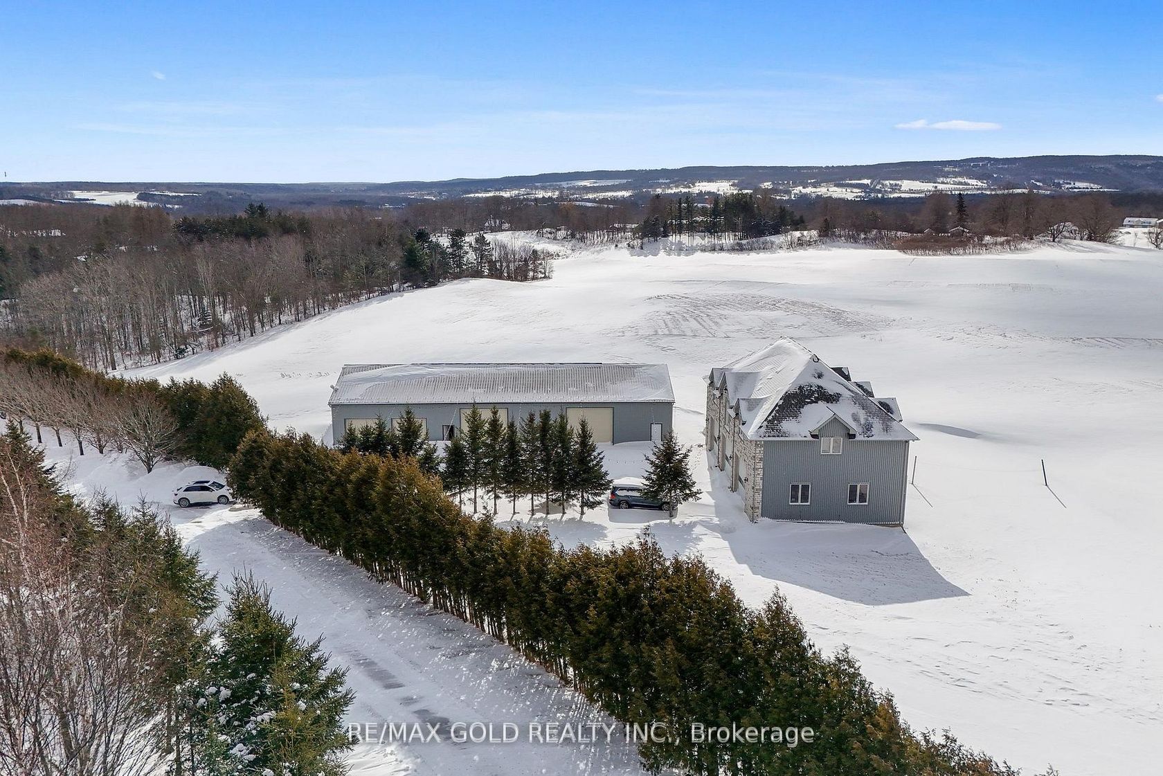 Welcome to 3722 The Grange Side Road, an exceptional 84-acre country estate offering a rare blend of privacy, natural beauty, and outstanding versatility. A long, tree-lined drivewaywinds through picturesque farmland, leading to an impressive natural stone bungalow perfectlypositioned to capture sweeping rural views.The property comprises approximately 84 acres, including about 55 workable acres of gentlyrolling land, complemented by a tranquil pond near the entrance. This setting is ideal foragriculture, a home-based business, or multigenerational living.The main residence showcases quality craftsmanship with spacious, well-appointed interiors anda flexible layout offering three potential living areas, making it well suited for extendedfamily arrangements or adaptable use.A standout feature is the detached stone-fronted, steel-clad workshop/garage, complete withthree oversized 12-foot bay doors, a full four-piece bathroom, and an expansive 2,200 sq ftupper-level loft featuring three additional bedrooms and two bathrooms. An additional steelgarage with four oversized doors and a secondary workshop/shed further enhance the property'sfunctionality.Whether you are an entrepreneur seeking space for a business, a hobbyist requiring amplestorage, or a family looking for room to grow, this estate offers unmatched flexibility. Theland presents endless opportunities for farming, recreation, or future expansion.Set in a peaceful rural location while remaining within a convenient drive to nearby towns andamenities, this is a truly signature property that seamlessly combines natural beauty withpractical, adaptable living.