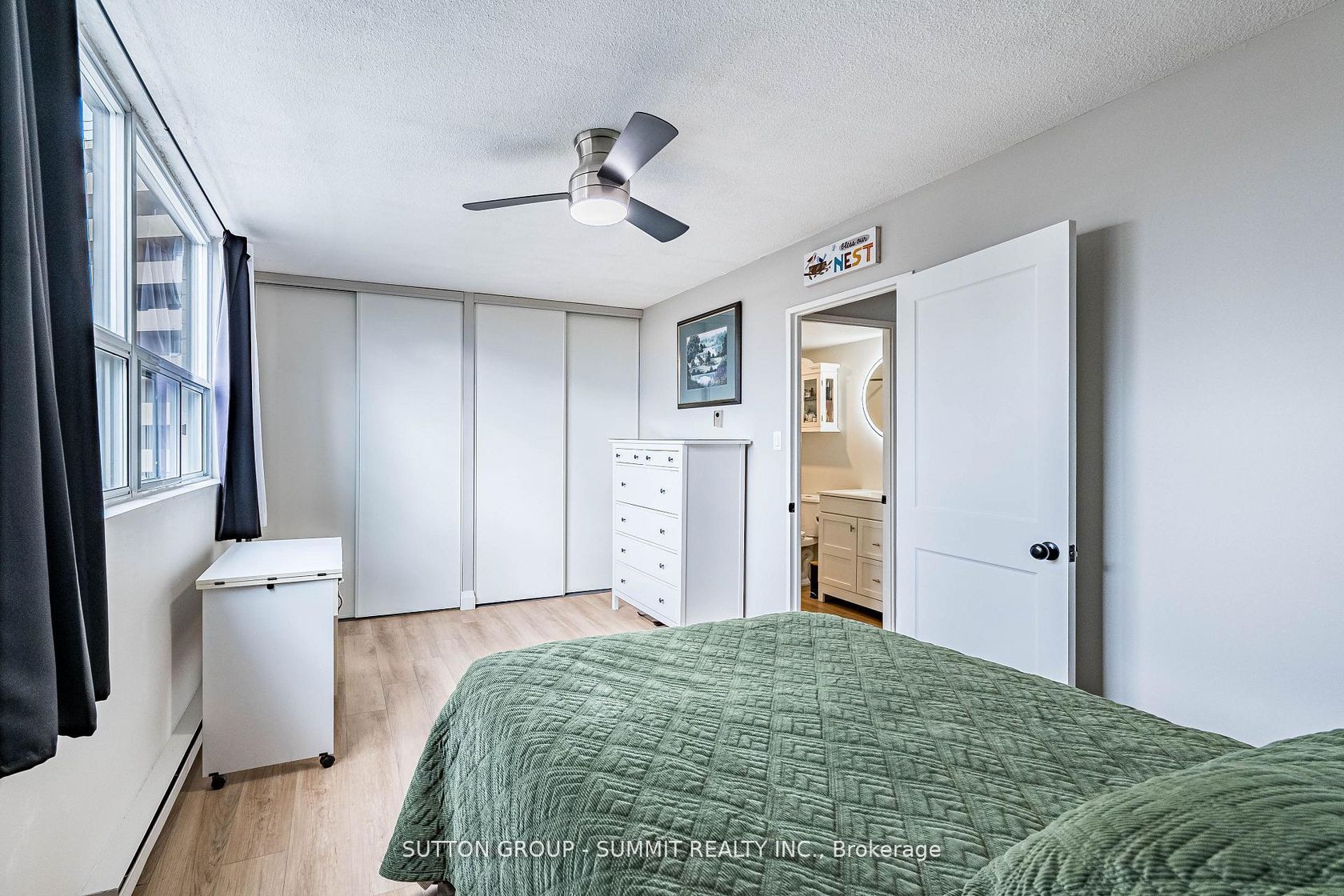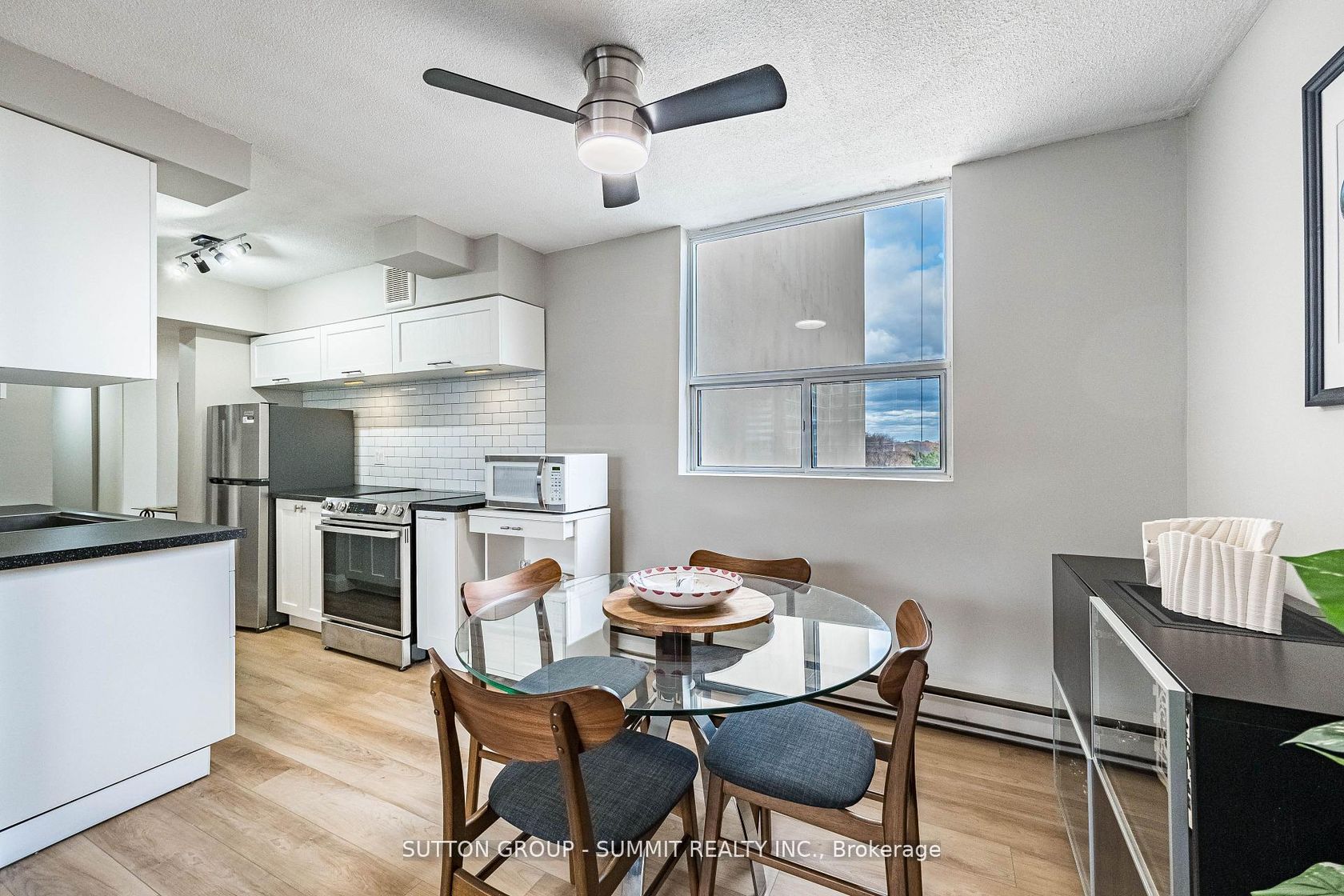Beautifully Renovated & Move-In Ready! Located in The Empress, one of Burlington's most sought-after condominium communities. This oversized 1-bedroom + den suite is the largestone-bedroom layout in the building, offering over 1,000 sq. ft. of bright, open living space with east and west exposures - perfect for enjoying both sunrise and sunset views. Completely renovated in 2023-2024, this suite features new flooring and baseboards throughout, freshly painted walls and ceilings, new doors, modern light fixtures, and ceiling fans. The custom kitchen shines with sleek cabinetry, extended counter space, and stainless steel appliances -ideal for cooking and entertaining. The updated bathroom offers a new tub, toilet, vanity, and elegant touch-light mirror for a spa-like feel. The bright living and dining area opens to a large private balcony, perfect for relaxing outdoors. The spacious bedroom includes two large double closets, while the versatile den is ideal for a home office. In-suite laundry and one underground parking space complete this exceptional home. Building Amenities include: 24-hour concierge, outdoor pool, fitness centre, sauna, party room, library, car wash bay, workshop, barbecues, EV charging station, and ample visitor parking. Enjoy comfort, security, and convenience just steps from shopping, dining, transit, and the Burlington Centre Mall.