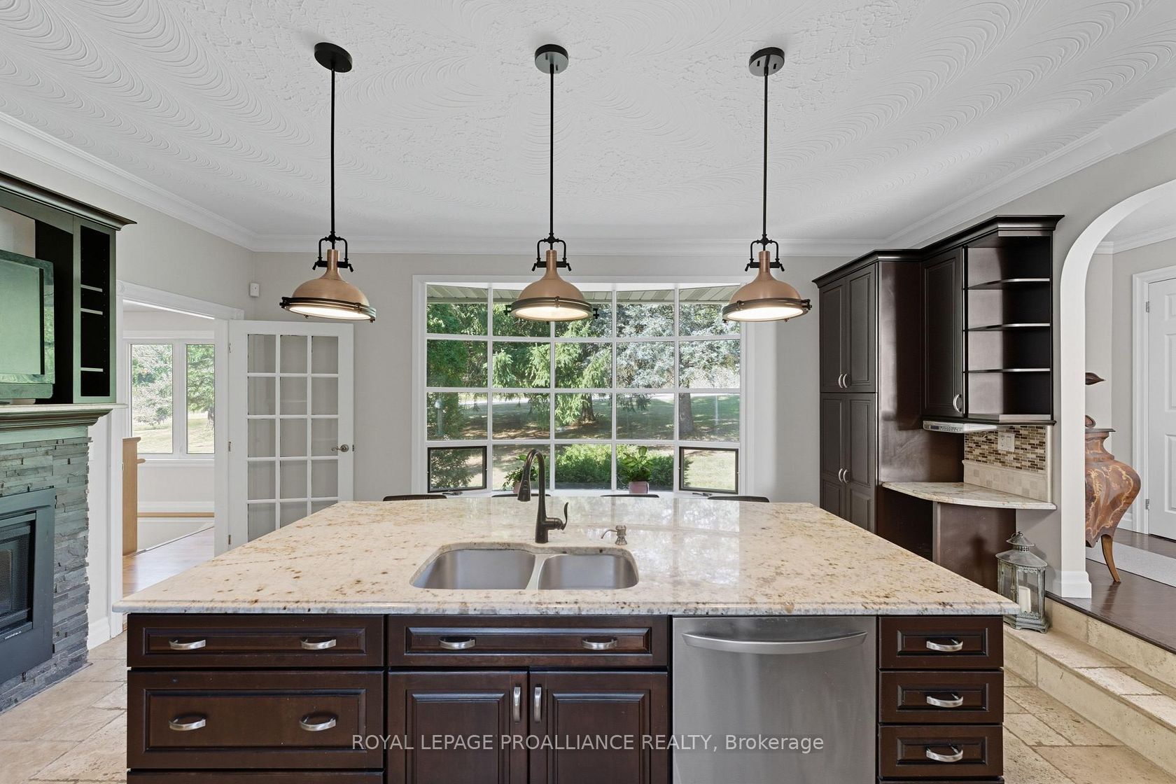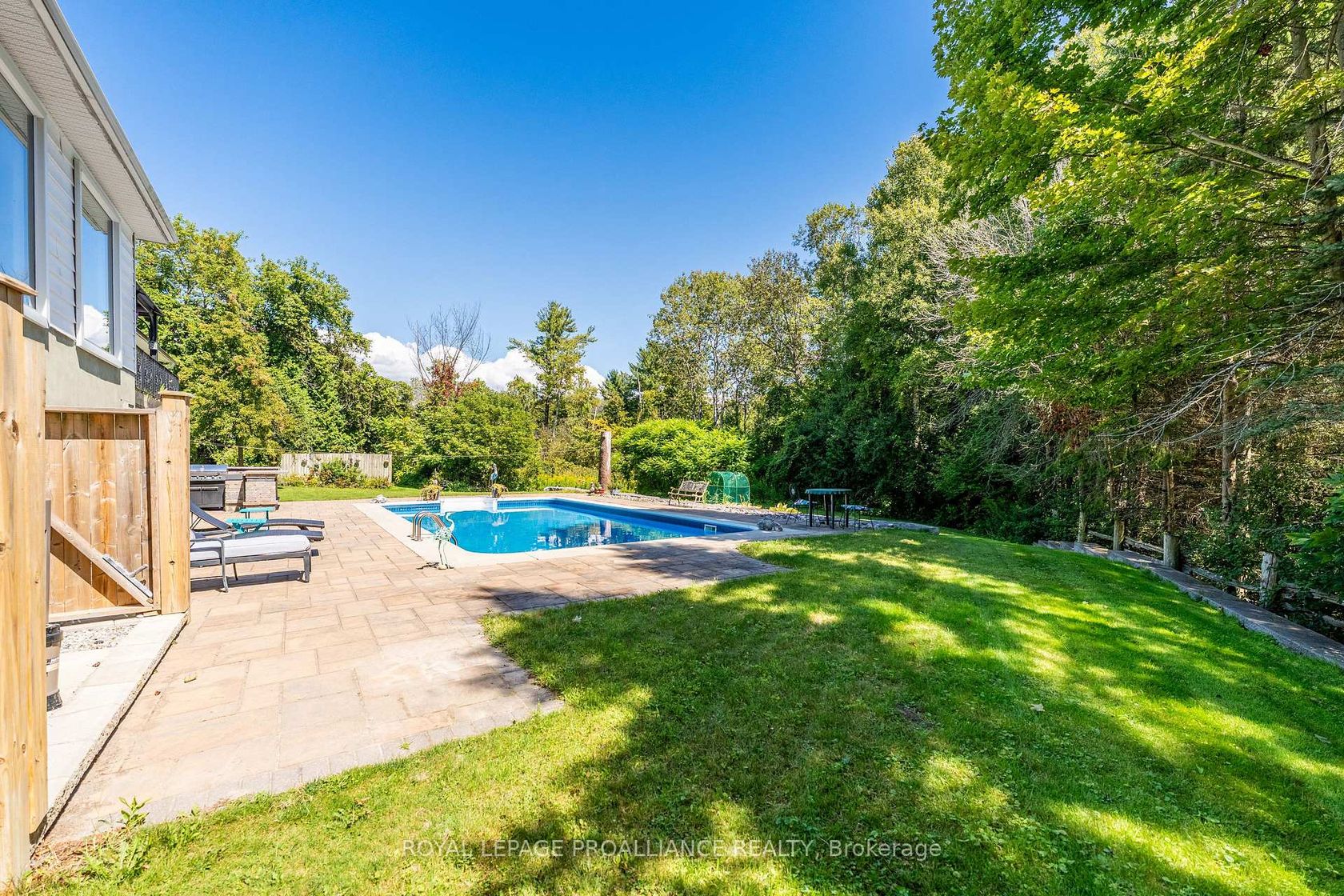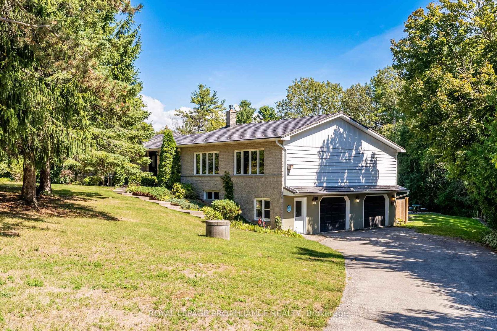 This extraordinary 2,584 sq. ft. bungalow is set on a private 1.87-acre lot, offering a rare combination of space, elegance, and lifestyle. The backyard is a true oasis with an inground pool, hot tub, interlock stone patio, Armour stone accents, and an outdoor kitchen an entertainers dream. A winding trail takes you through the trees to a charming bridge over a creek and a sunlit clearing, perfect for gatherings or quiet escapes. Inside, the home showcases high-end finishes including hardwood and travertine flooring, crown moulding, and a thoughtfully designed open layout. At its heart, the gourmet kitchen features a centre island, granite counters, upgraded cabinetry, stainless steel appliances, and a cozy gas fireplace. Sunlight streams through large windows, with a patio door that opens to the deck overlooking the pool and wooded backdrop. Seamlessly connected to the kitchen, the expansive family and dining area offers vaulted ceilings, floor-to-ceiling windows, and a second gas fireplace. This impressive space is ideal for entertaining while maintaining a warm and inviting feel. The bedroom wing includes three generously sized bedrooms and two updated 4-piece baths, each with luxurious finishes. The lower level adds exceptional versatility with a bright living room and walkout to the pool, an additional bedroom, large rec room, office nook, laundry room, and space for a future kitchenette perfect for an in-law suite or multi-generational living. A rare offering that blends elegance, functionality, and resort-style living, this property is truly a must-see.