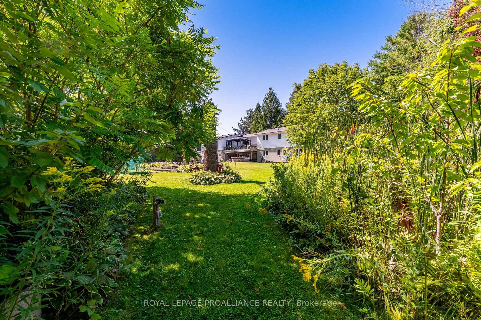 This extraordinary 2,584 sq. ft. bungalow is set on a private 1.87-acre lot, offering a rare combination of space, elegance, and lifestyle. The backyard is a true oasis with an inground pool, hot tub, interlock stone patio, Armour stone accents, and an outdoor kitchen an entertainers dream. A winding trail takes you through the trees to a charming bridge over a creek and a sunlit clearing, perfect for gatherings or quiet escapes. Inside, the home showcases high-end finishes including hardwood and travertine flooring, crown moulding, and a thoughtfully designed open layout. At its heart, the gourmet kitchen features a centre island, granite counters, upgraded cabinetry, stainless steel appliances, and a cozy gas fireplace. Sunlight streams through large windows, with a patio door that opens to the deck overlooking the pool and wooded backdrop. Seamlessly connected to the kitchen, the expansive family and dining area offers vaulted ceilings, floor-to-ceiling windows, and a second gas fireplace. This impressive space is ideal for entertaining while maintaining a warm and inviting feel. The bedroom wing includes three generously sized bedrooms and two updated 4-piece baths, each with luxurious finishes. The lower level adds exceptional versatility with a bright living room and walkout to the pool, an additional bedroom, large rec room, office nook, laundry room, and space for a future kitchenette perfect for an in-law suite or multi-generational living. A rare offering that blends elegance, functionality, and resort-style living, this property is truly a must-see.