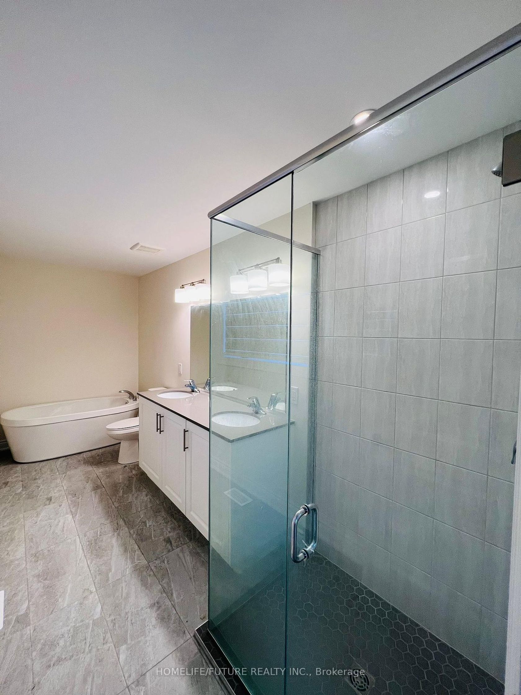 This Stunning Residence On A Premium Lot With A 48' Frontage. In The Highly Sought-After Lakeside Village, Just Steps From The Golf Course & Lake Ontario, Engineered Hardwood Floors, Quartz Countertops In All Washrooms, And Numerous Upgrades. Enjoy Spacious Living With A Modern Gas Fireplace, And A Bright Kitchen Featuring Quartz Countertop, Premium BOSCH Appliances, And A Breakfast Bar. Upstairs Find Two Primary Suites With Bathrooms And Walk-In Closets, Along With Two Additional Bedrooms. The Convenience Of Upper-Level Laundry Adds A Touch Of Ease To Daily Life.