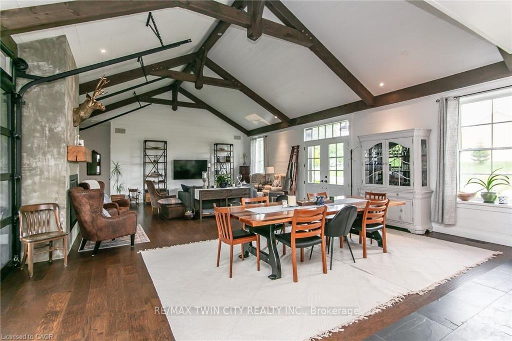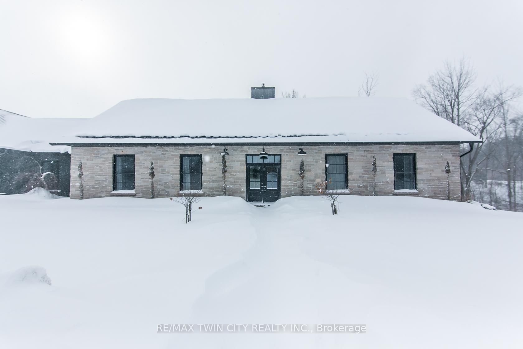 Spectacular Custom-Built Bungalow with Walk-out Basement, Triple Car Garage & Detached 2-Storey Garage & Shop on Two Acres-just 35-45 min from Waterloo! Nestled in an exclusive enclave of executive homes in Moorefield, this property offers a peaceful country setting with easy city access. Built like no other, it showcases structurally superior ICF (insulated concrete form) construction & a lifetime metal roof-the same quality extends to the det garage. Inside, the open-concept layout features exposed timber-frame details, soaring vaulted ceilings & 2 glass garage doors that open onto a 3-season porch.The kitchen, dining & living area impress w/ a stone f/p, concrete counters, oversized island & fantastic walk-in pantry w/ floor-to-ceiling storage. At its heart: an 8-burner Wolf gas stove, double ovens & upgraded range hood-over $40,000 in luxury appliances! Entertain year-round w/ the screened porch, complete w/ outdoor kitchen, brick hearth & fume hood for your bbq. The main floor also boasts a stunning primary suite w/ walk-in closet, spacious dressing rm & spa-inspired ensuite. A 2nd bedroom, currently an office, offers lovely treed views. A stylish mudrm, laundry rm & powder rm w/ live-edge barn door complete the main level. The fin w/o basement features heated floors, 2 bedrooms, 4-pc bath & expansive rec spaces-perfect for family gatherings or games night. 2 more w/o garage doors lead to the backyard & patio. For hobbyists, the 3-car gar is wired for an EV, while the sep insulated 2 storey wrkshp w/ electrical & wood stove provides endless options for projects, vehicles or gym. The nearly 2-acre property incl a pool-sized lot, new tiered deck, firepit area, treehouse & almost an acre of forest w/ a creek running through it. Your own private retreat!
