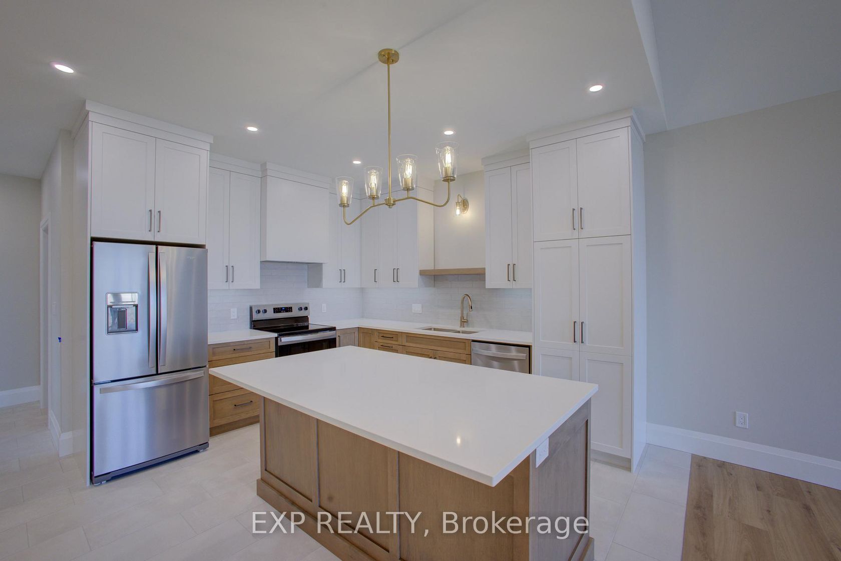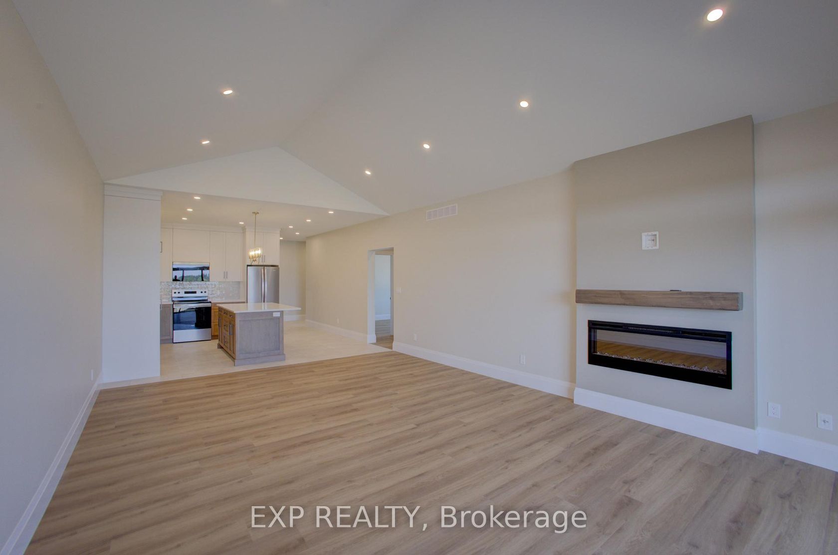 Downsize without compromise in this beautifully crafted end unit bungalow townhome by Duimering Homes, located at the quiet end of Bedell Drive in Drayton. This newly built home offers low maintenance living with elevated finishes throughout. The bright open concept layout features a vaulted great room ceiling, 9' ceilings, oversized windows, and an electric fireplace with wood mantle. The gourmet kitchen showcases quartz countertops, custom full height cabinetry, stainless steel appliances, and a large island overlooking the living and dining areas. Enjoy a covered rear patio with partial privacy fencing, two generous bedrooms including a primary suite with walk in closet and spa inspired ensuite, plus main floor laundry. Complete with a fully finished attached oversized single car garage and double wide paved driveway plus a lovely covered front porch. Quiet location offering refined single level living in a welcoming small town community in one of the most indemand neighbourhoods built by the premier local home builder.