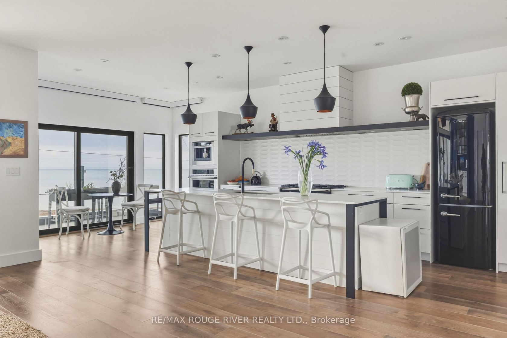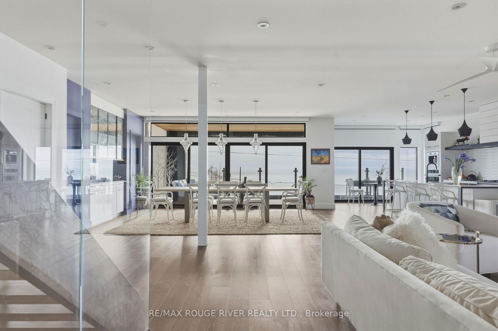 With uninterrupted turquoise views of Lake Ontario, this exceptional residence is set within one of Cobourg's most coveted waterfront enclaves. Inside, quality, scale, and versatility are evident throughout, executed by a renowned Toronto design-build firm.The self-contained main floor features a 2-bedroom, 2-bathroom suite with a private entrance, modern kitchen, statement fireplace, formal dining area & front patio - ideal for multigenerational living or rental income. The lower level extends the home's flexibility, offering a bright, well-designed space with kitchen, high ceilings, & large window wells allowing for abundant natural light. Perfect for guests, hobbies, or even more additional income potential. The attached garage & multiple walkouts to the outdoors & private backyard, a personal retreat, professionally landscaped with hardscaping, lush greenery, lighting, a hot tub & gazebo. The lift is panelled and services all four levels. Upstairs, the second and third floors are dedicated to capturing breathtaking south-facing lake views. The open-concept living & dining areas flow onto multiple terraces, while the chef's kitchen showcases bespoke finishes, premium cabinetry, & high-end appliances. Two bedrooms, each with their own ensuite, along with a stylish family room, complete this level.The third floor offers a stunning blend of relaxation and entertainment space. A lounge with a wood burning, Scandinavian-inspired suspended fireplace opens to an expansive rooftop patio with panoramic water views. The primary suite is a luxurious retreat featuring a freestanding tub, double vanity, and glass shower, along with a sauna, and wet bar for your ultimate comfort. Located in the charming and increasingly popular town of Cobourg- known for its proximity to the city, heritage downtown, and vibrant dining and shopping, this home represents a rare opportunity to own a truly remarkable waterfront estate that blends timeless craftsmanship with modern living.
